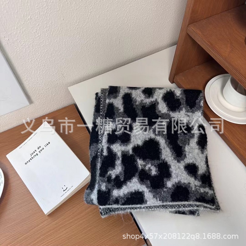 2024 한국 패션 레오파드 자카드 니트 스카프 여성의 겨울 따뜻한 두꺼운 양모 니트 스카프 목도리스토어 가기