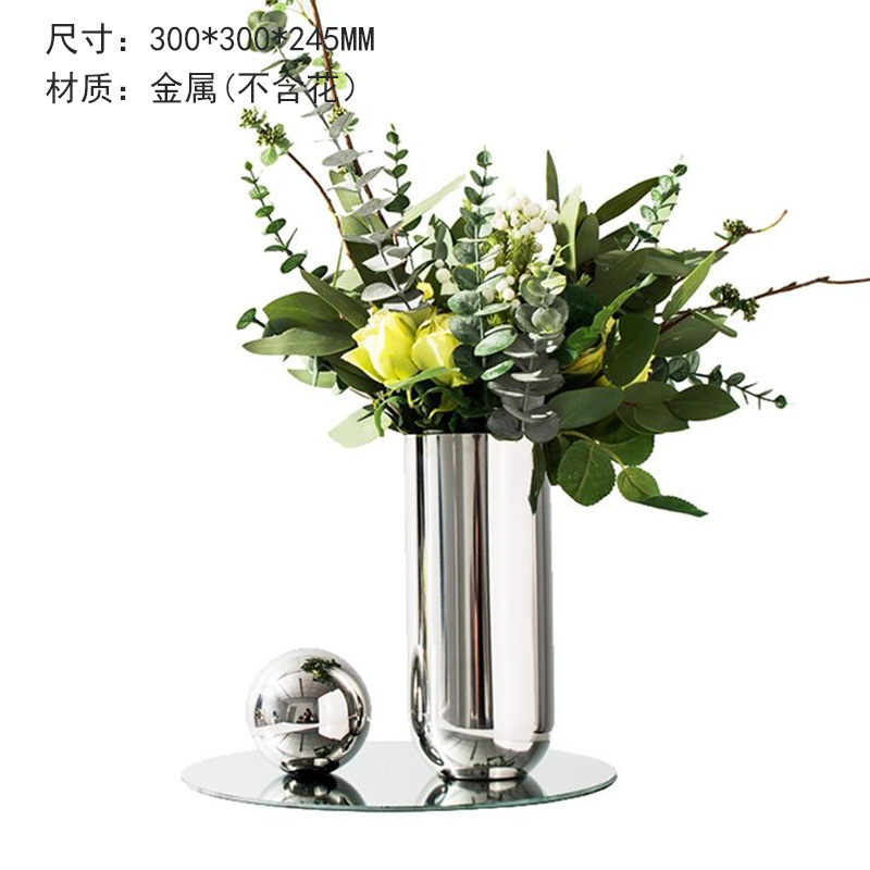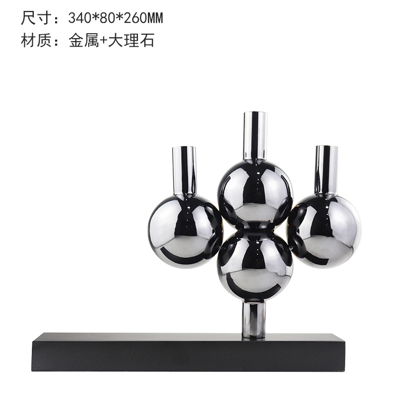 Meibao 현대 기하학 스테인레스 스틸 4 볼 실버 대리석 꽃 촛대 모델 하우스 판매 사무실 부드러운 장식스토어 가기