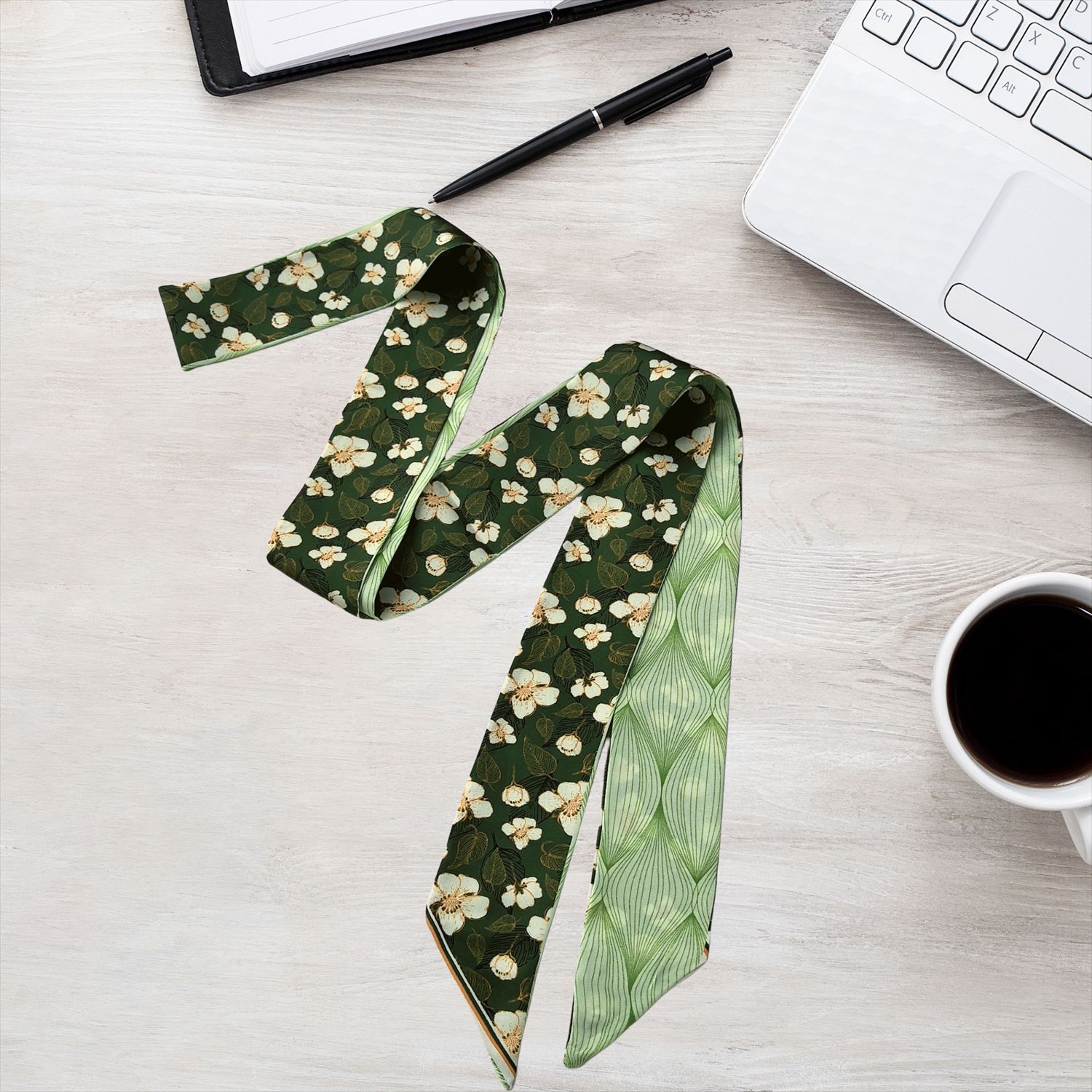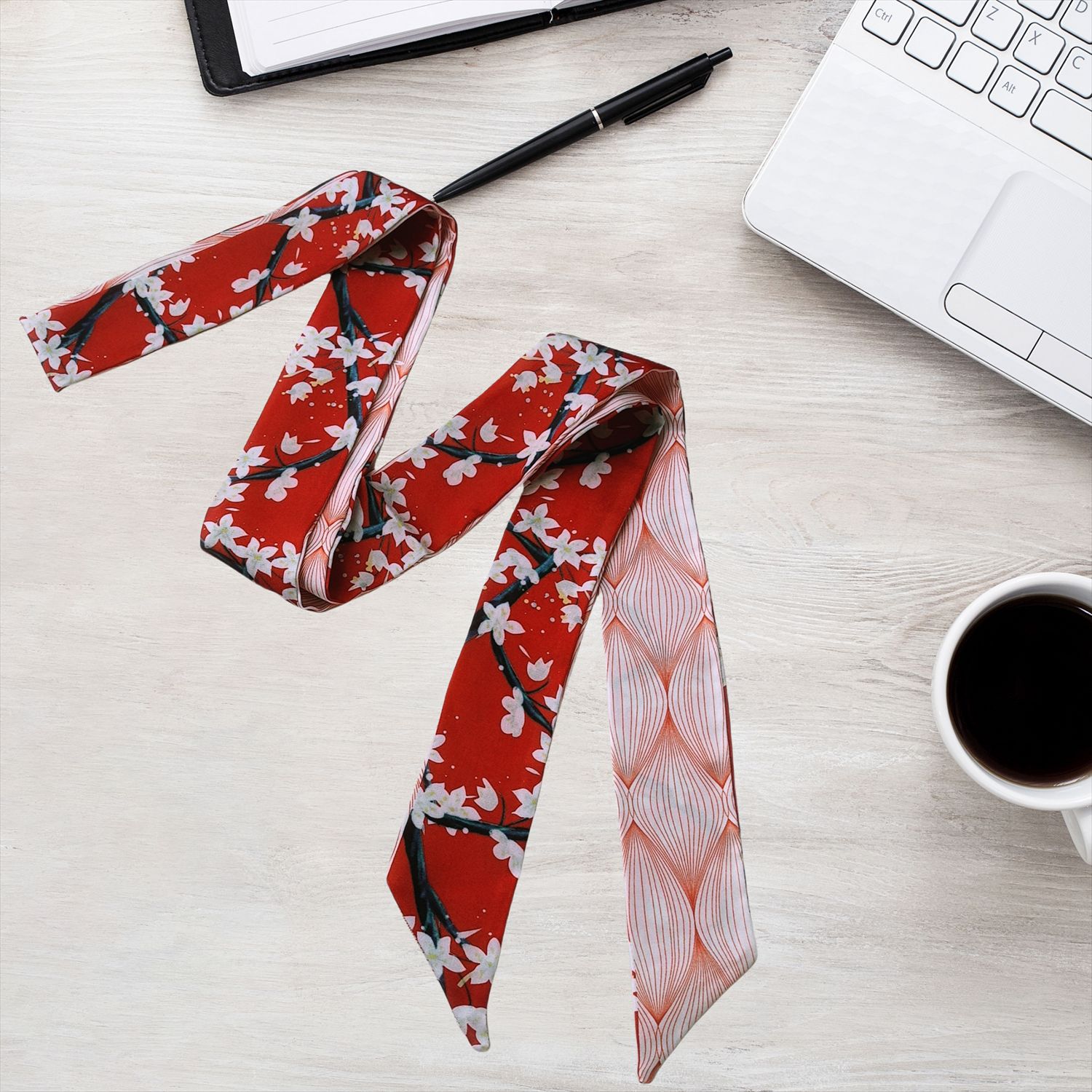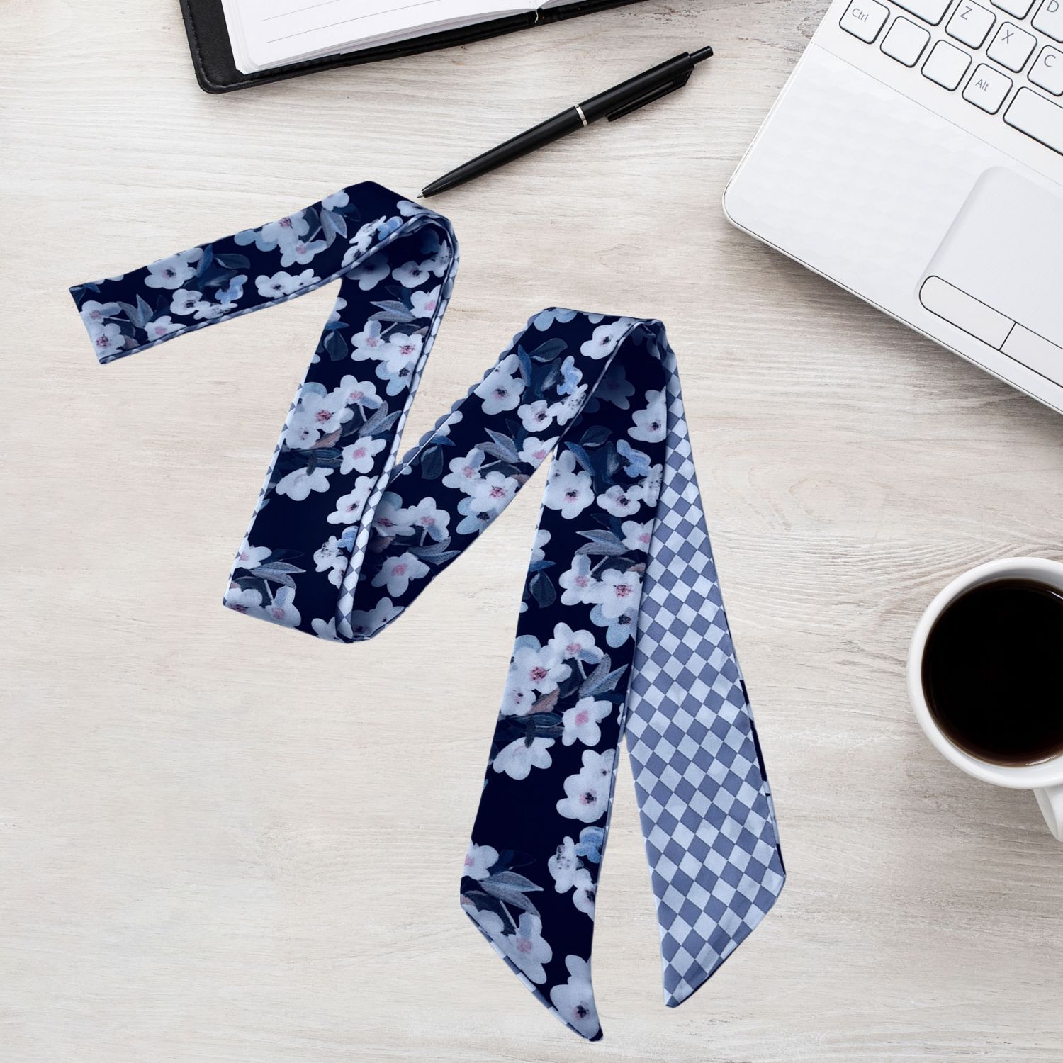 2024 새로운 한국 스타일 얇은 좁은 긴 스카프 꽃 인쇄 스카프 더블 레이어 발목 스카프 헤어 액세서리 넥타이 가방 국경 여성