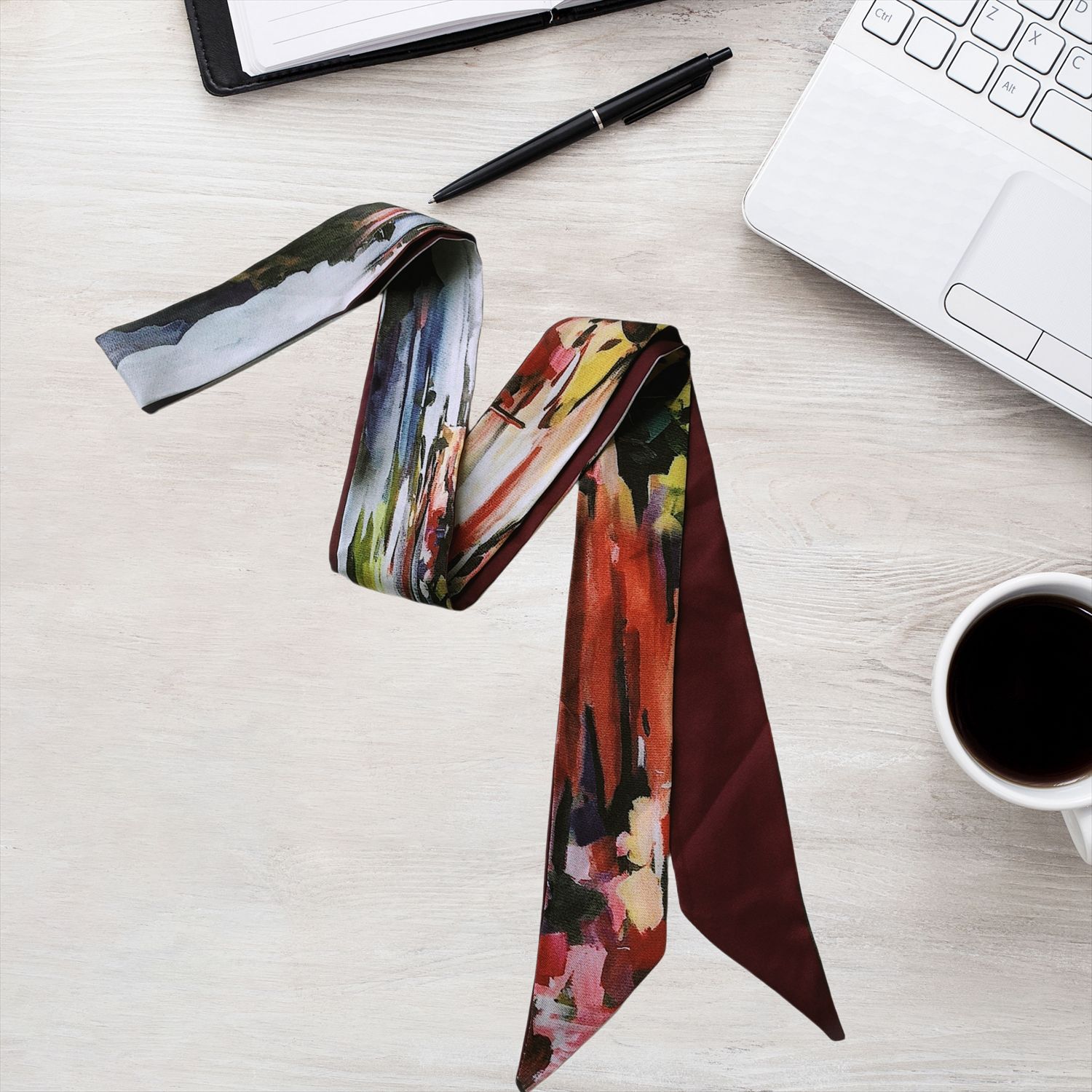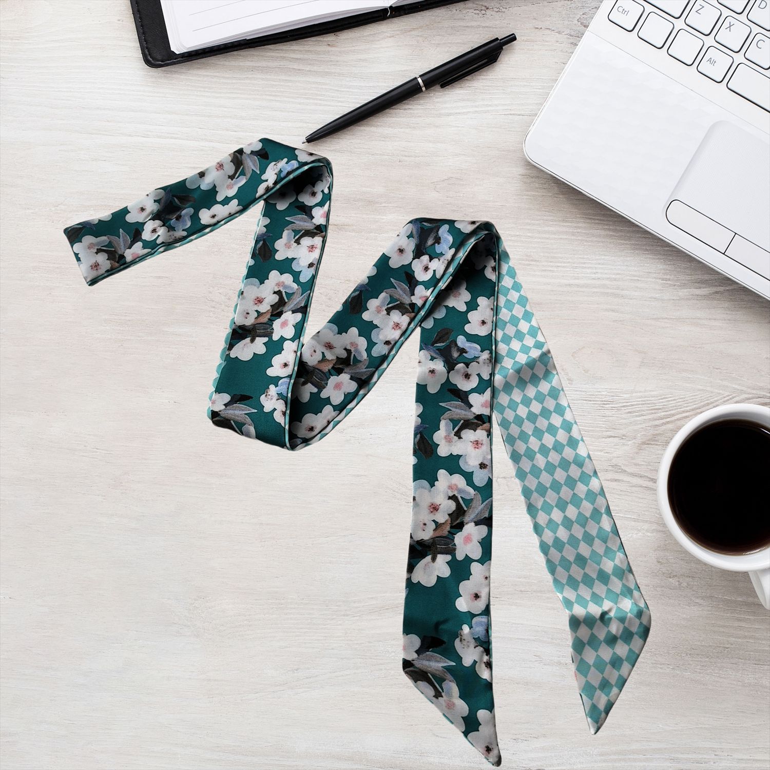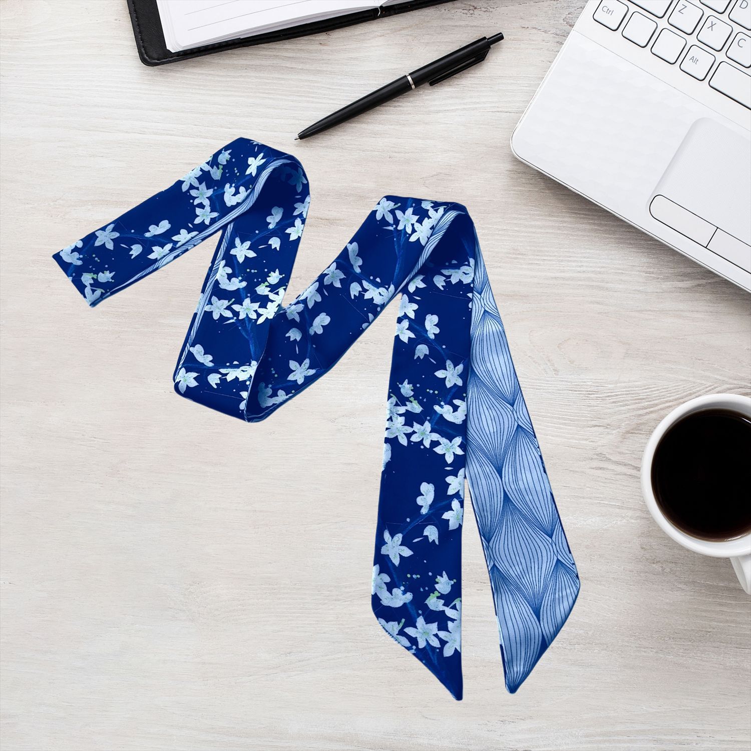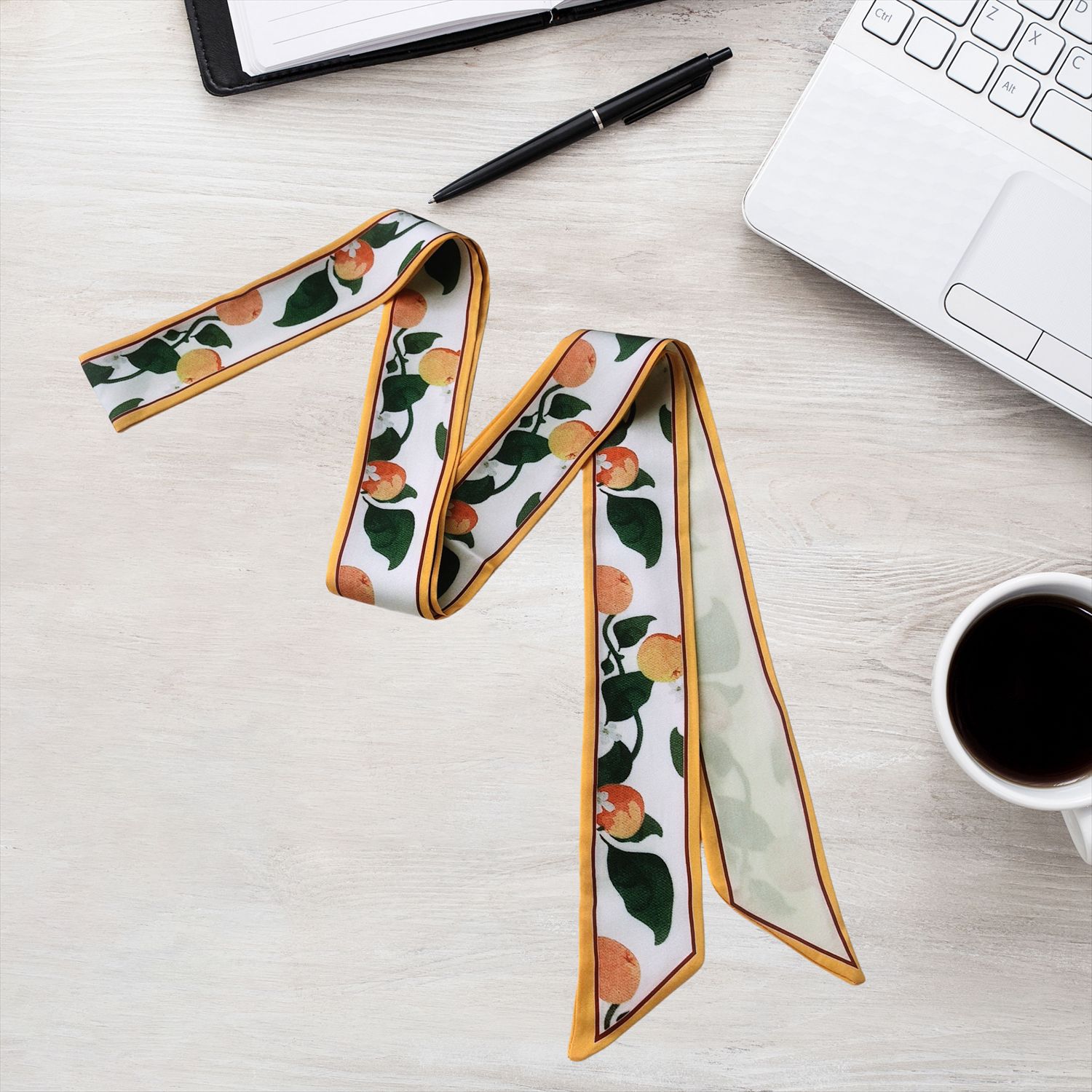 2024 새로운 한국 스타일 얇은 좁은 긴 스카프 꽃 인쇄 스카프 더블 레이어 발목 스카프 헤어 액세서리 넥타이 가방 국경 여성
