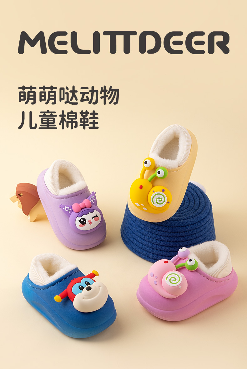 Fawn Milley 어린이 면화 도매 겨울 아기와 벨벳 따뜻한 만화 면화 슬리퍼 소년과 소녀 귀여운 양모 슬리퍼