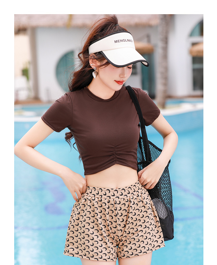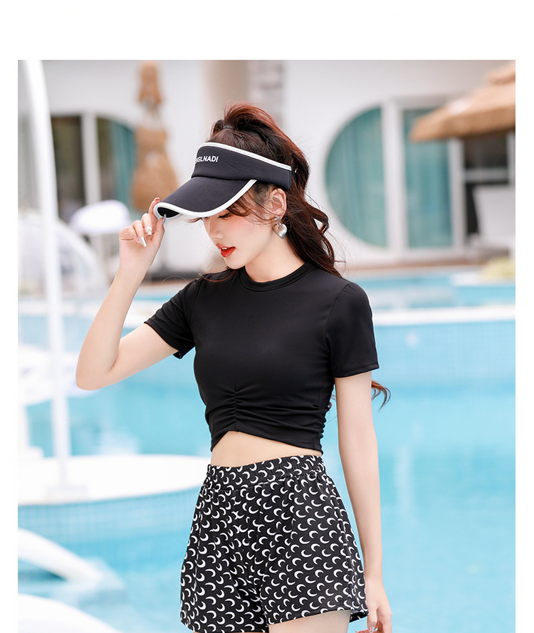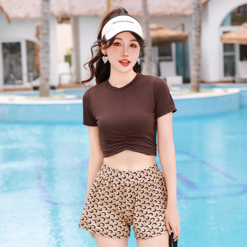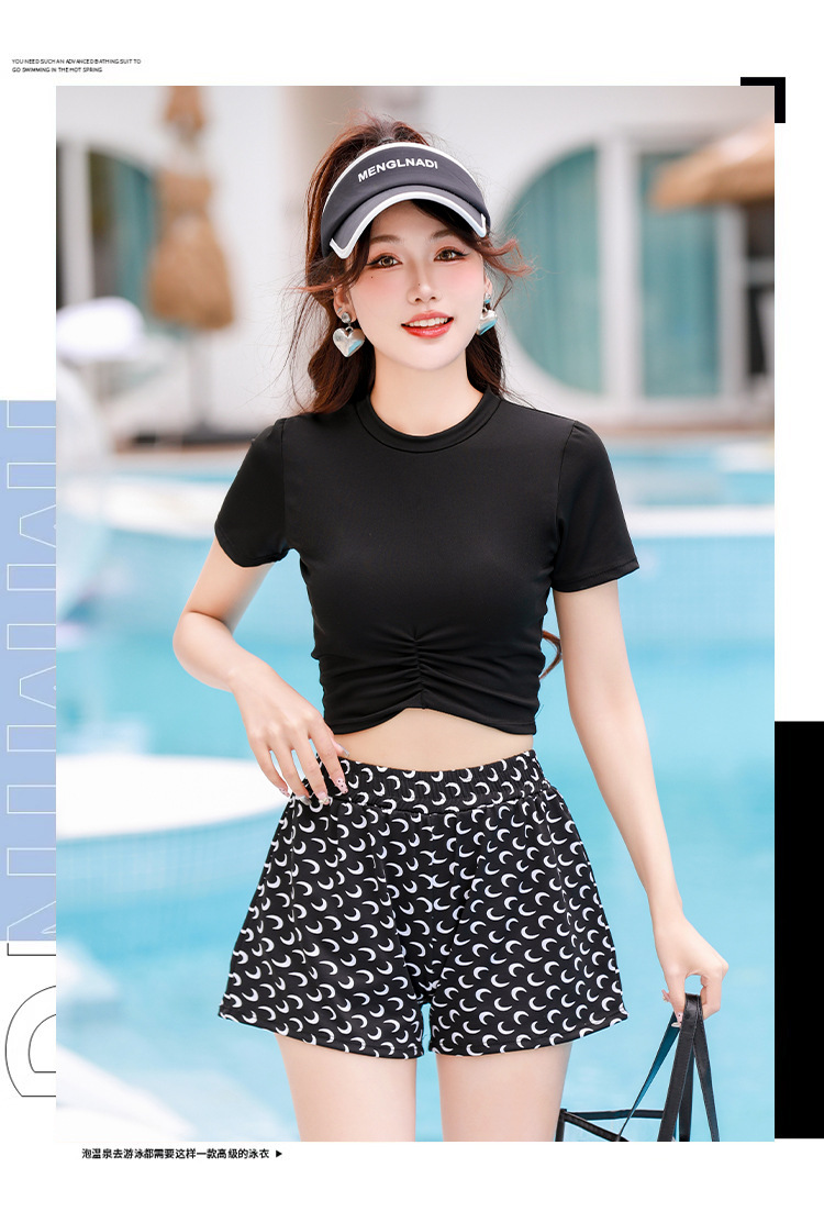 스포츠 수영복 여성 분할 세트 학생 보수적 인 새로운 스타일 신선한 온천 짧은 소매 반바지 수영복