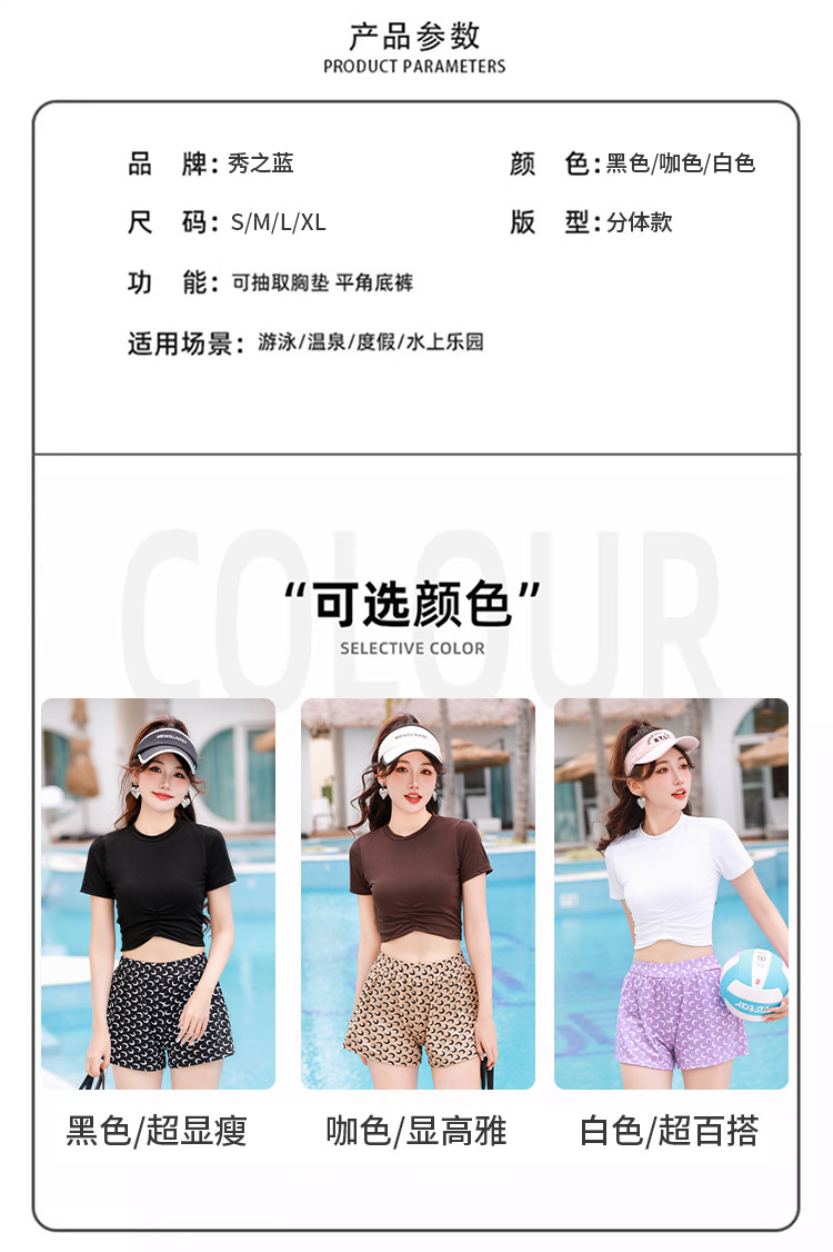 스포츠 수영복 여성 분할 세트 학생 보수적 인 새로운 스타일 신선한 온천 짧은 소매 반바지 수영복스토어 가기