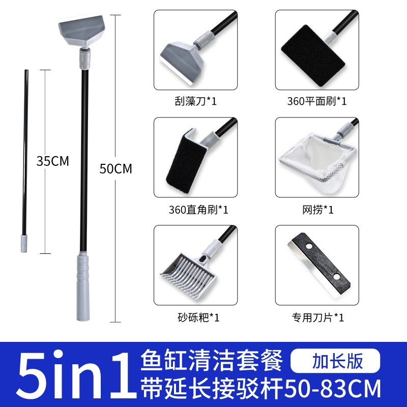 물고기 탱크 브러시 청소 물 잔디 낚시 5 대 1 긴 손잡이 도구 칼 도구 세트 조개 그물 청소 물고기 탱크 클립스토어 가기