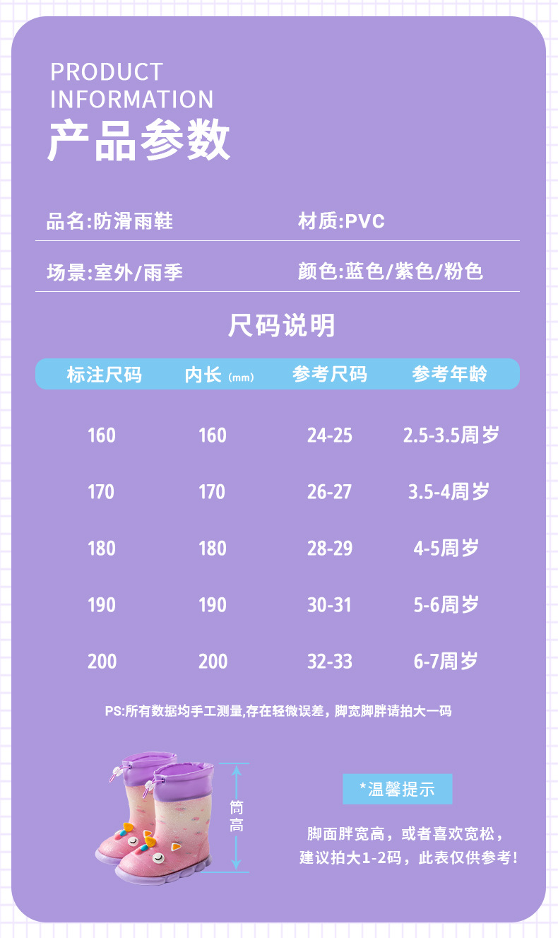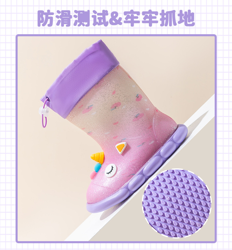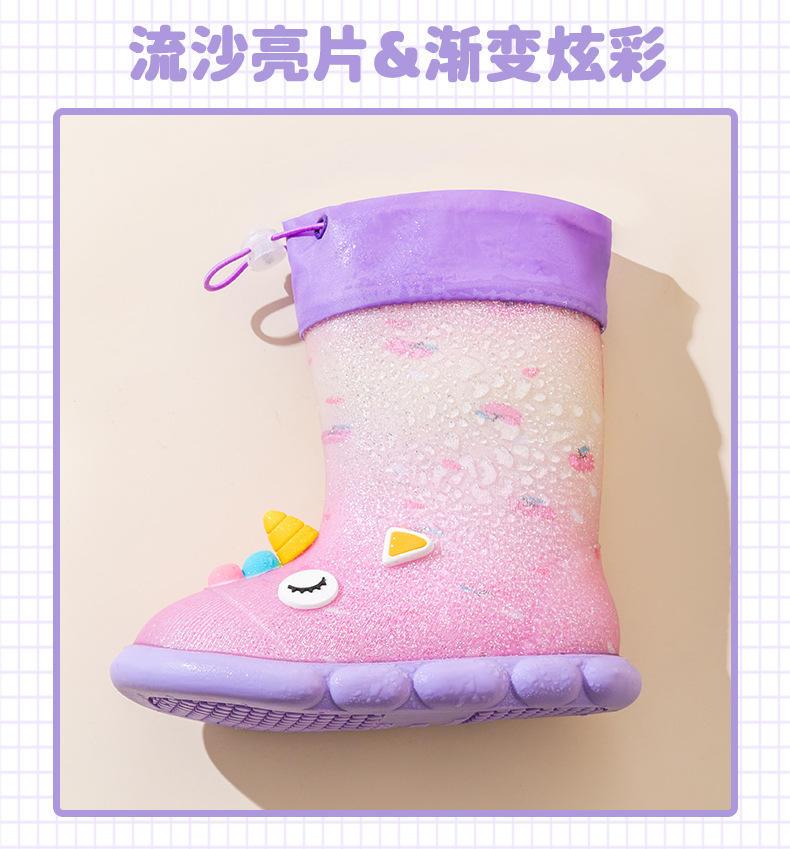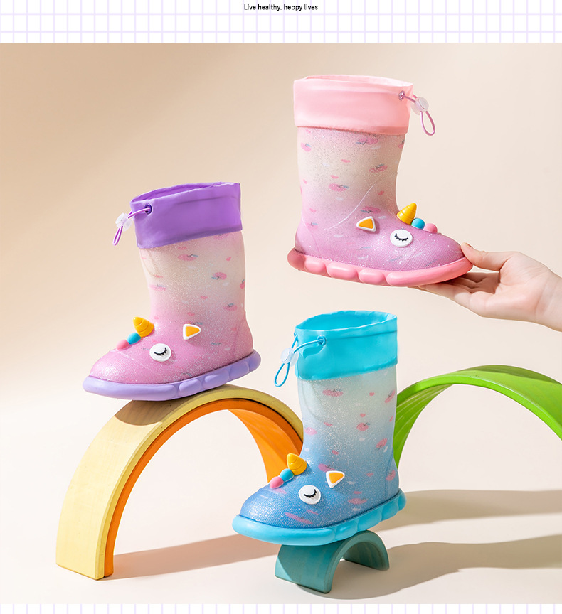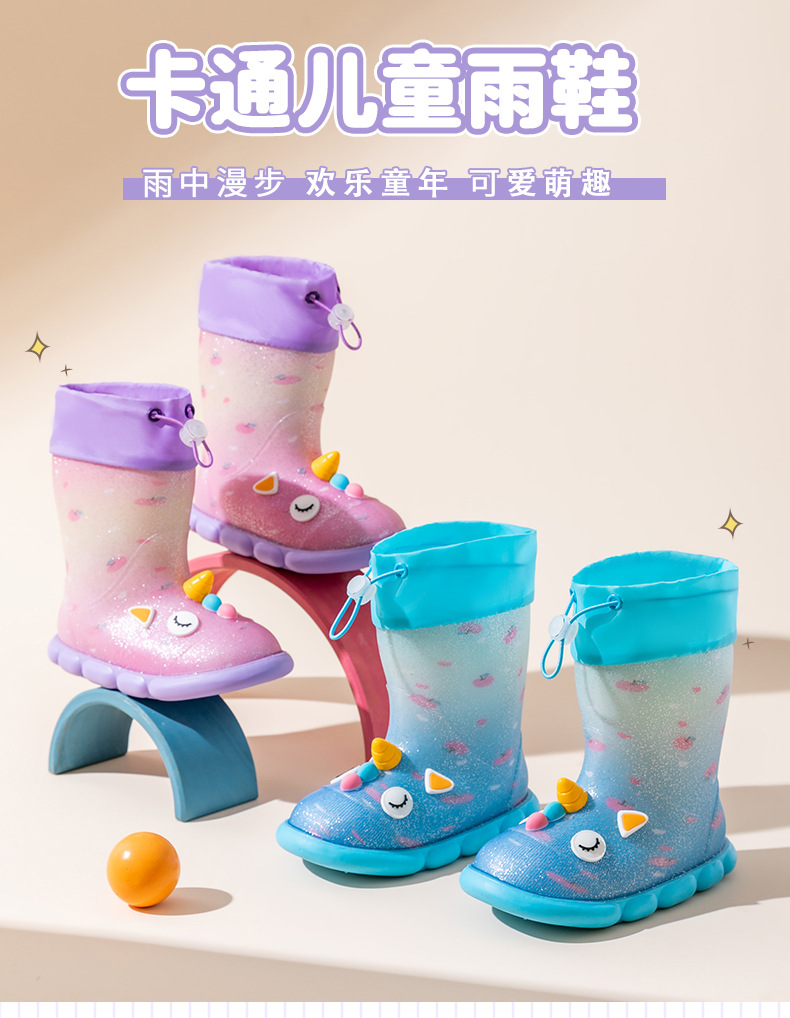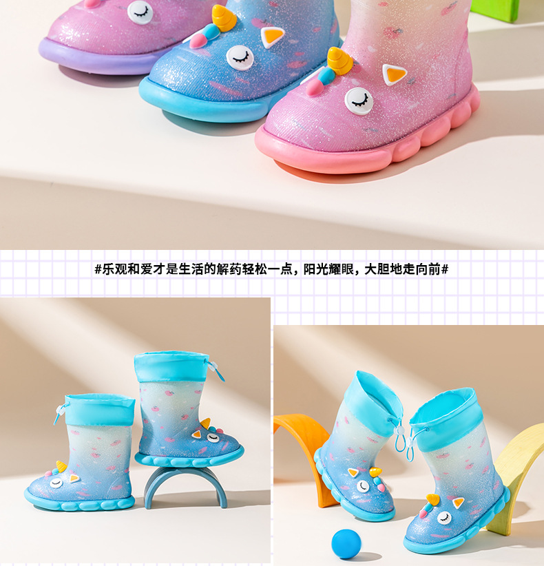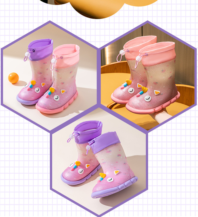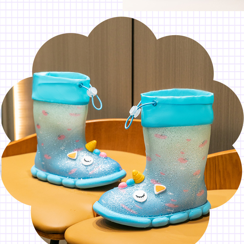 새로운 만화 유니콘 어린이 비 신발 면 어린이 만화 미끄럼 방지 따뜻한 야외 물 신발 아기 어린이 비 신발