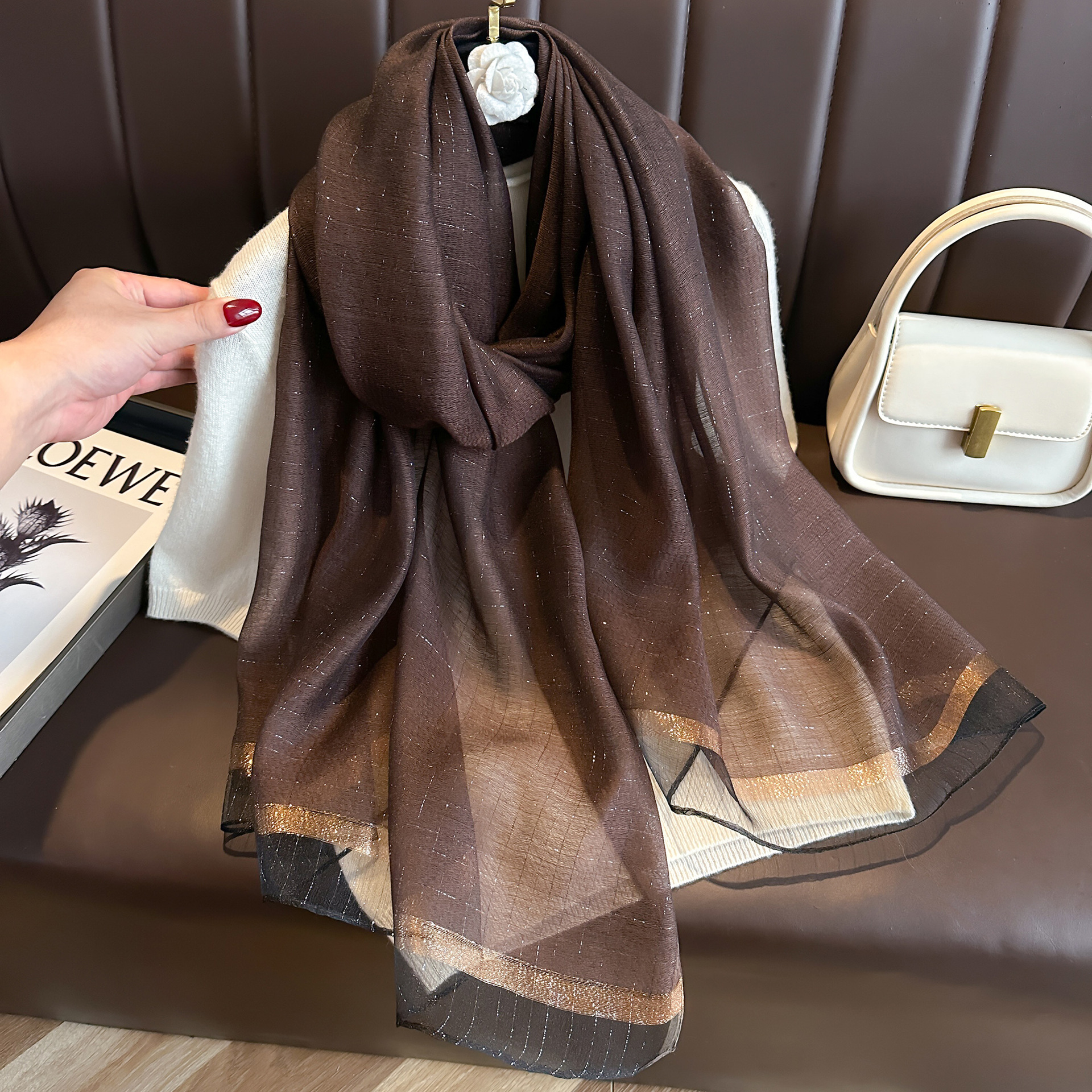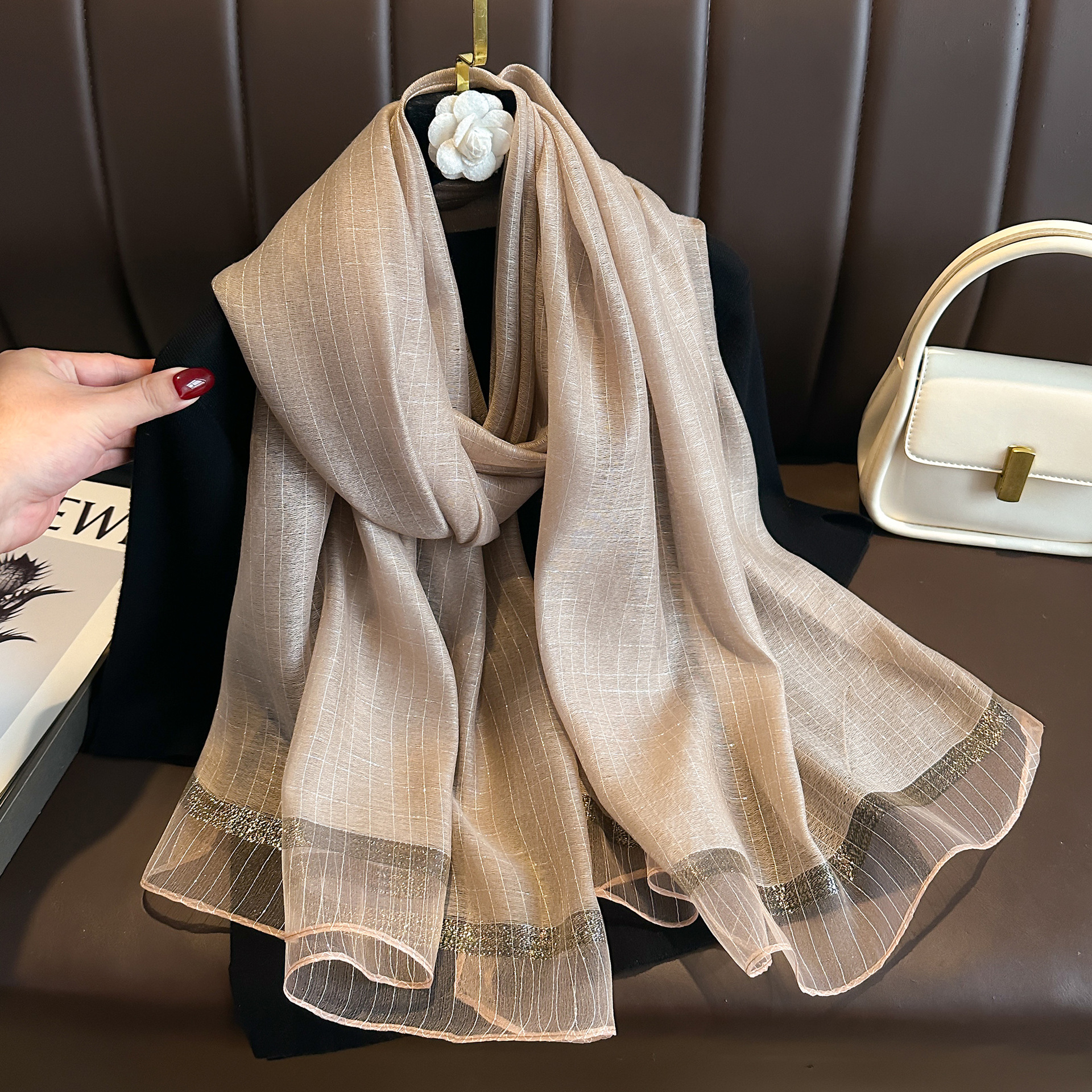 새로운 단색 골드 실크 스카프 여성 패션 실크 스카프 긴 봄과 가을 어머니 올 매치 스카프 도매
