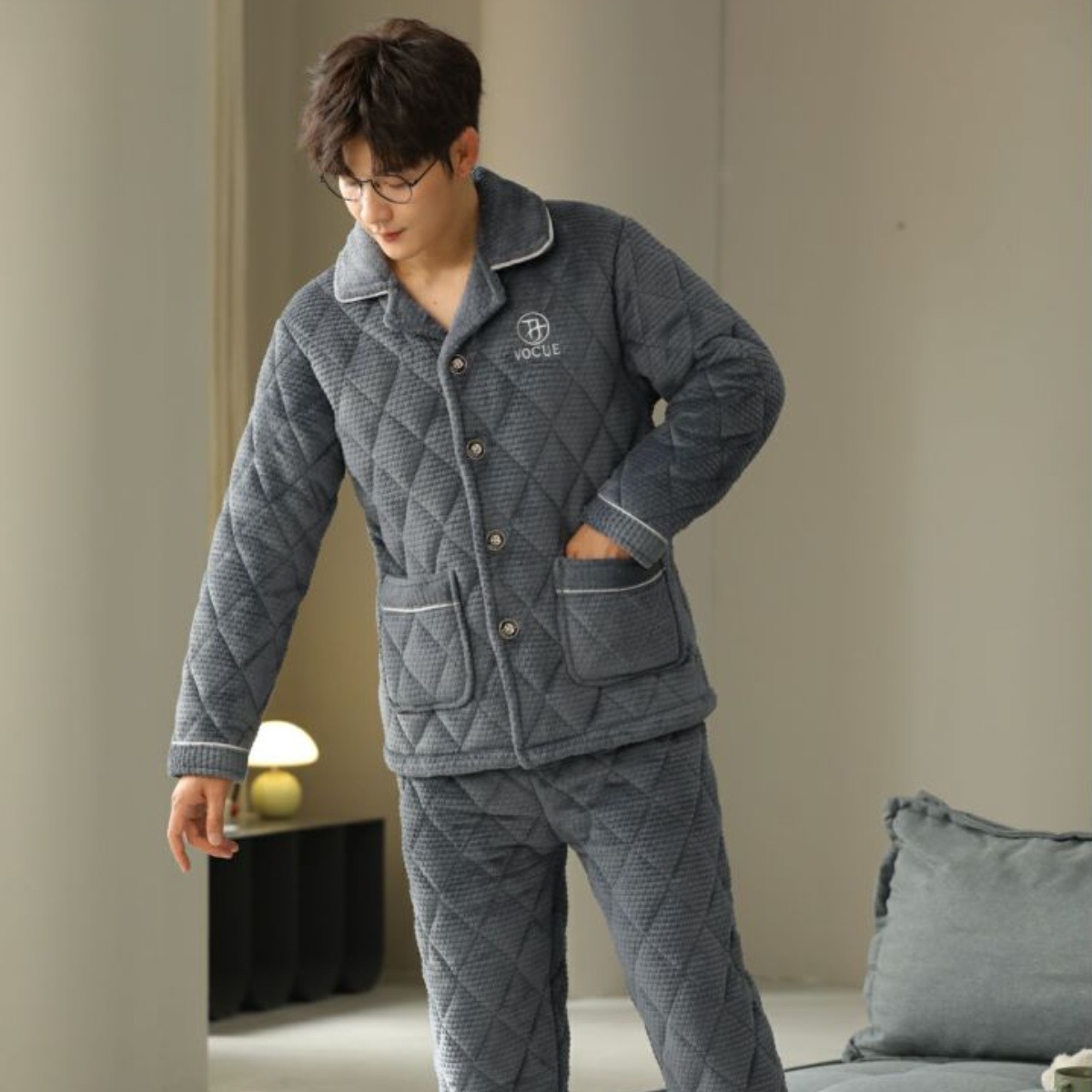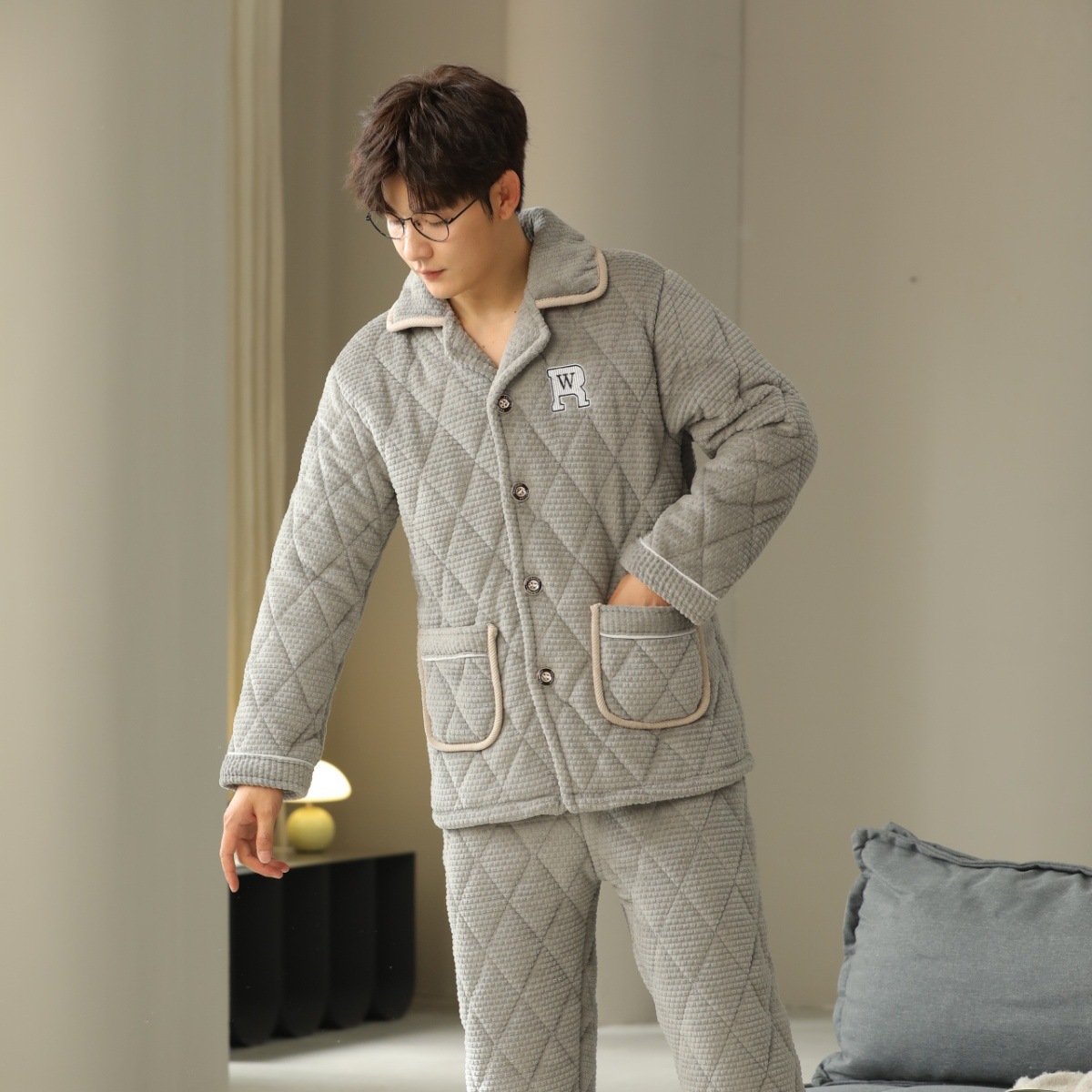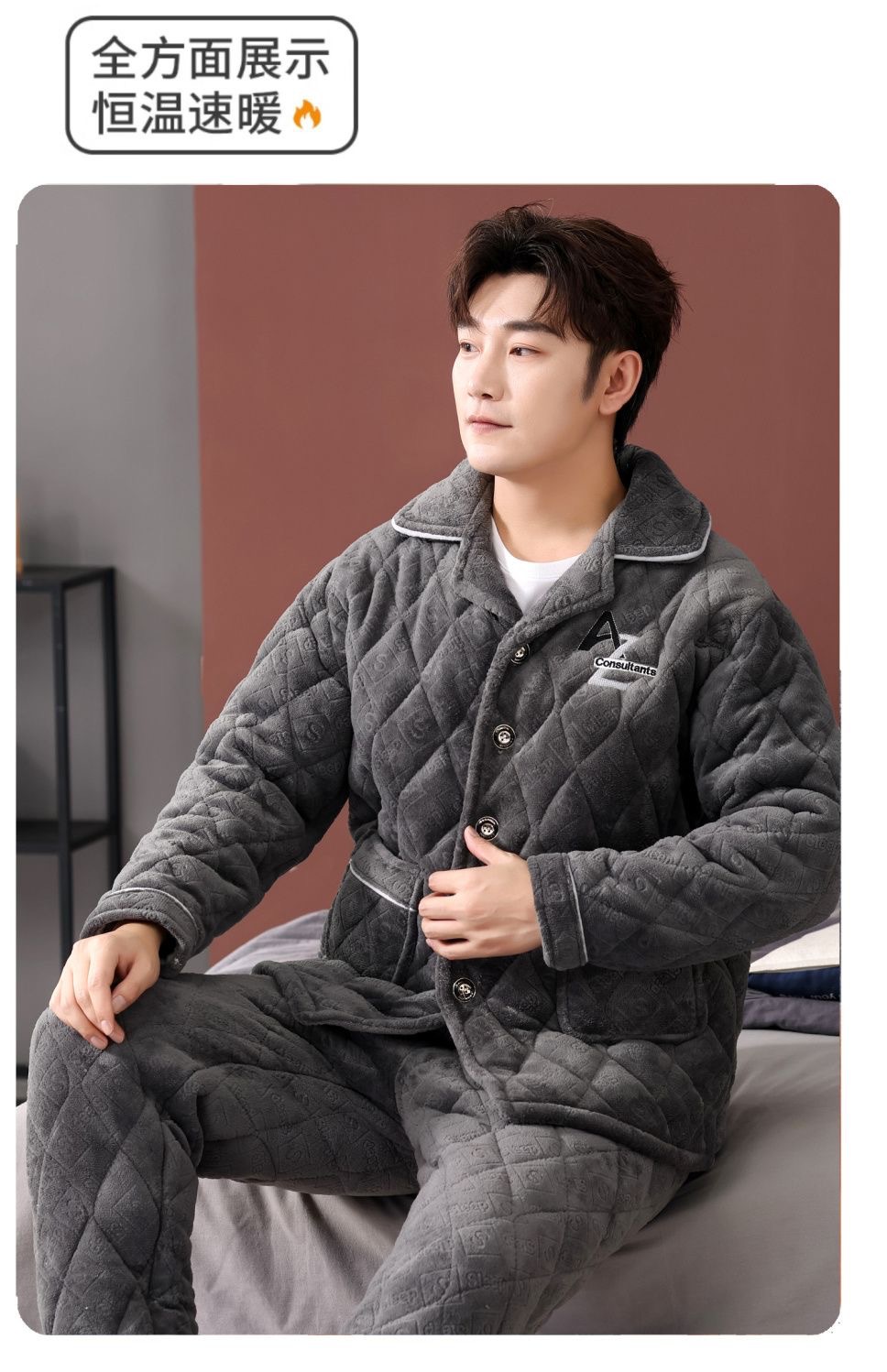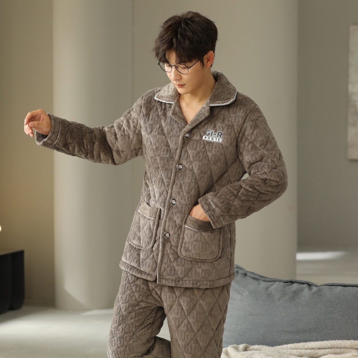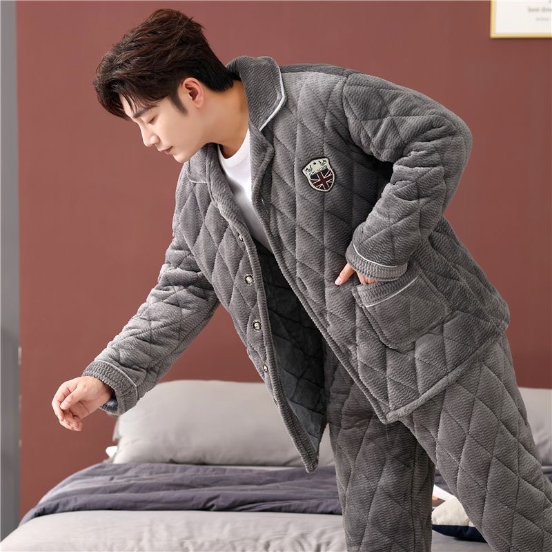 잠옷 남자 겨울 3 층 두꺼운 산호 양털 퀼트 따뜻한 기모 우유 양털 홈 옷 세트 가을과 겨울