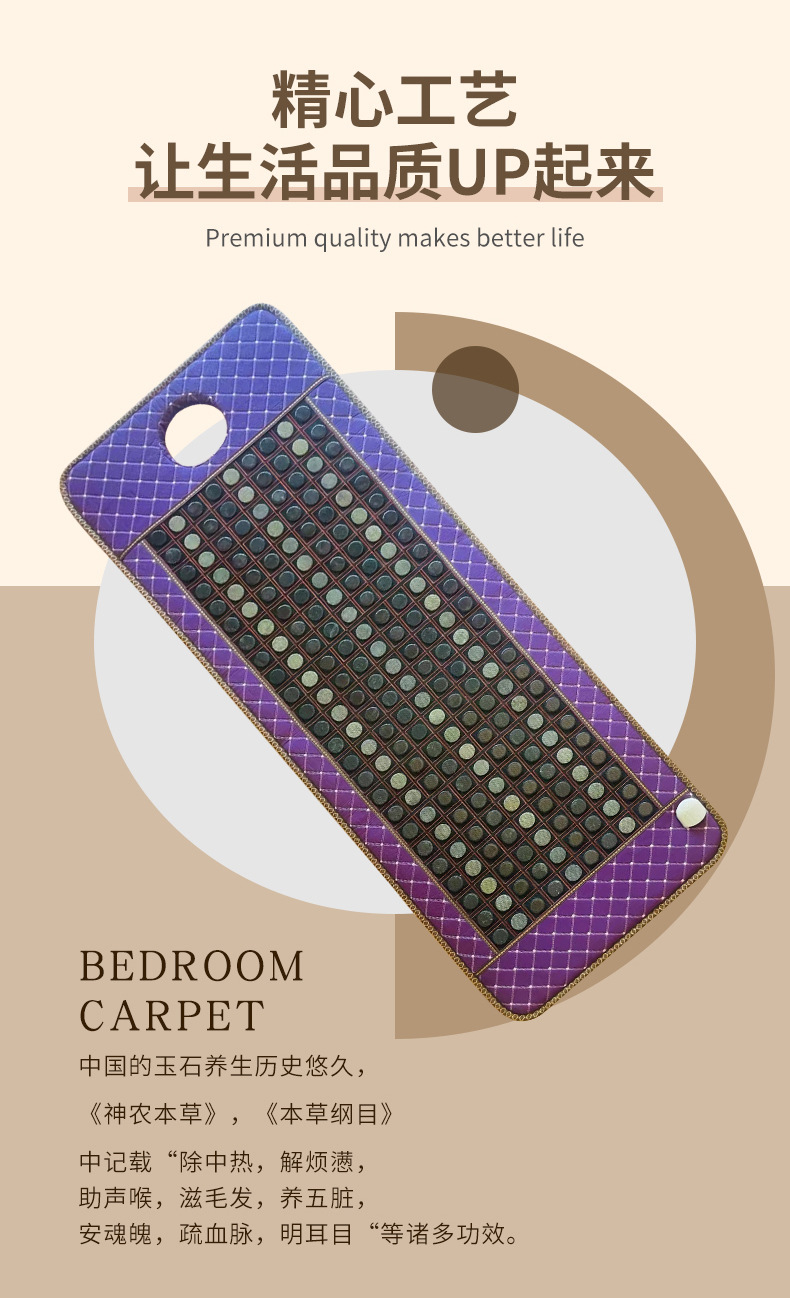 这是一款锗玉加热美容床垫,上面有锗石和岫玉,