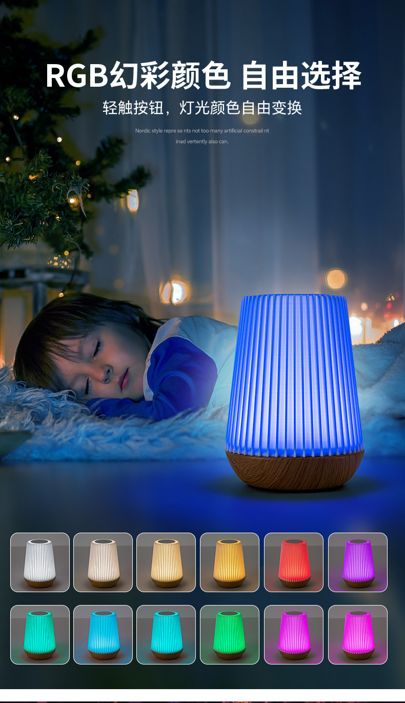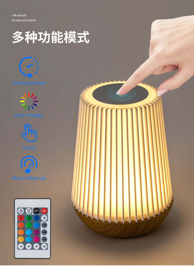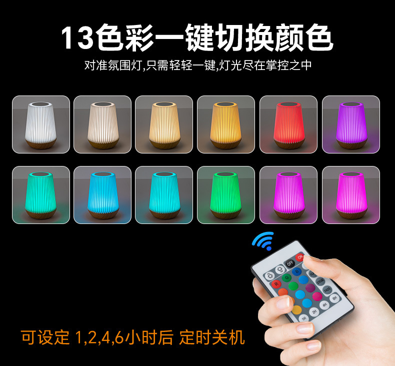 새로운 원격 제어 터치 나무 테이블 램프 침실 침대 옆 램프 야간 조명 패트 다채로운 분위기 램프 아마존 폭발