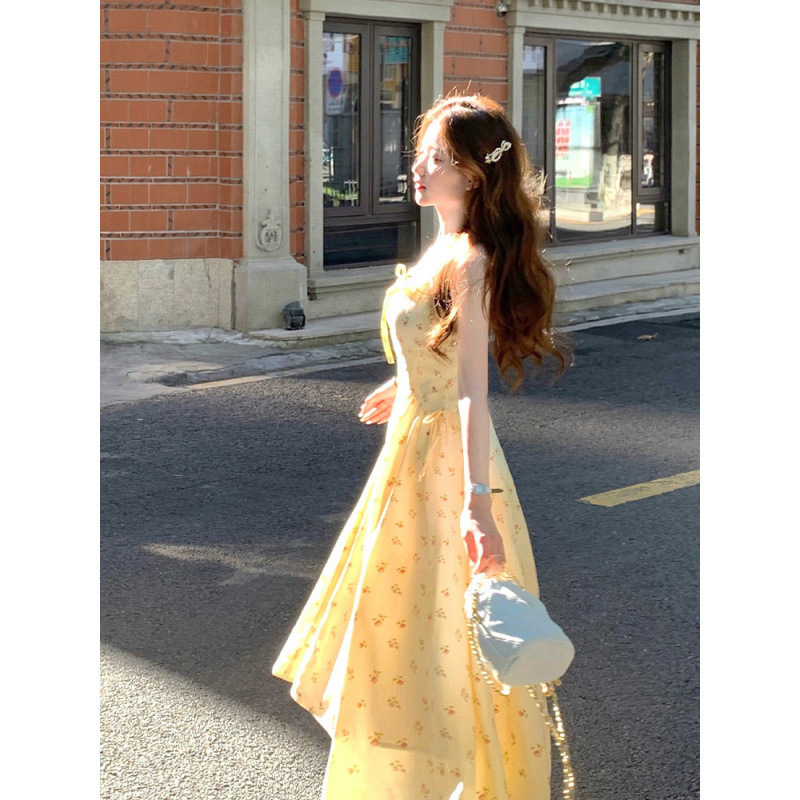 시드니 버블 워터/달콤한 기질 매달려 달콤한 딸 슬림 플로럴 스트랩 원피스 부드러운 카디건 2스토어 가기
