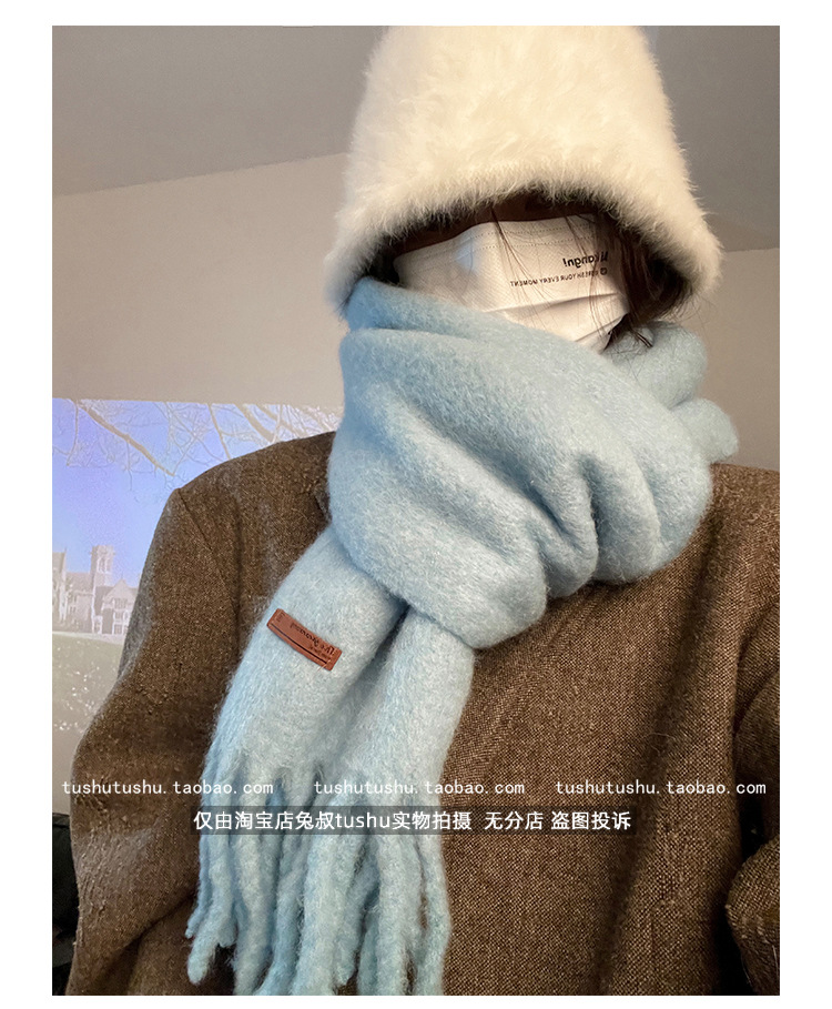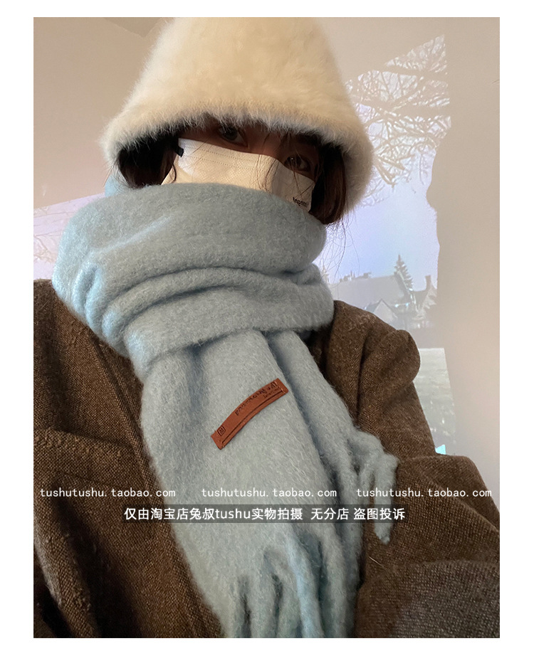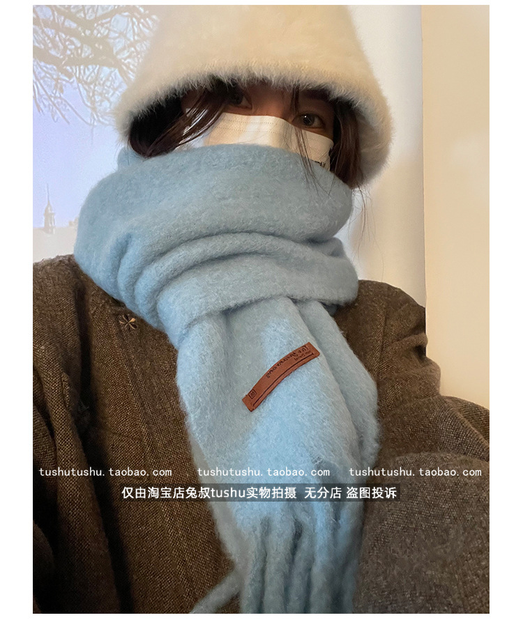 슈퍼 아름다운! 블루 화이트 솔리드 컬러 울 스카프 여성의 겨울 따뜻한 고급 두꺼운 스카프 긴 목도리스토어 가기