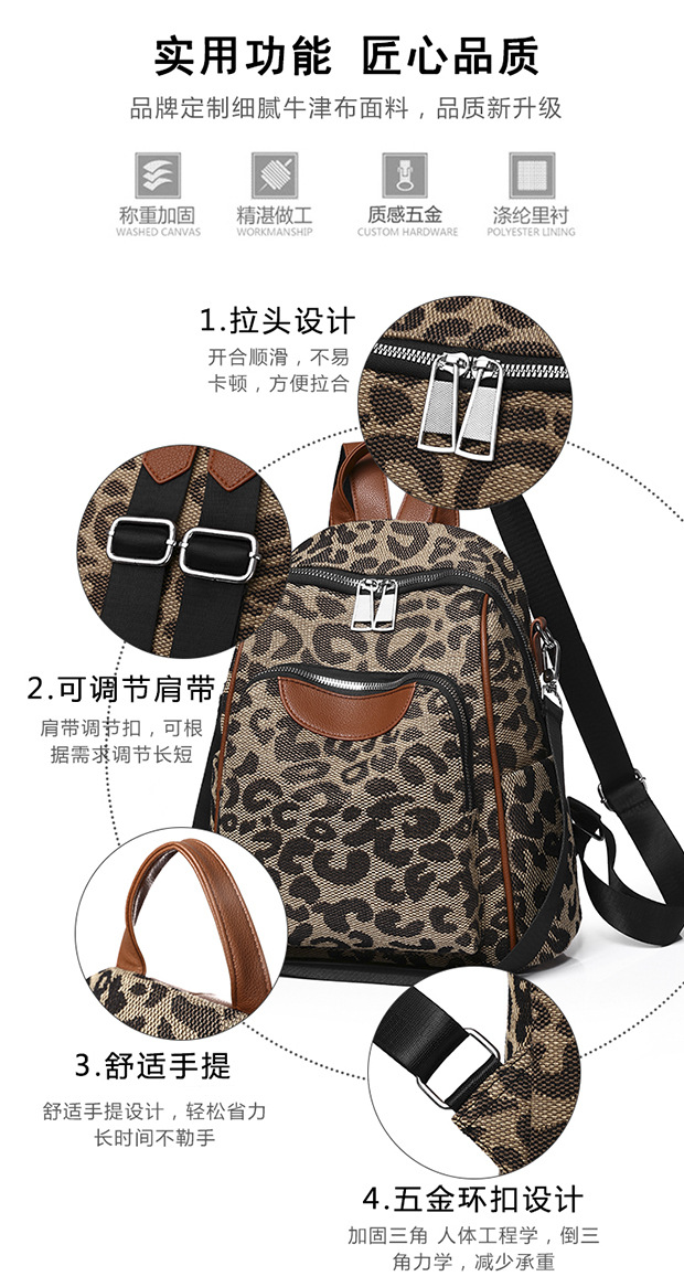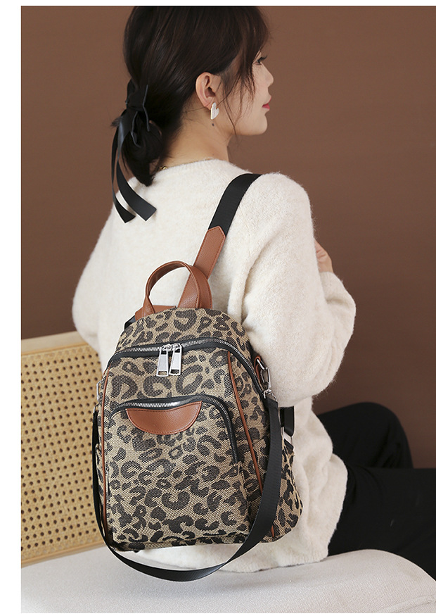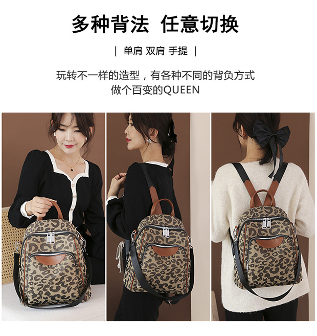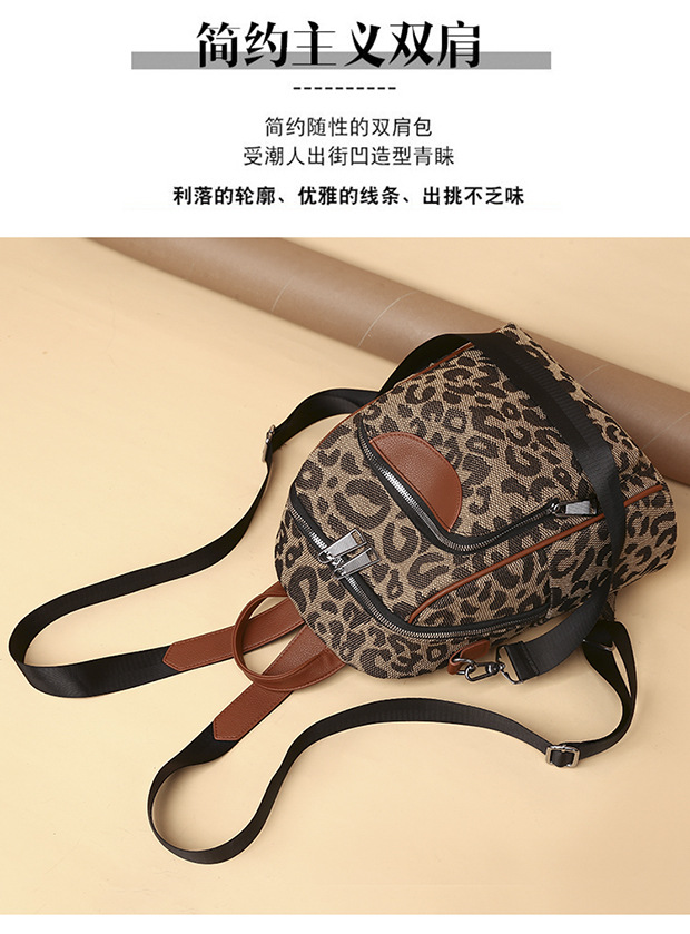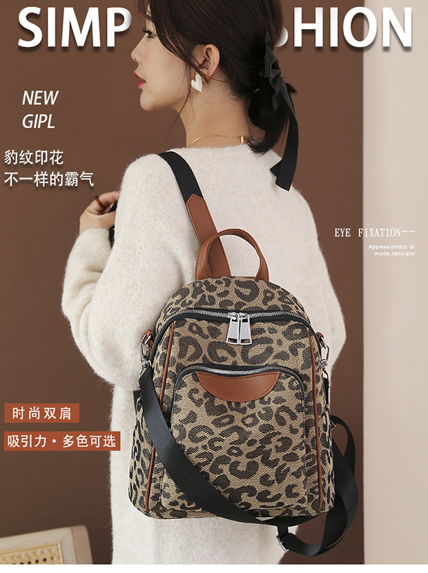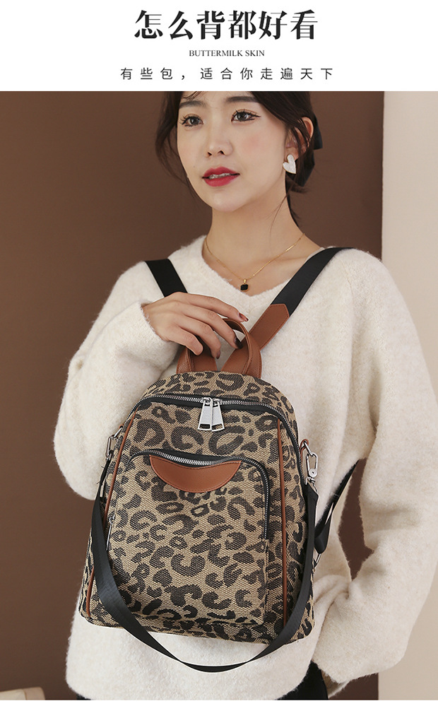 패션 레오파드 숄더 백 여성 가방 2024 새로운 가을과 겨울 옥스포드 천 백팩 올 매치 대용량 여행 배낭스토어 가기