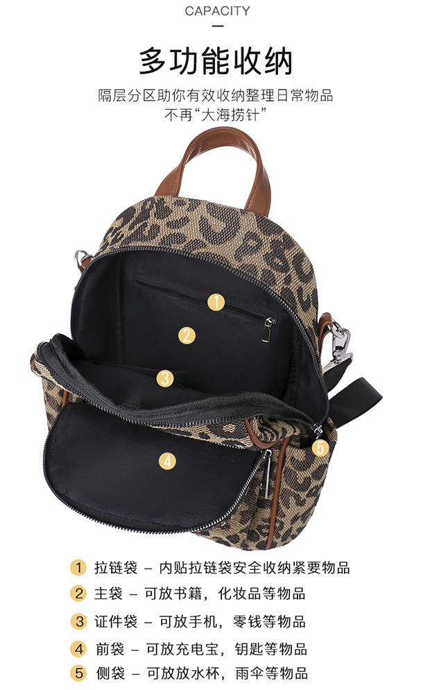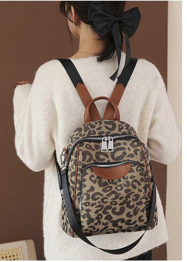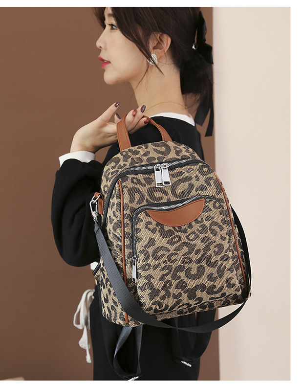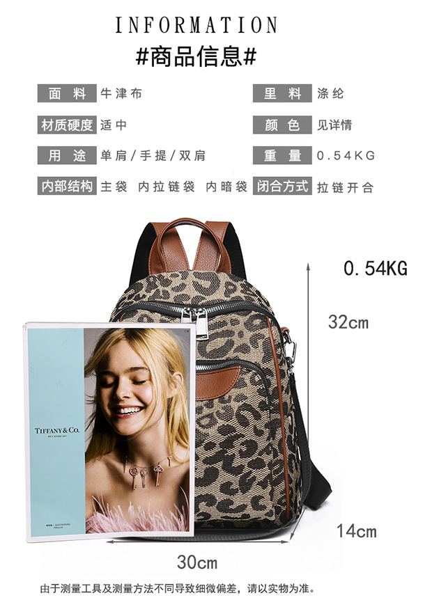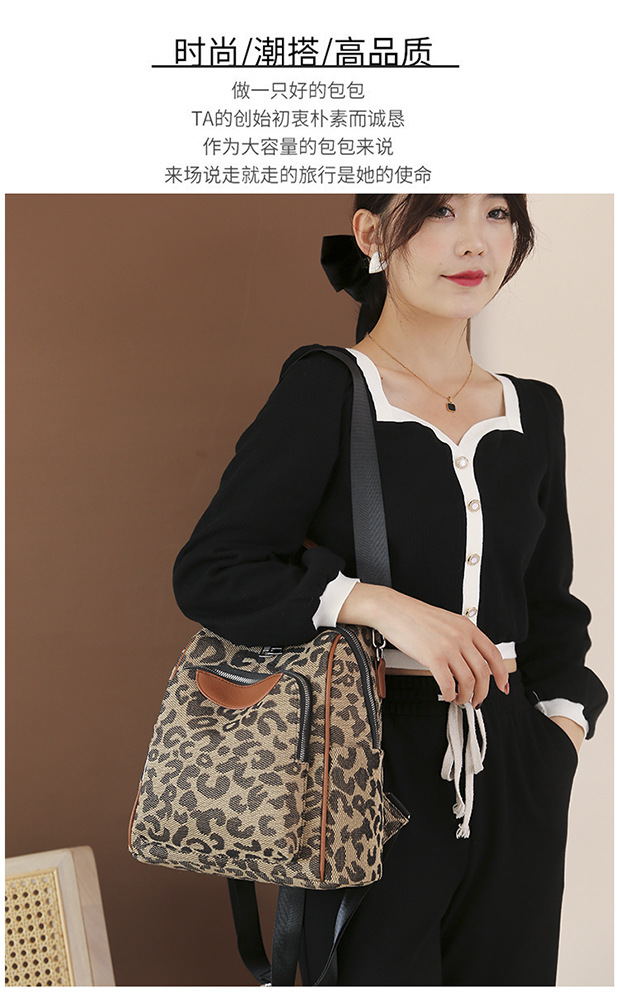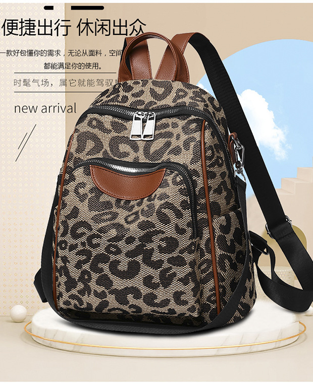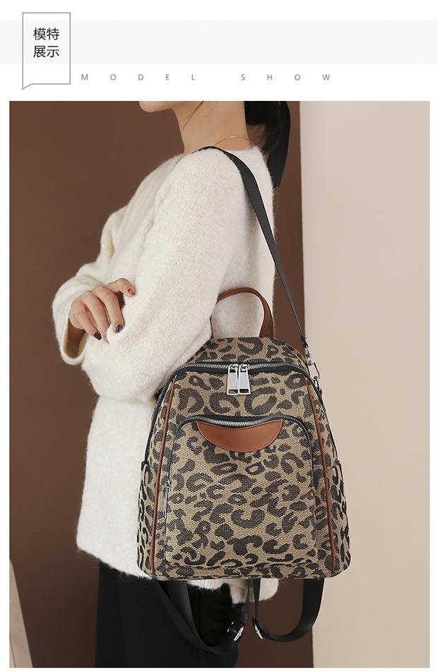 패션 레오파드 숄더 백 여성 가방 2024 새로운 가을과 겨울 옥스포드 천 백팩 올 매치 대용량 여행 배낭스토어 가기