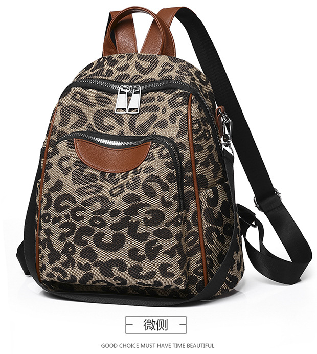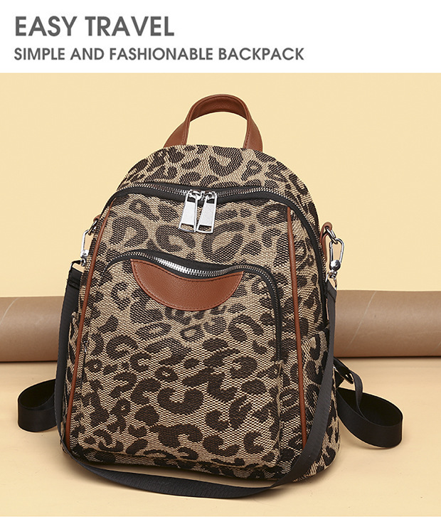 패션 레오파드 숄더 백 여성 가방 2024 새로운 가을과 겨울 옥스포드 천 백팩 올 매치 대용량 여행 배낭