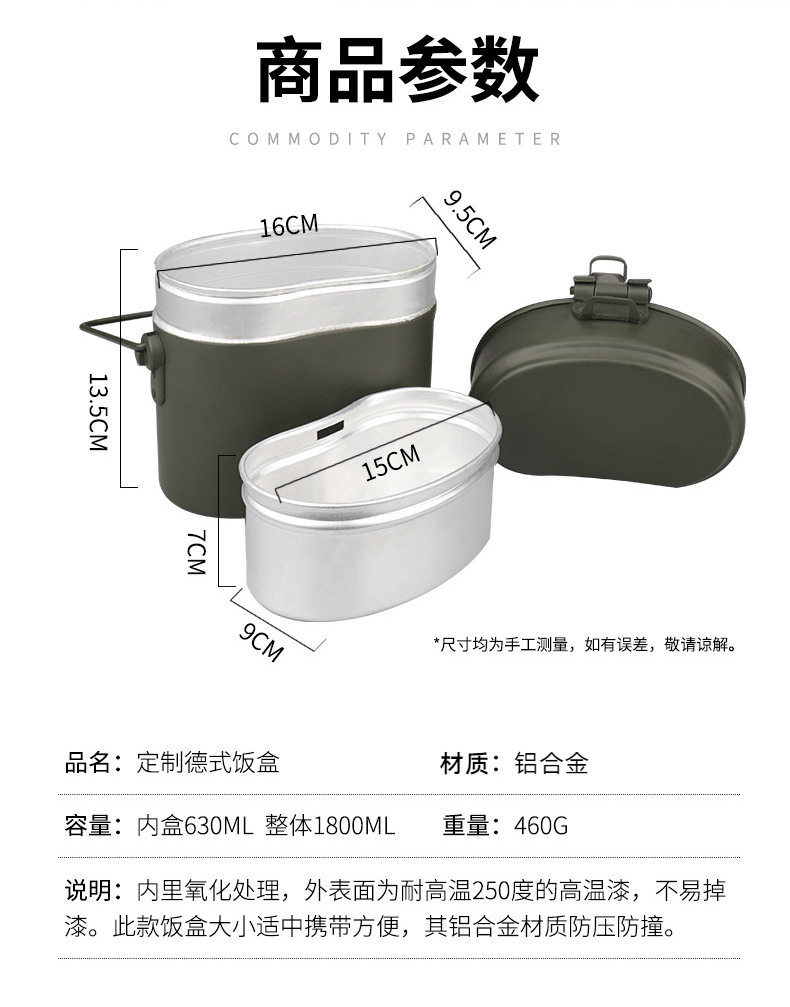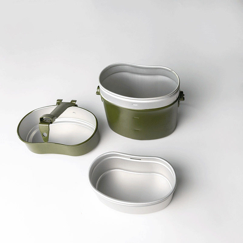 야외 독일 스타일 도시락 마칭 가열 도시락 오래된 3 피스 세트 야외 캠핑 다기능 알루미늄 고온 방지 도시락