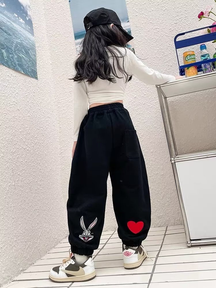 소녀 스웨트 팬츠 가을 2024 새로운 어린이 한국식 트렌디 쿨 하렌 바지 스포츠 바지 캐주얼 발목 묶은 바지