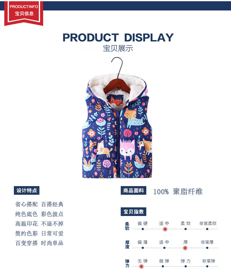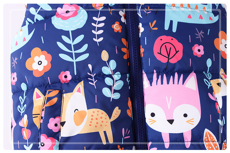 2024 가을과 겨울 새로운 어린이 후드면 패딩 조끼 국경 소년과 소녀 전체 인쇄 낙서 기모 조끼 지퍼 셔츠스토어 가기