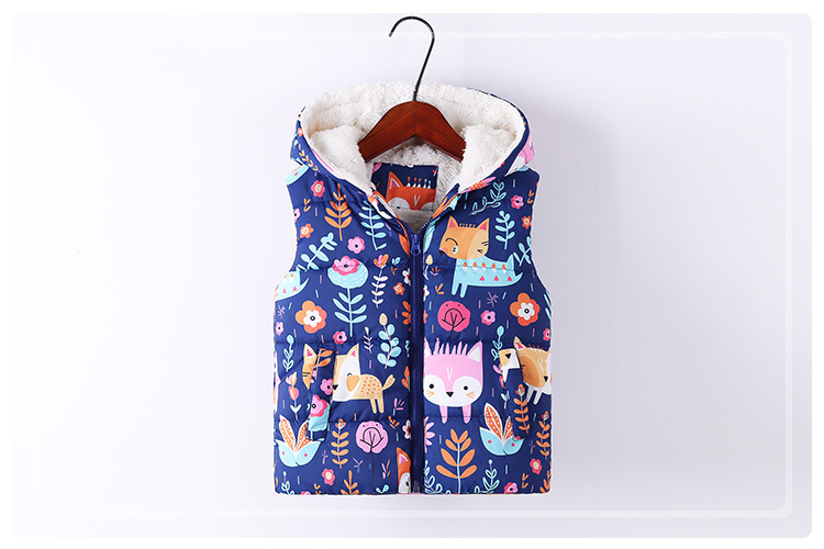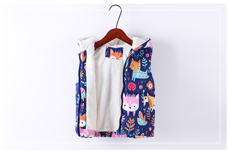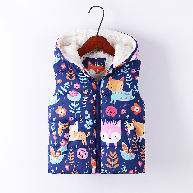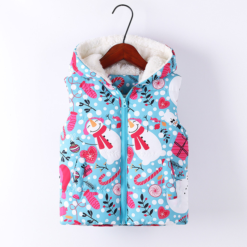 2024 가을과 겨울 새로운 어린이 후드면 패딩 조끼 국경 소년과 소녀 전체 인쇄 낙서 기모 조끼 지퍼 셔츠