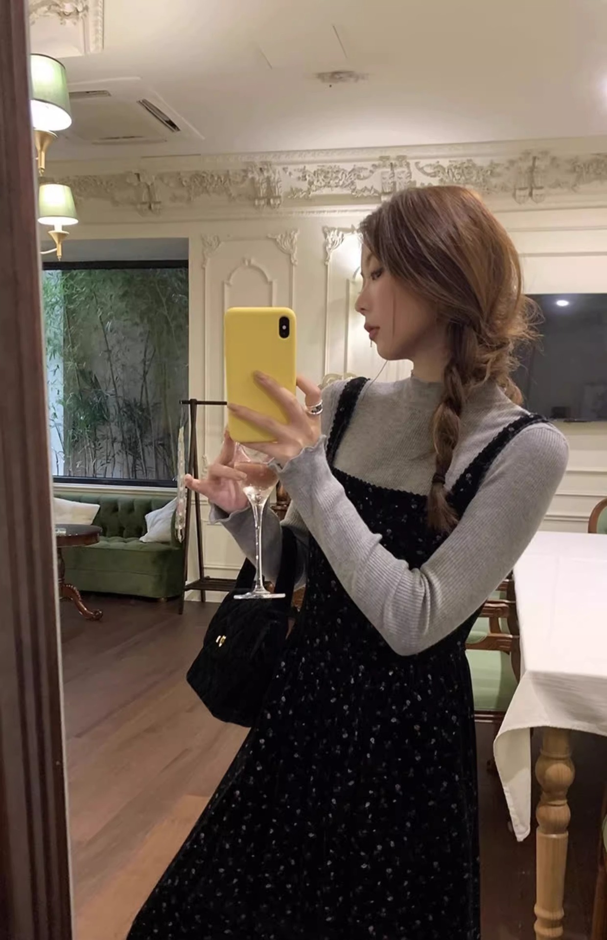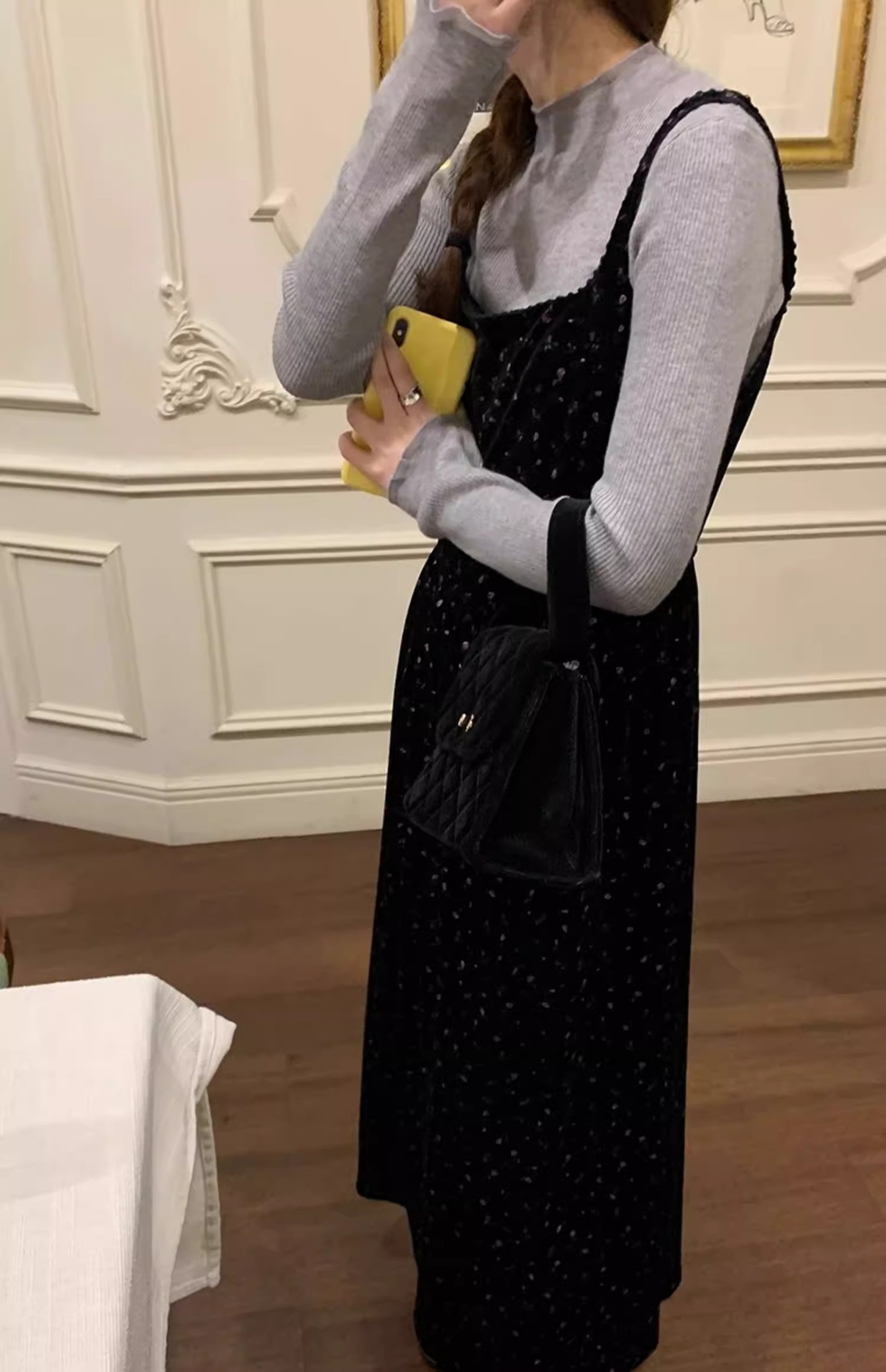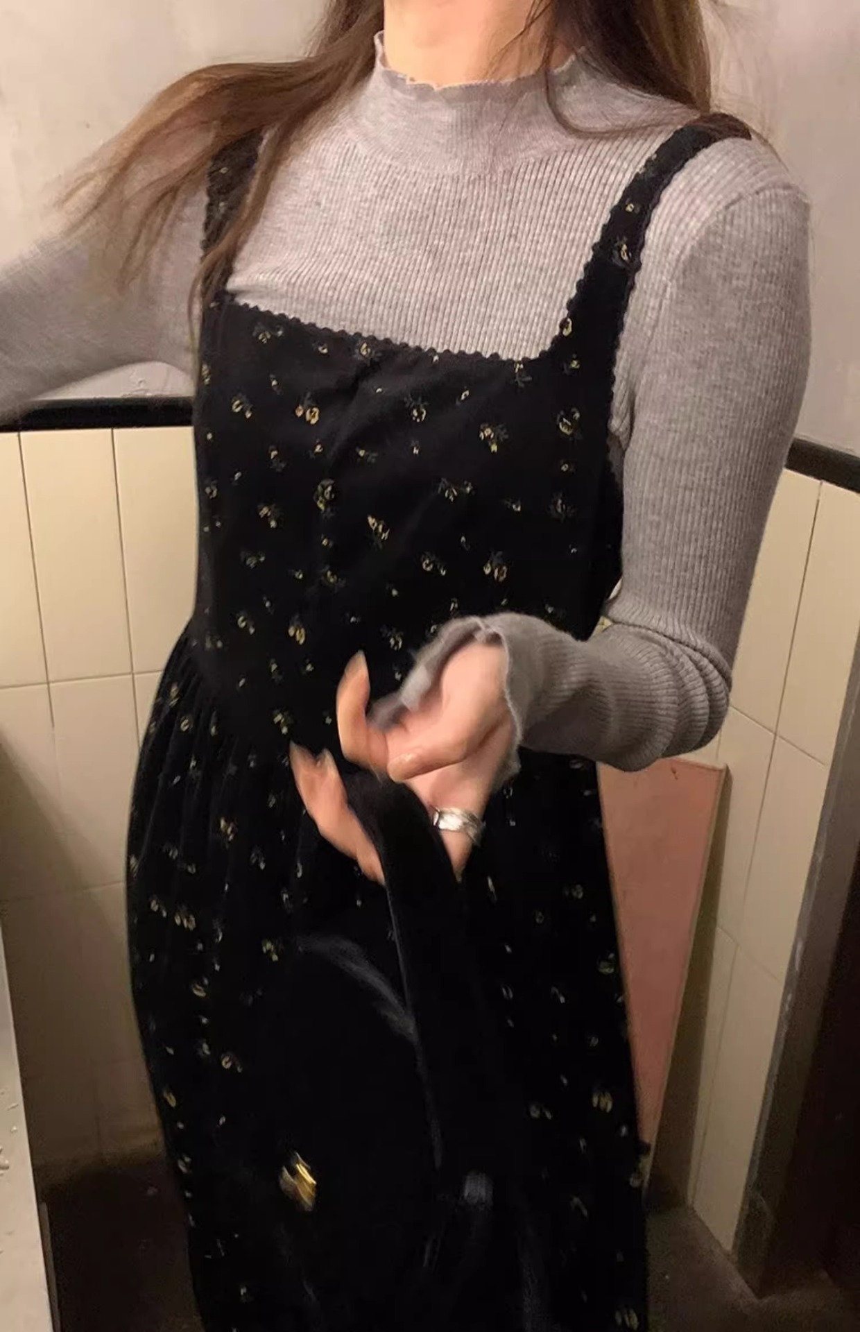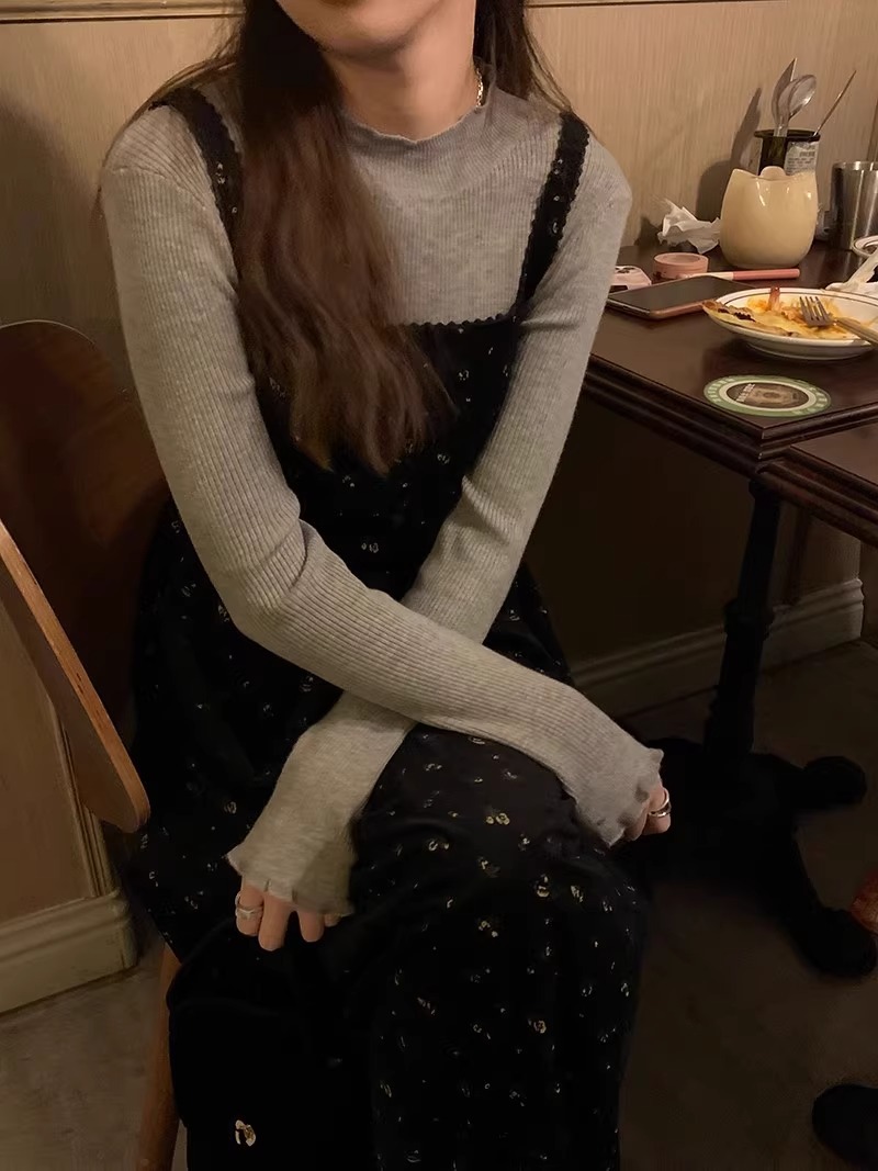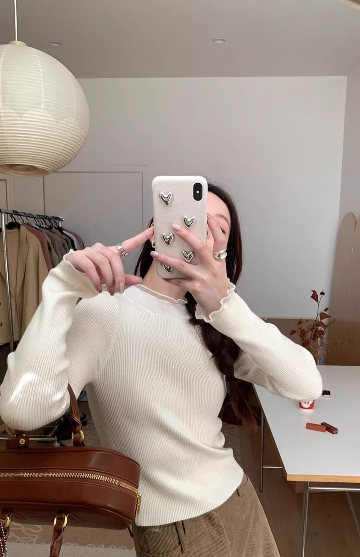 6016#半高领毛衣打底衫女秋冬新款高级感内搭长袖针织木耳边上衣