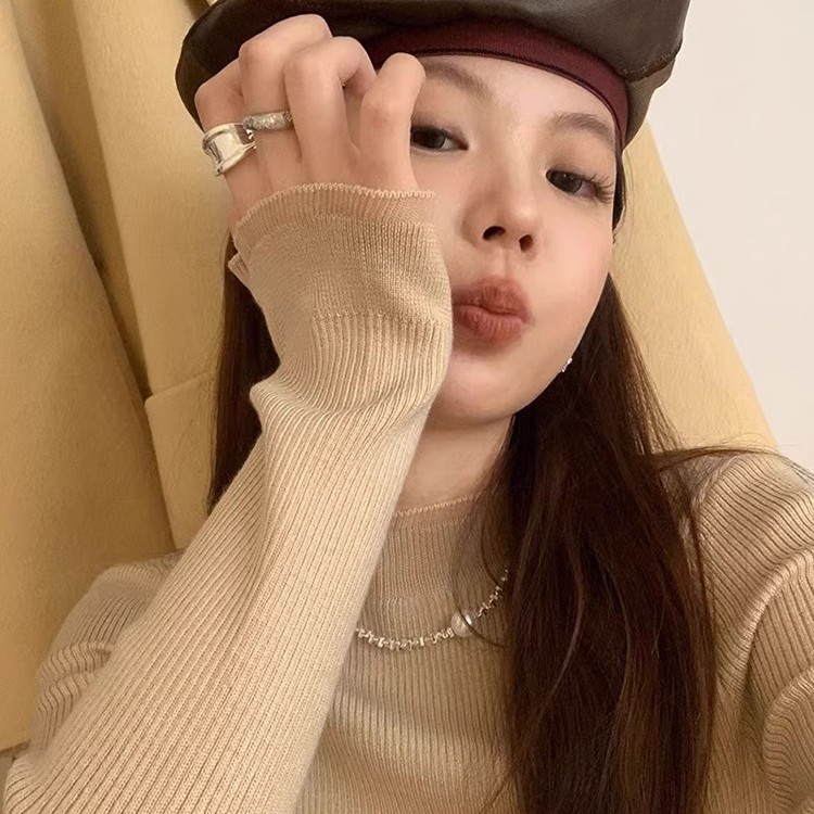 반하이넥 스웨터 여성용 2025 가을 겨울 신상 고급스러운 이너웨어 긴팔 니트 러플 상의 트렌디스토어 가기