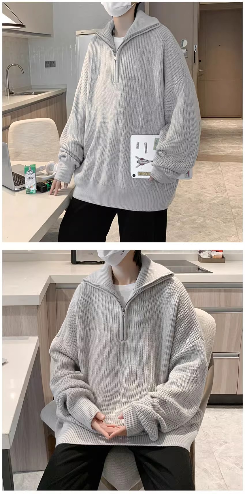 미국식 캐주얼 하프 지퍼 터틀넥 스웨터 남자 게으른 스타일 고급 가을 및 겨울 보토밍 스웨터 봄과 가을 재킷스토어 가기