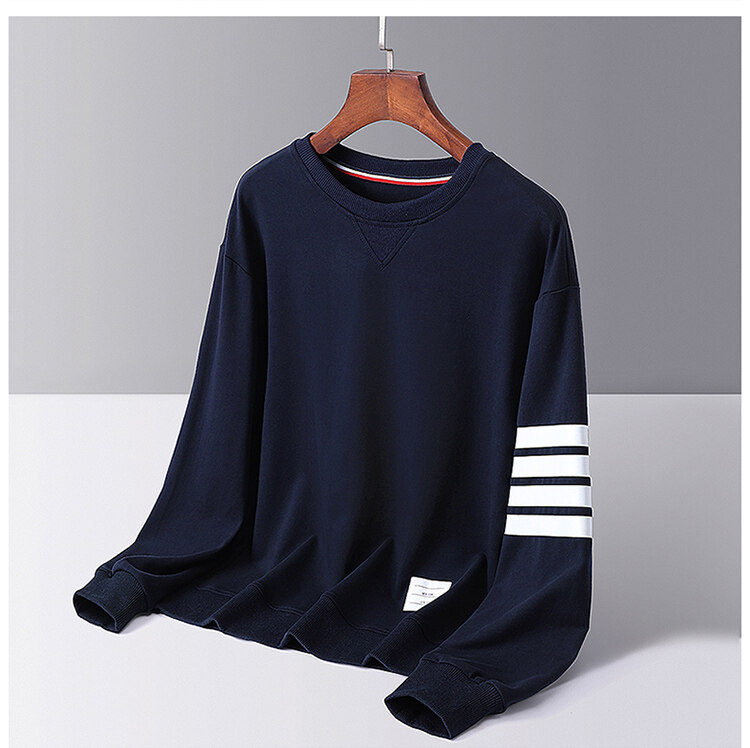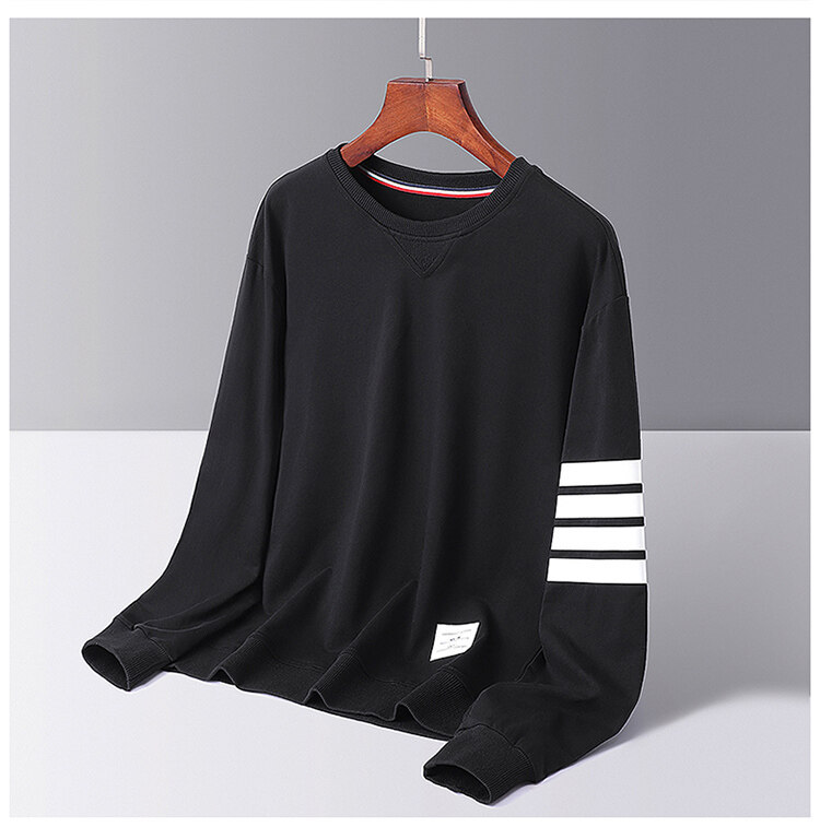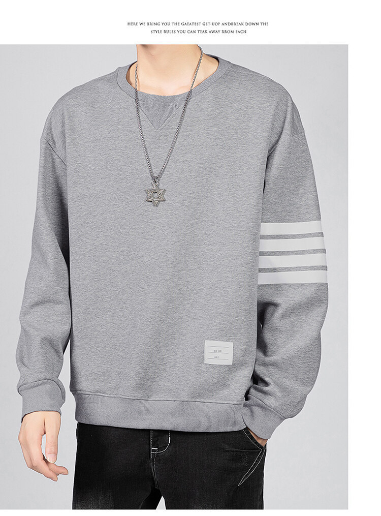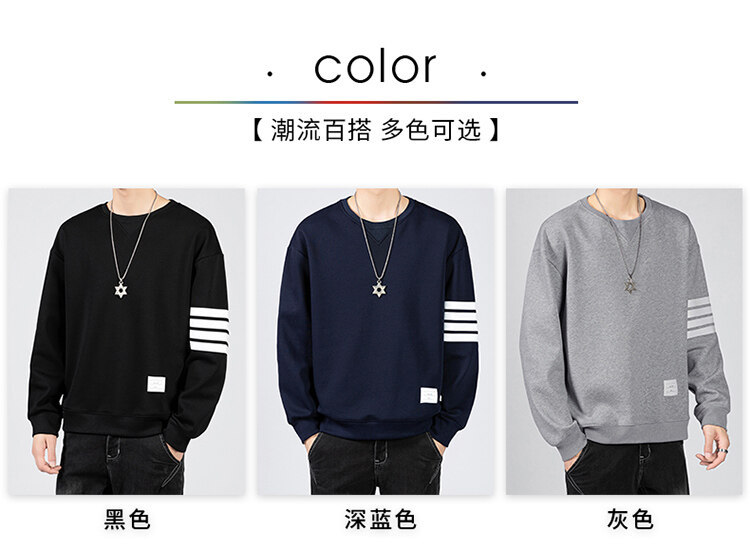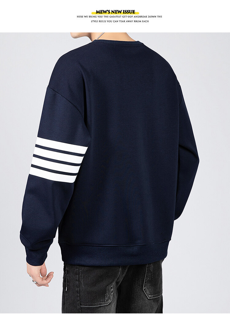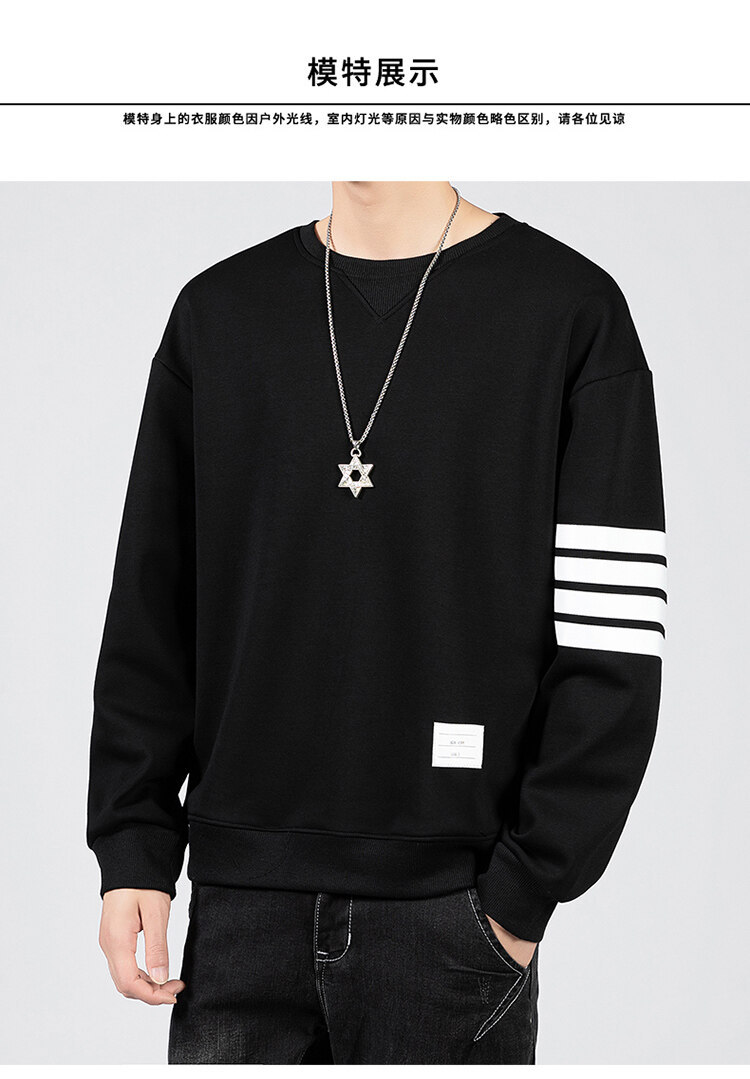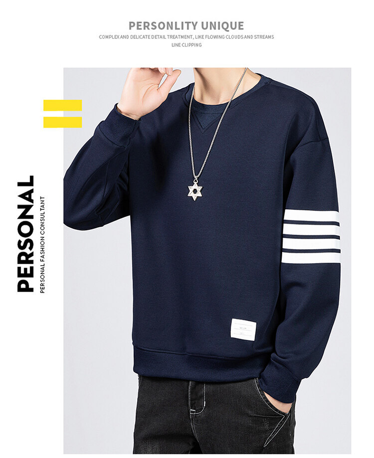 봄가을 남성용 면 스웨트셔츠 라운드넥 풀오버 네줄 스트라이프 티셔츠 루즈핏 빅사이즈 청소년 학생 트렌디 브랜드 단품스토어 가기