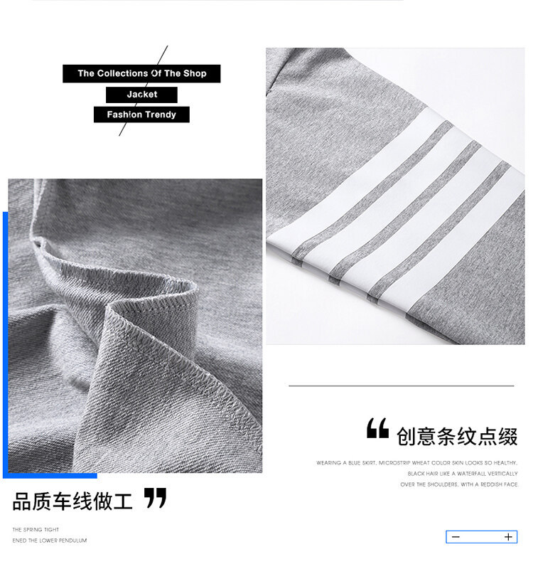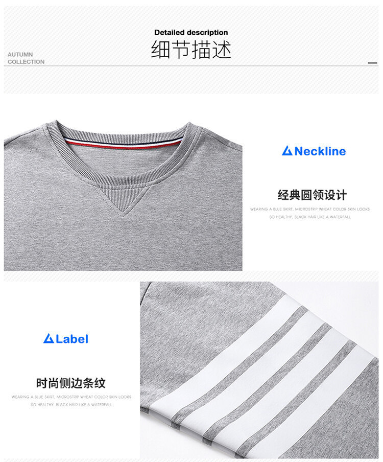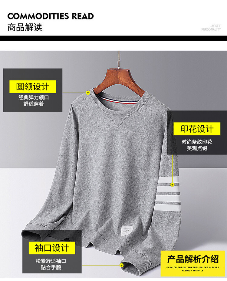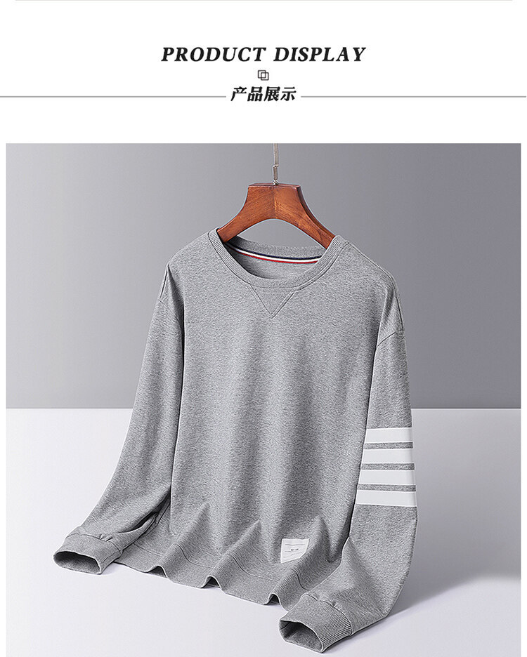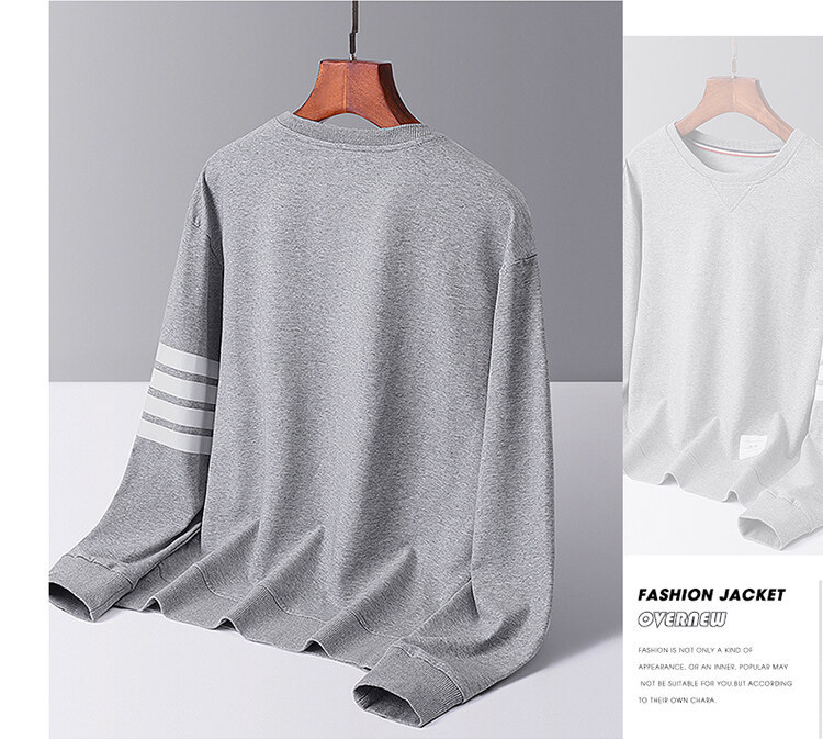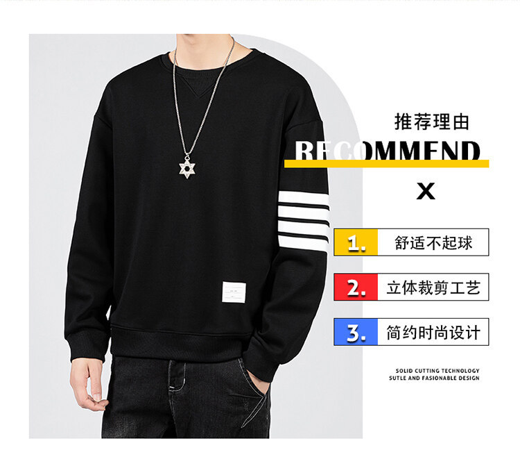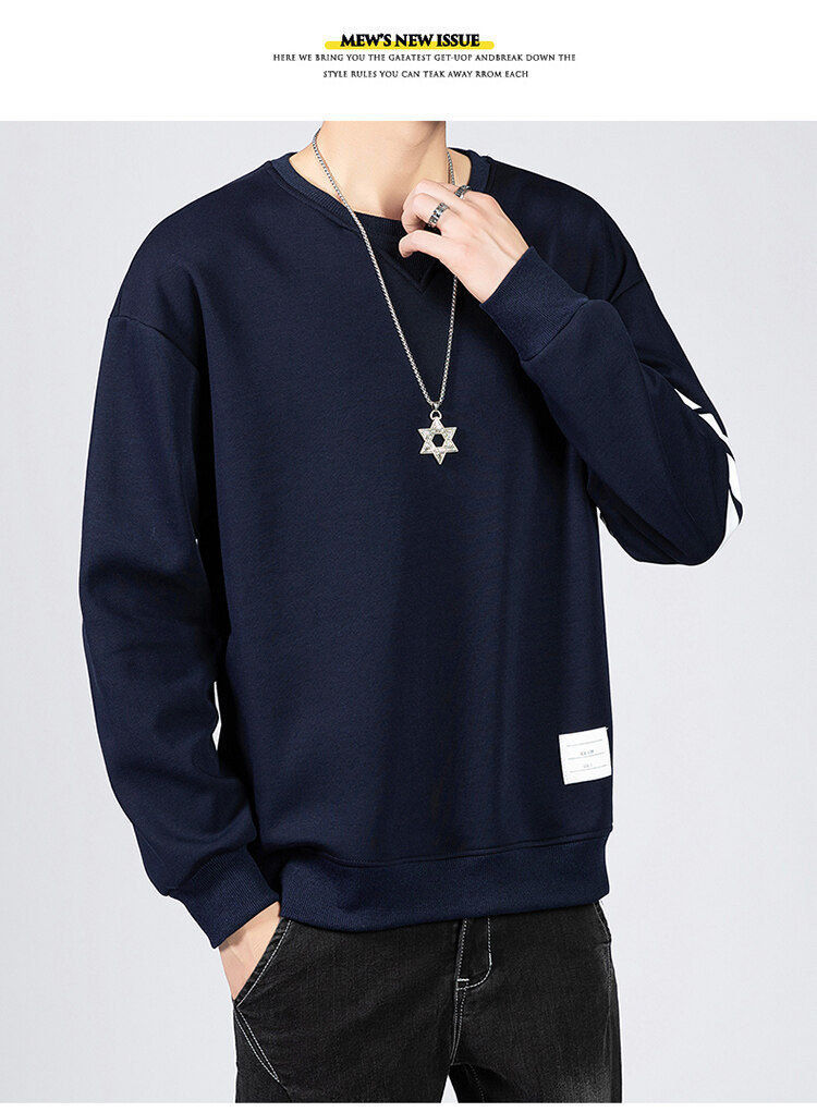 봄가을 남성용 면 스웨트셔츠 라운드넥 풀오버 네줄 스트라이프 티셔츠 루즈핏 빅사이즈 청소년 학생 트렌디 브랜드 단품스토어 가기