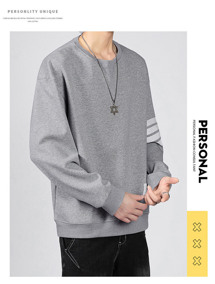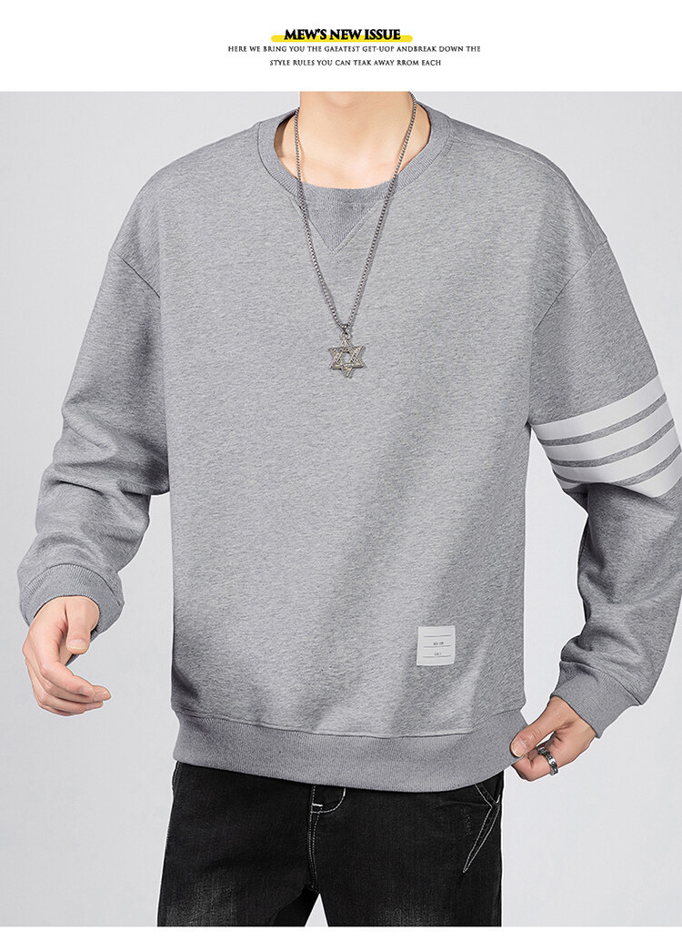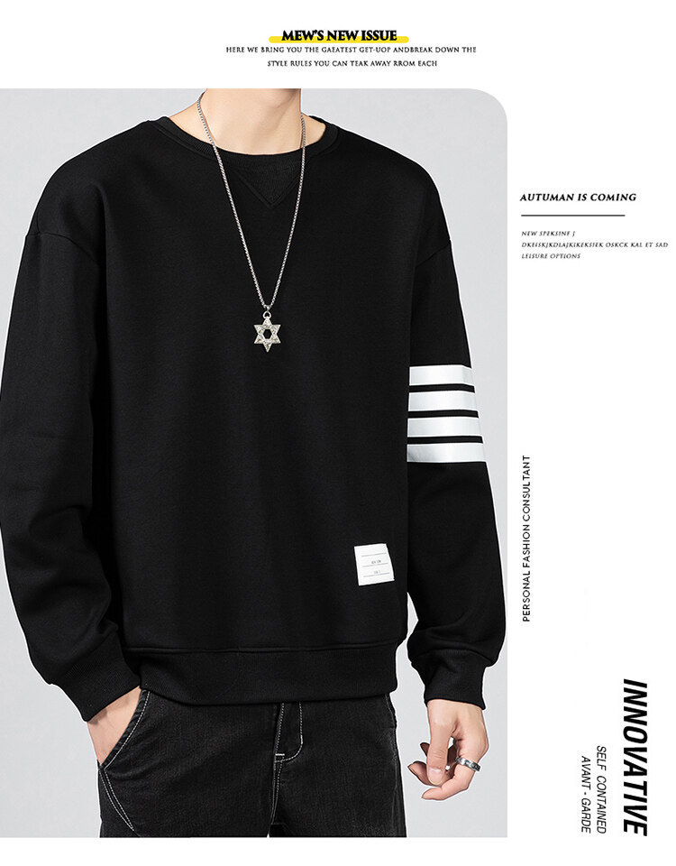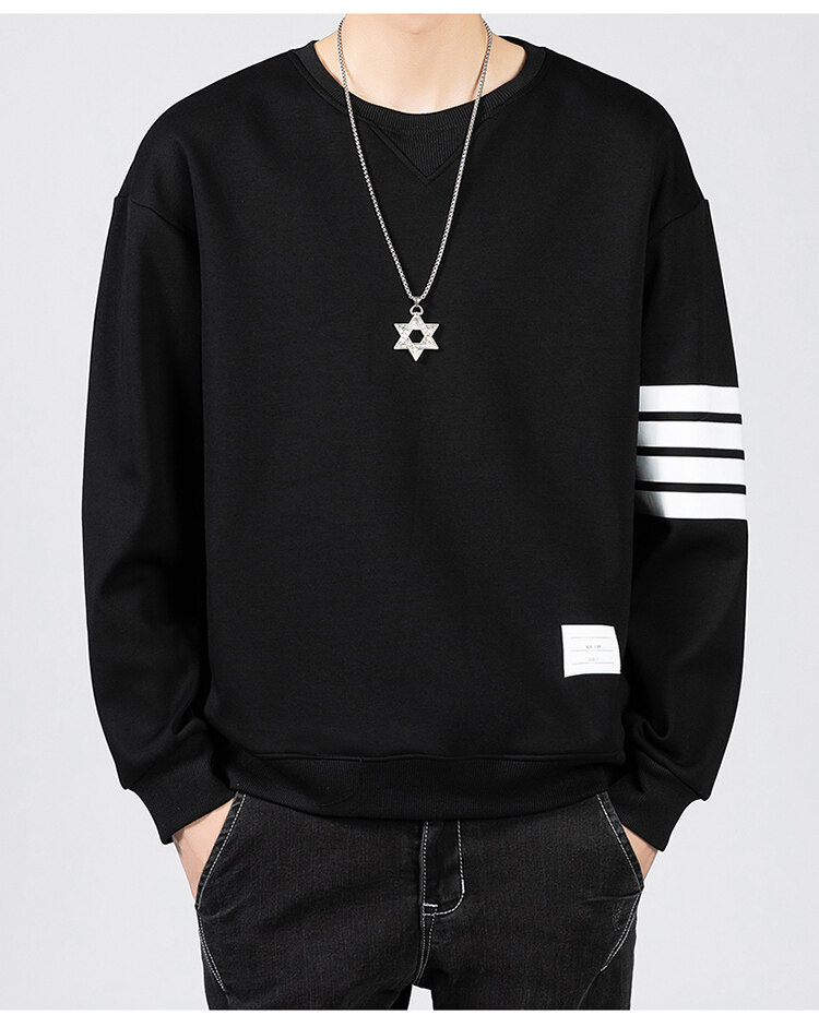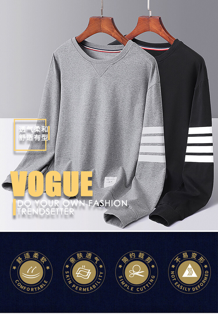 봄가을 남성용 면 스웨트셔츠 라운드넥 풀오버 네줄 스트라이프 티셔츠 루즈핏 빅사이즈 청소년 학생 트렌디 브랜드 단품