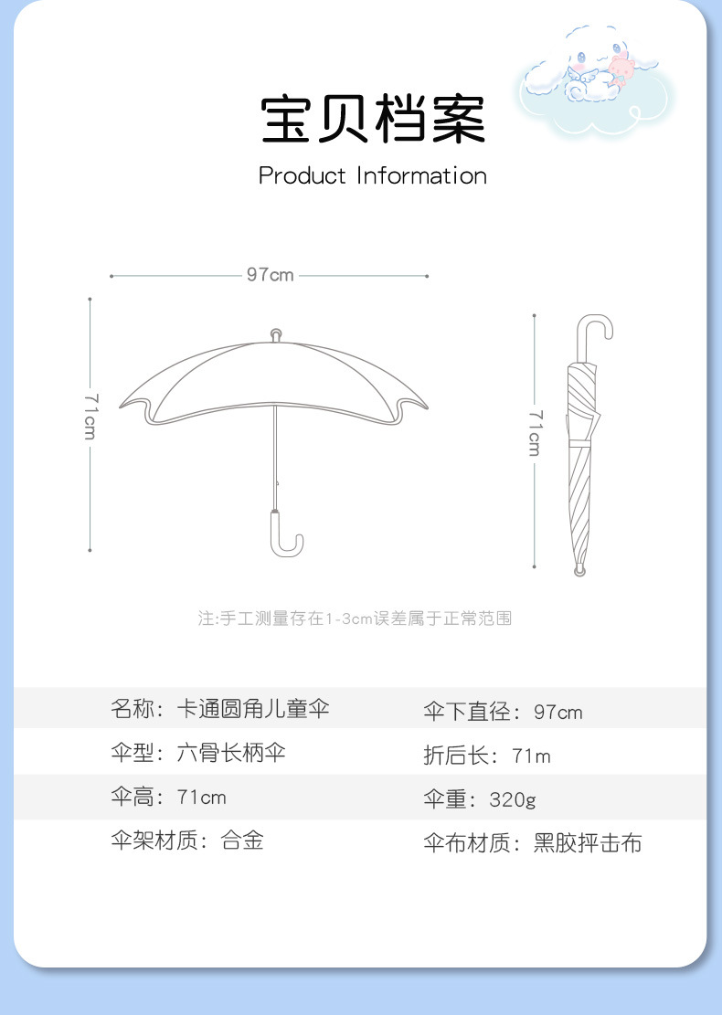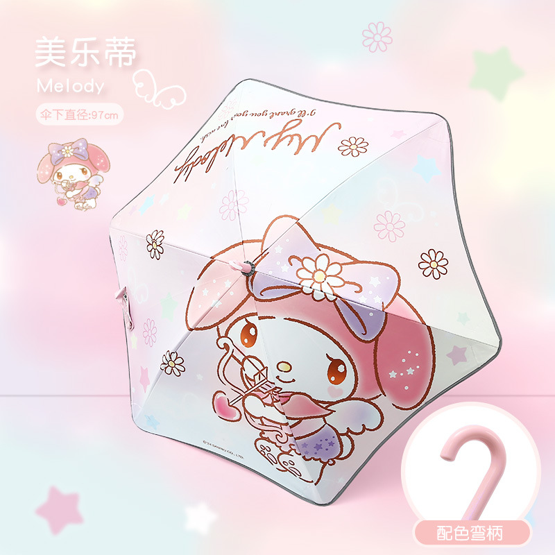 만화 우산 학생용 산리오 어린이용 멜로디 둥근 모서리 긴 손잡이 우산 자동 우산 비/햇빛 겸용 반사 스트립 로고 인쇄
