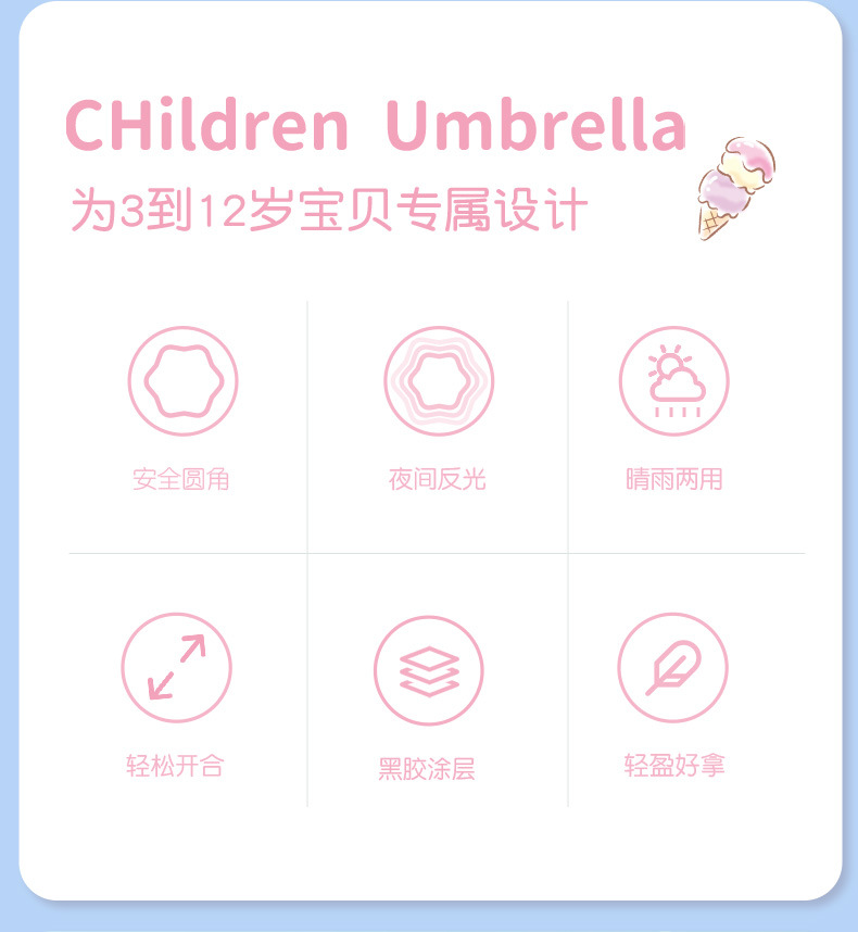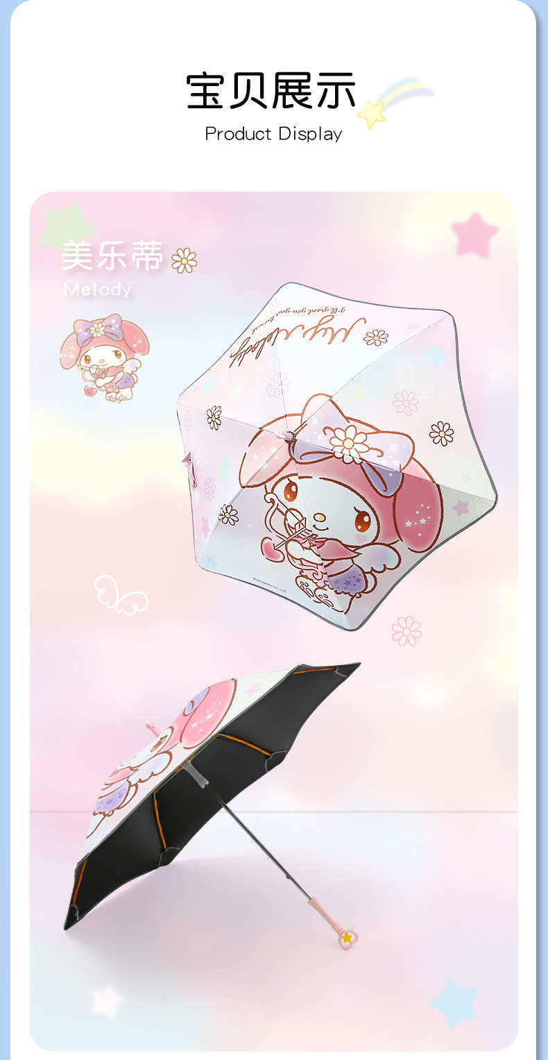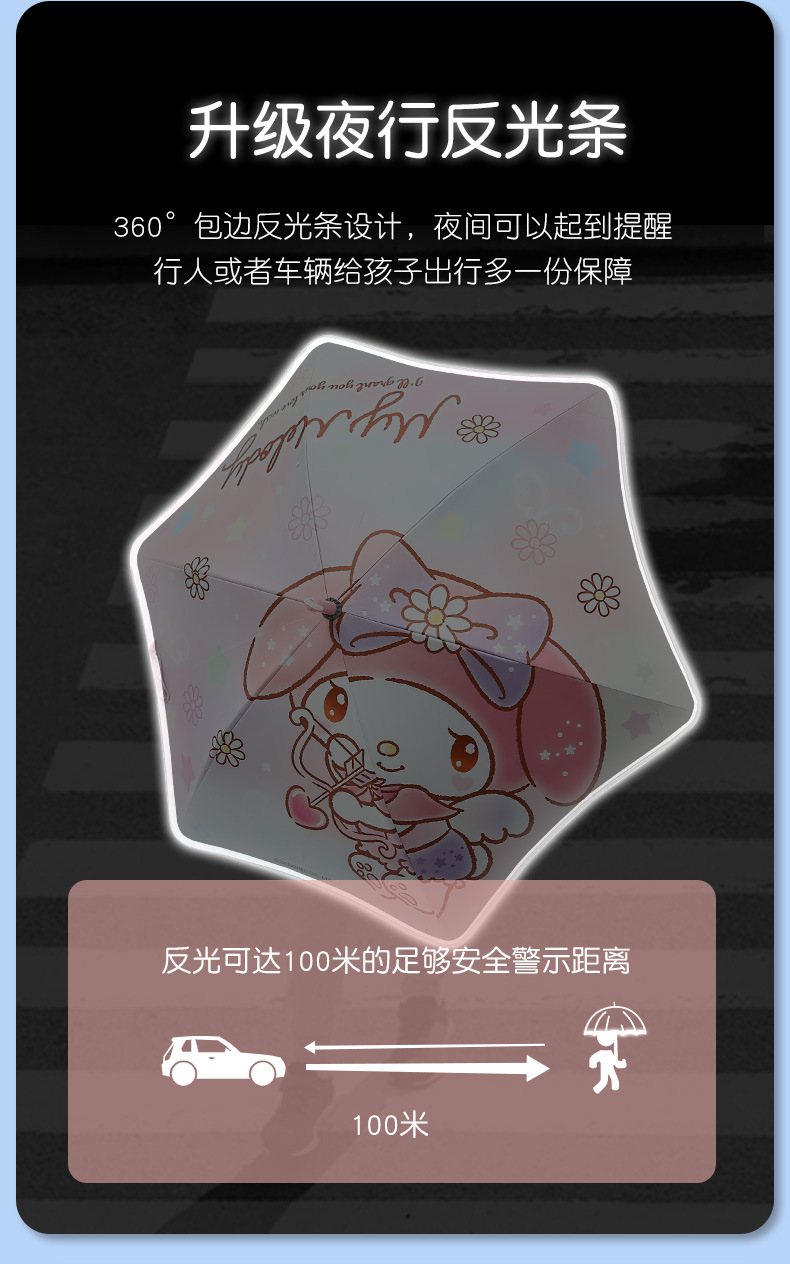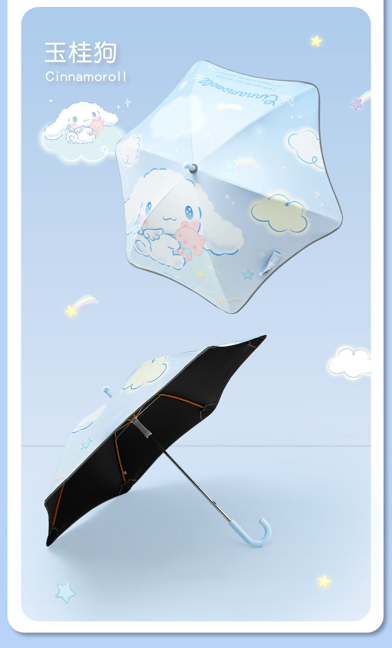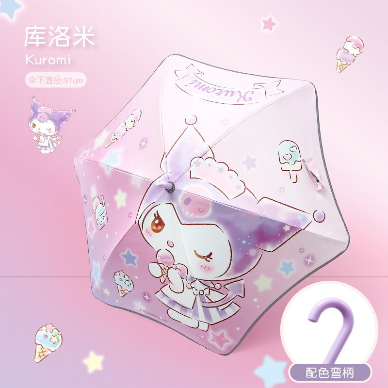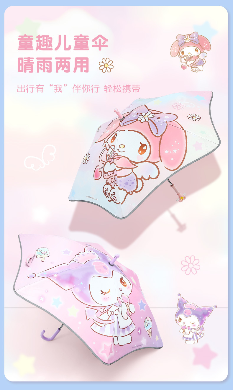 만화 우산 학생용 산리오 어린이용 멜로디 둥근 모서리 긴 손잡이 우산 자동 우산 비/햇빛 겸용 반사 스트립 로고 인쇄스토어 가기