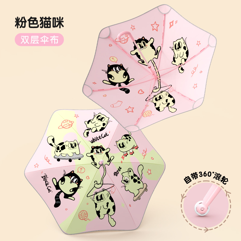 • [핑크캣] [이중 두꺼운 우산 표면] (롤러 + 두꺼운 중간 막대)