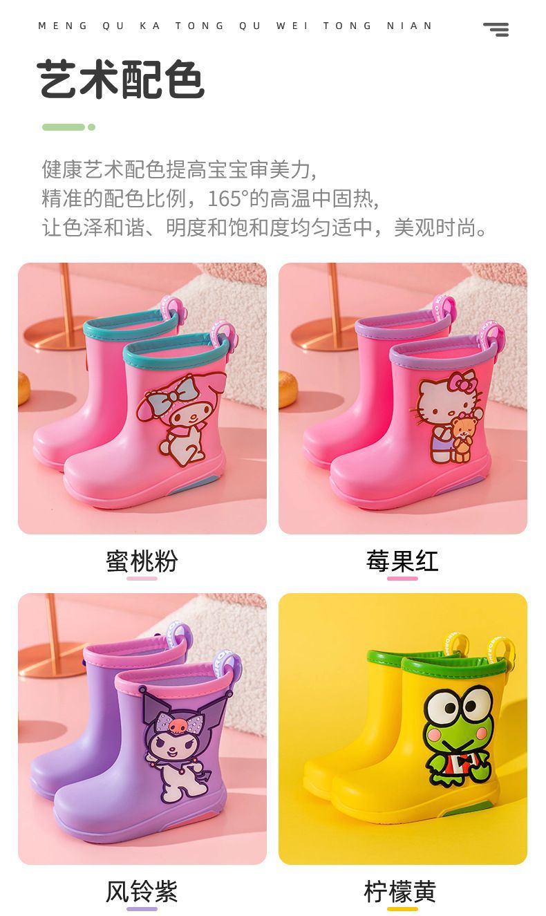 산리오 어린이 비 부츠 소녀의 Kulomi Meruti 짧은 만화 유치원 아기 비 부츠 미끄럼 방지 워터 슈즈