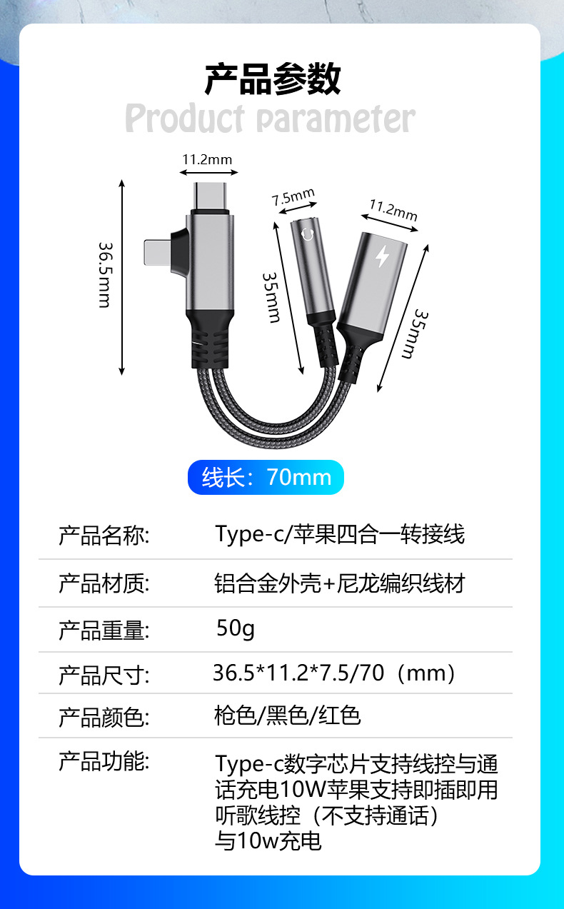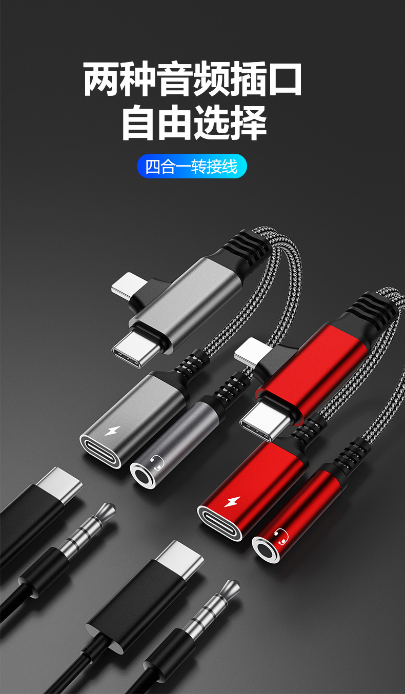 아마존은 애플 화웨이 삼성 휴대 전화 Type-c/Lightning 4-in-one 오디오 어댑터에 적합합니다.
