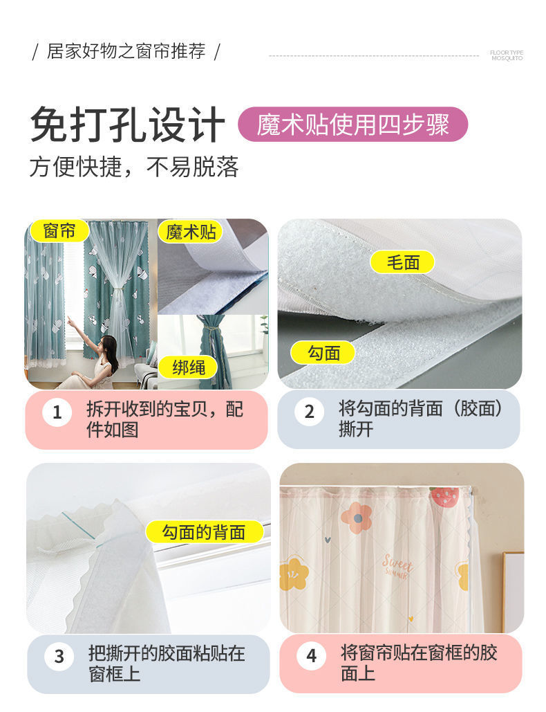 벨크로 작은 커튼 햇빛 완성 된 가정용 간단한 발코니 하프 섹션 그늘 천 짧은 섹션 임대 주택 접착제 형스토어 가기