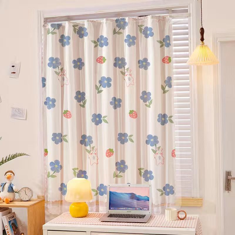 • 블루플라워 [벨크로] 거즈커튼 일체형