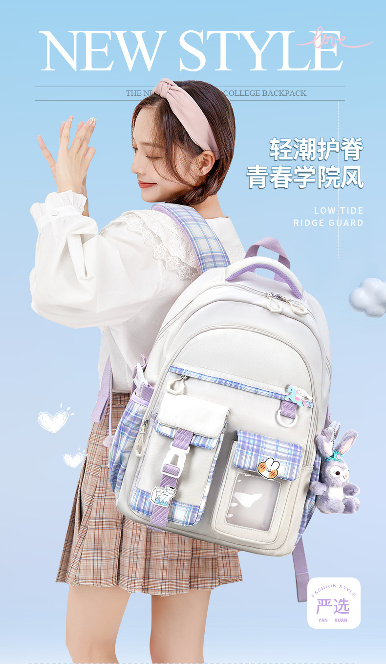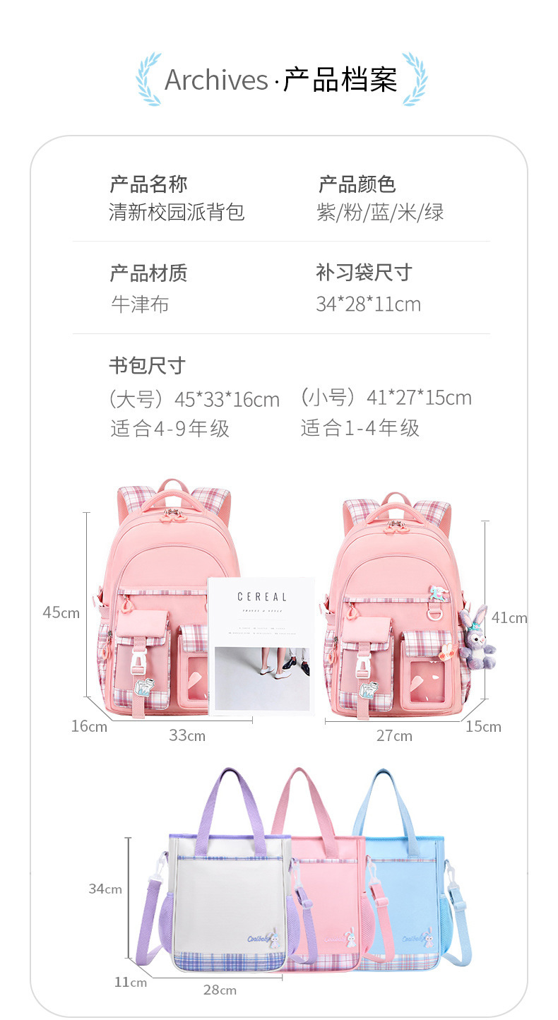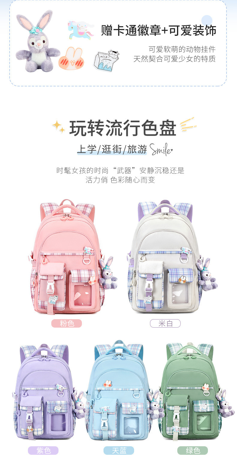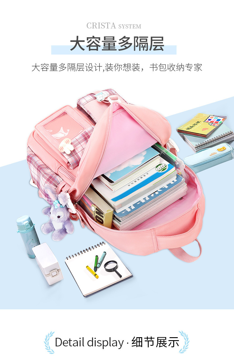 새로운 초등학생 책가방, 1~3~6학년 여학생용, 만화 캐릭터가 귀여운 어린이 백팩, 가볍고 부담을 줄여주는, 중학생용 방수
