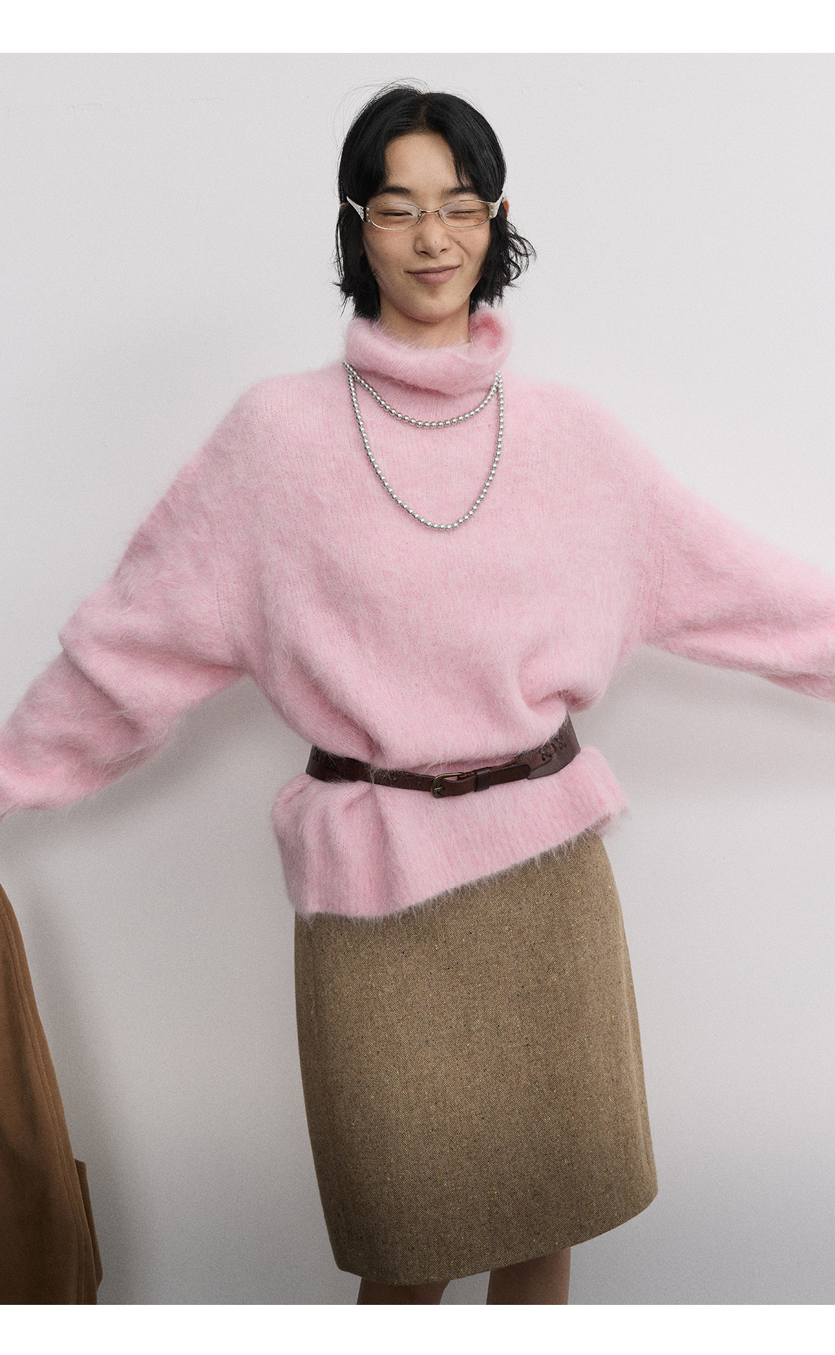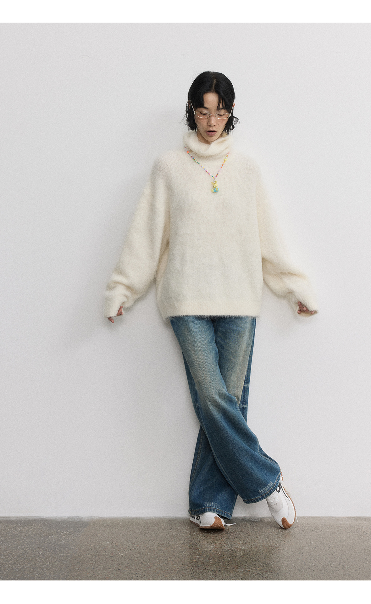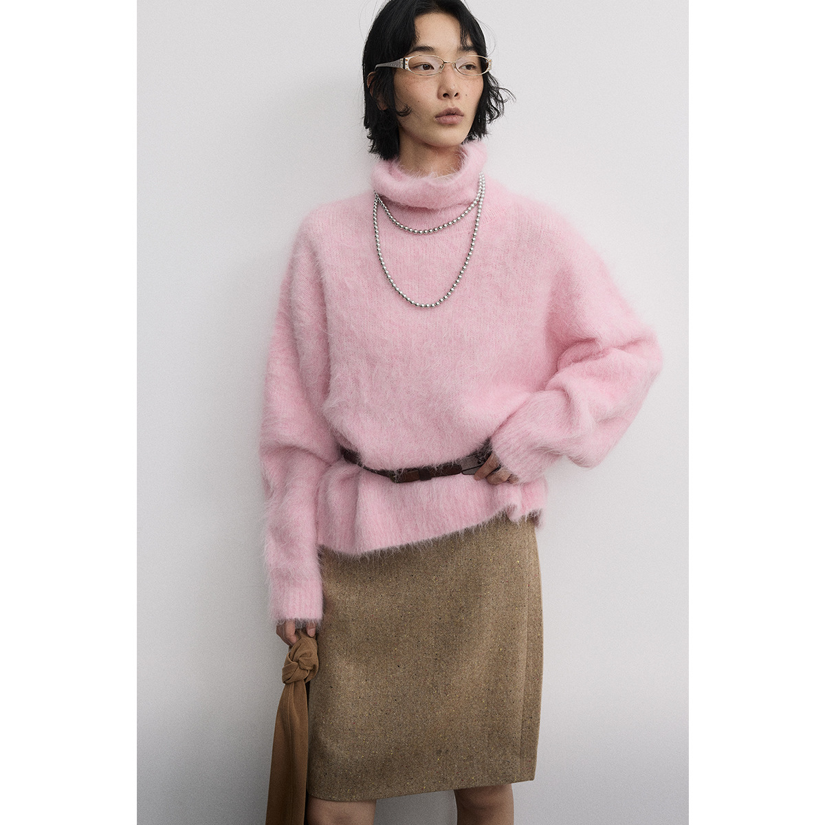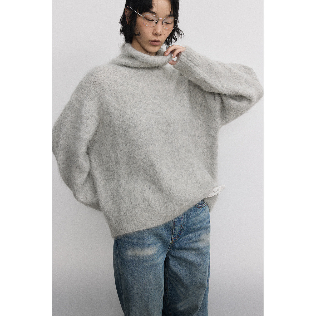 [시간] 여성을위한 새로운 슈퍼 부드럽고 편안한 따뜻한 알파카 높은 목 느슨한 조커 긴 소매 스웨터 V7532