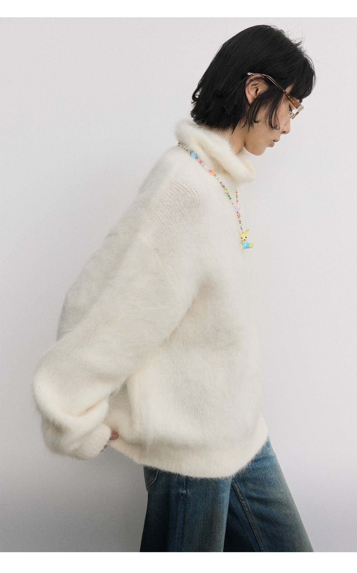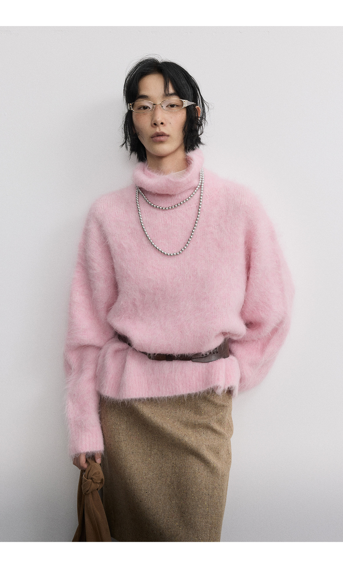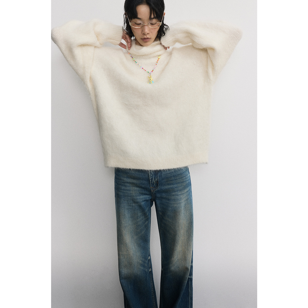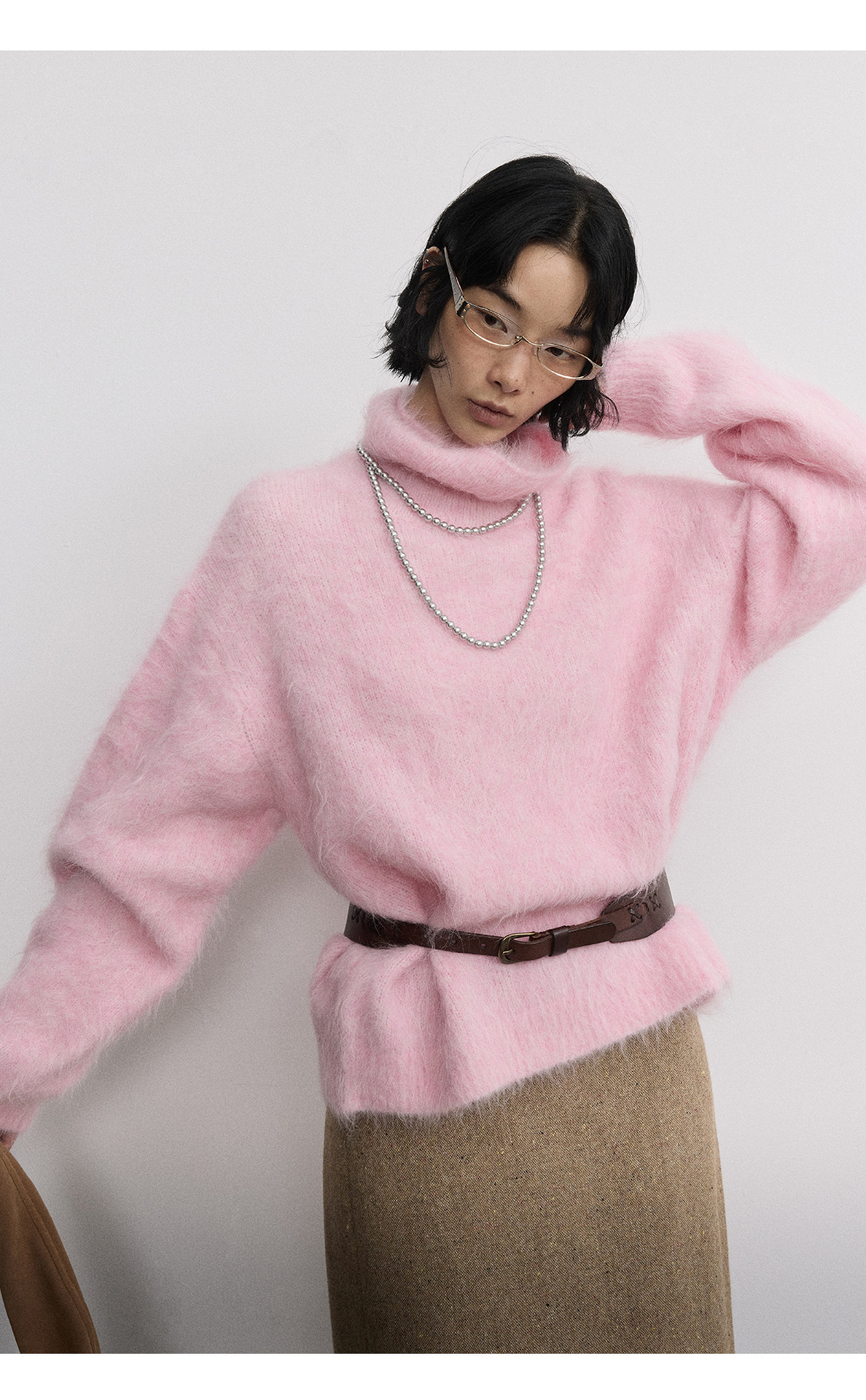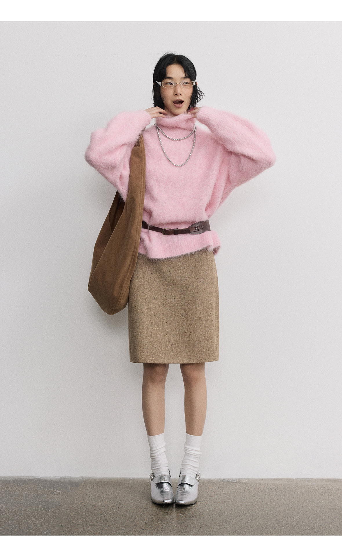 [시간] 여성을위한 새로운 슈퍼 부드럽고 편안한 따뜻한 알파카 높은 목 느슨한 조커 긴 소매 스웨터 V7532