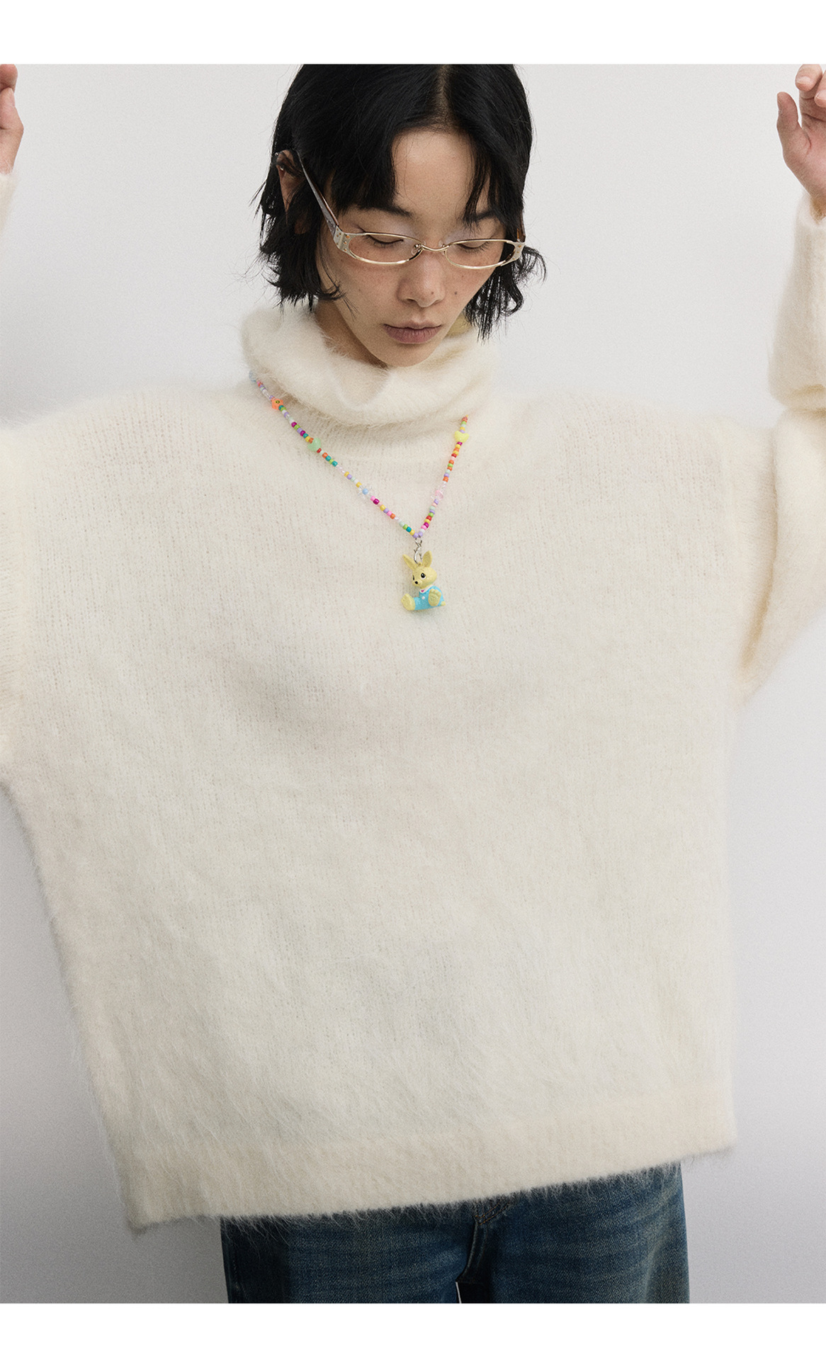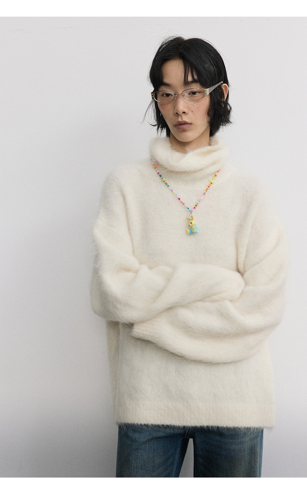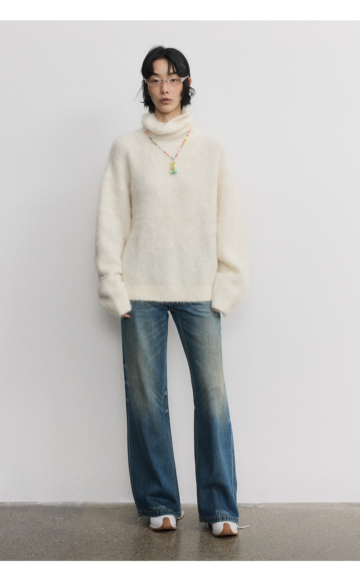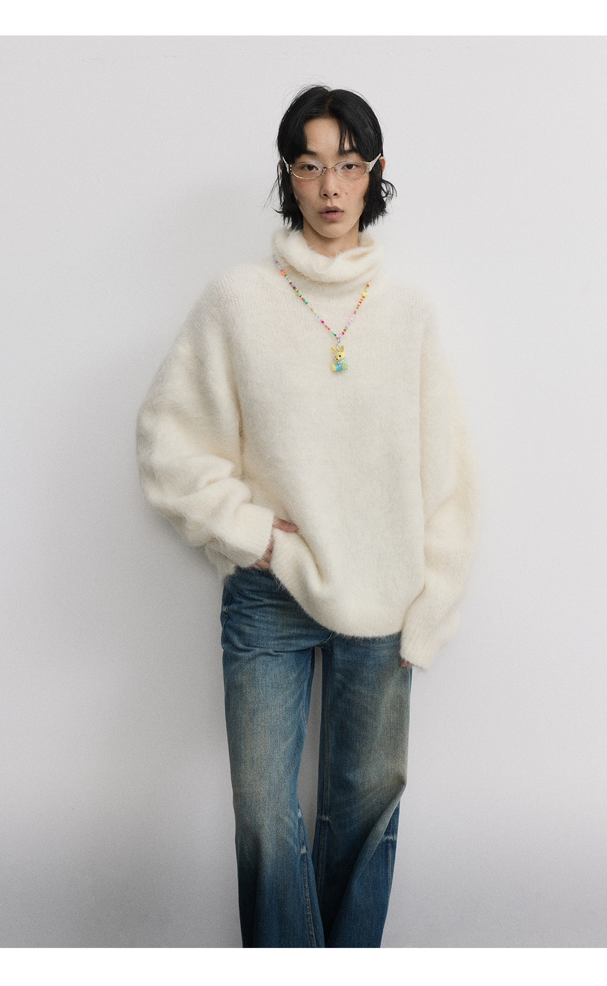 [시간] 여성을위한 새로운 슈퍼 부드럽고 편안한 따뜻한 알파카 높은 목 느슨한 조커 긴 소매 스웨터 V7532
