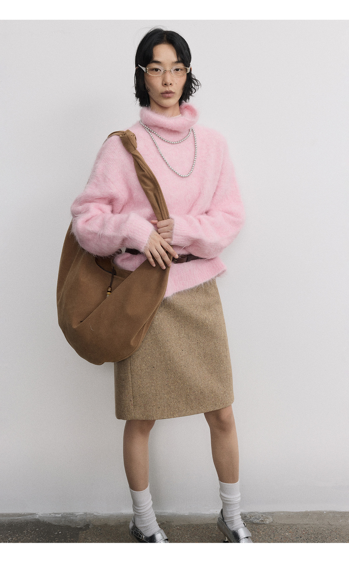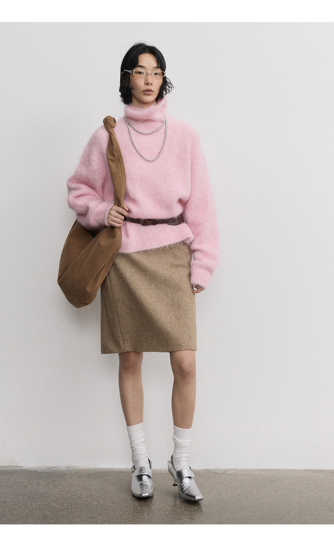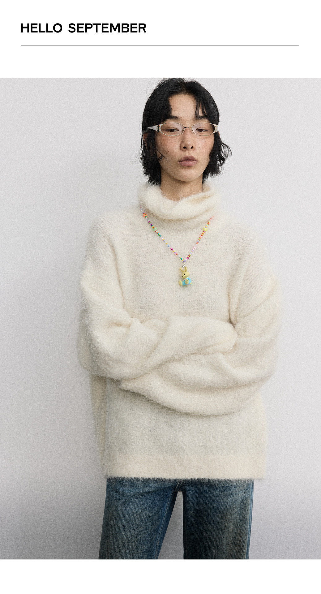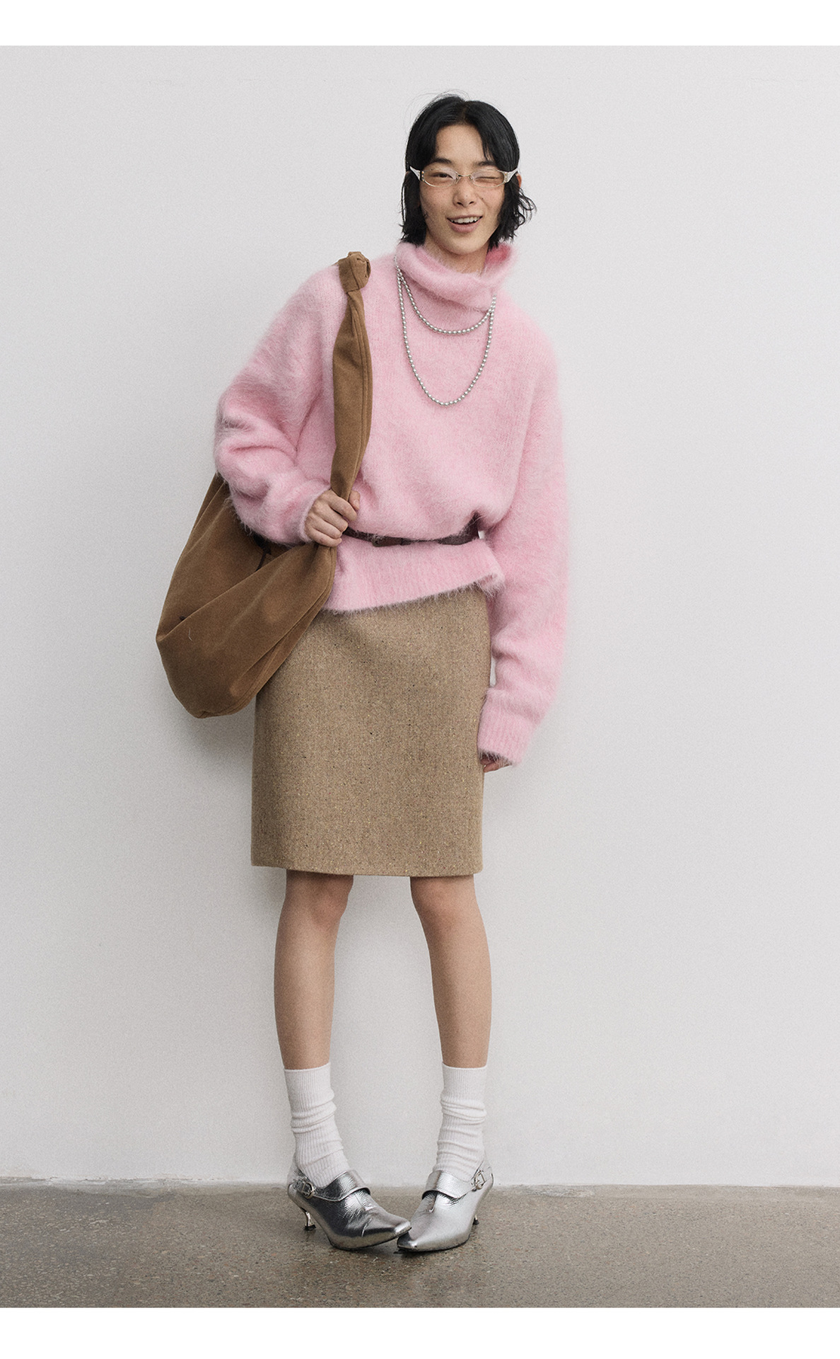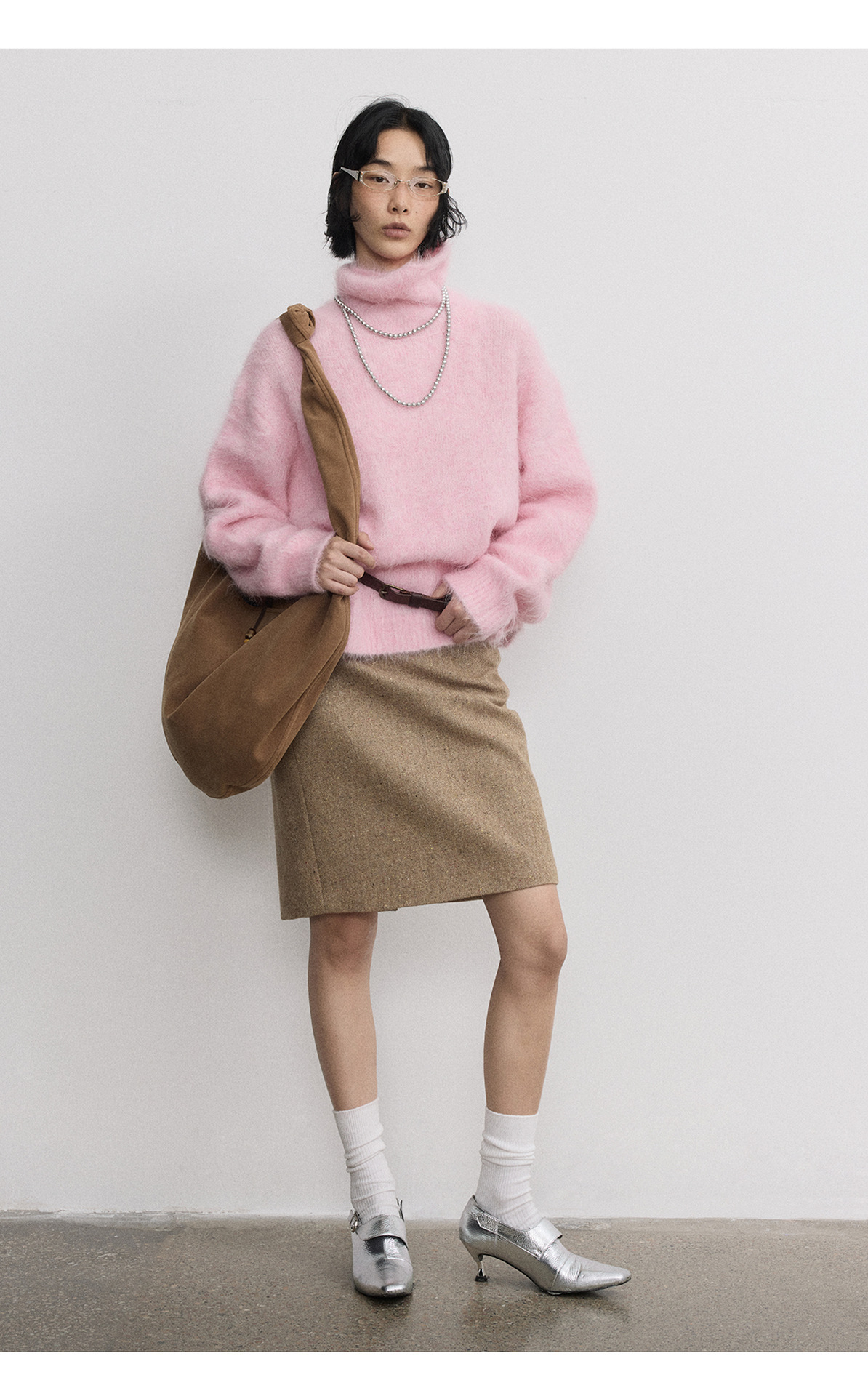 [시간] 여성을위한 새로운 슈퍼 부드럽고 편안한 따뜻한 알파카 높은 목 느슨한 조커 긴 소매 스웨터 V7532