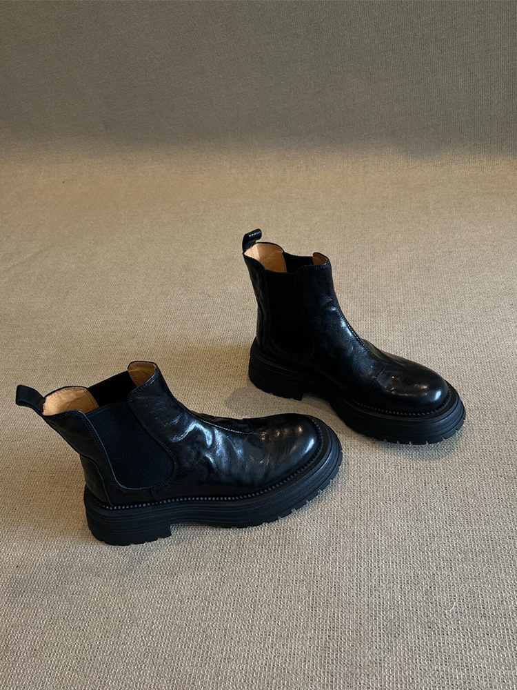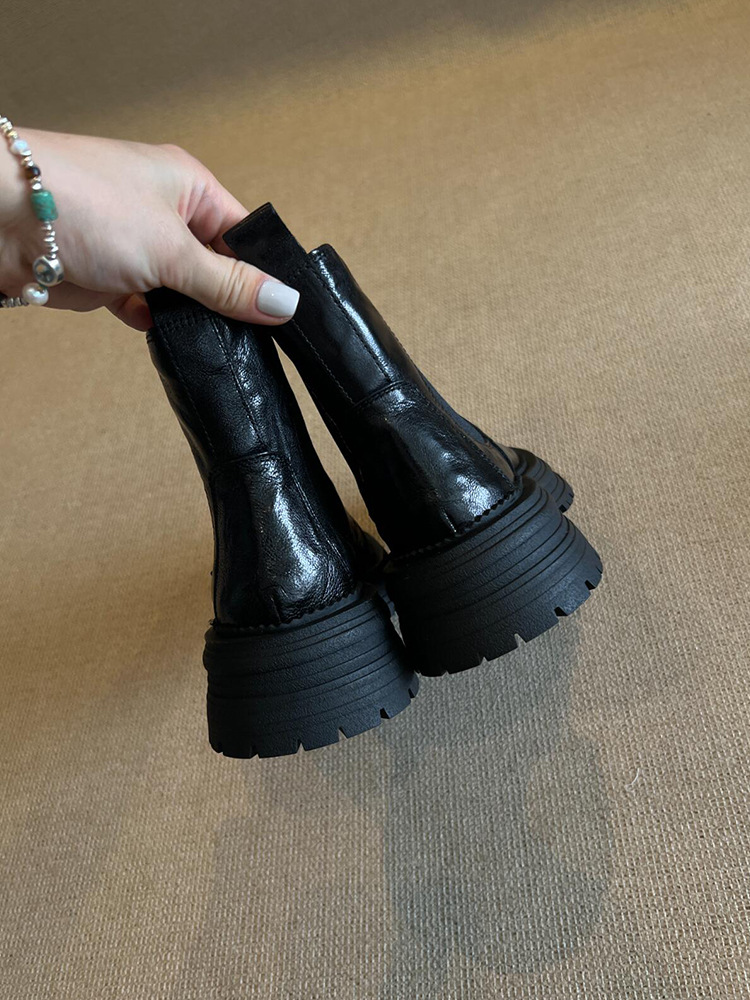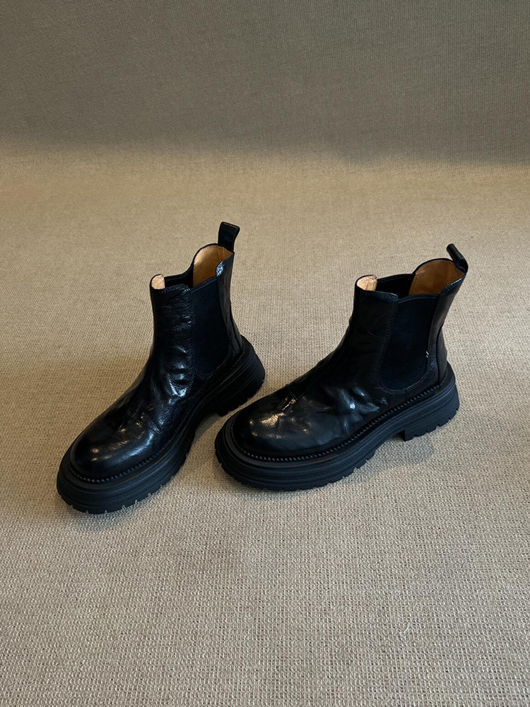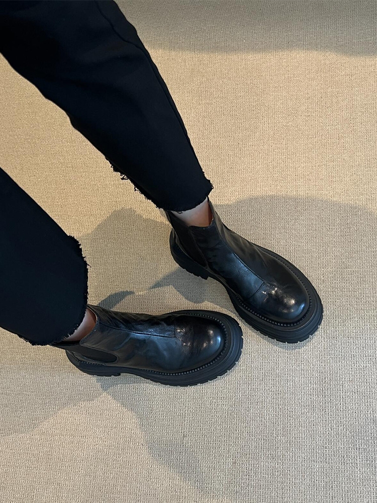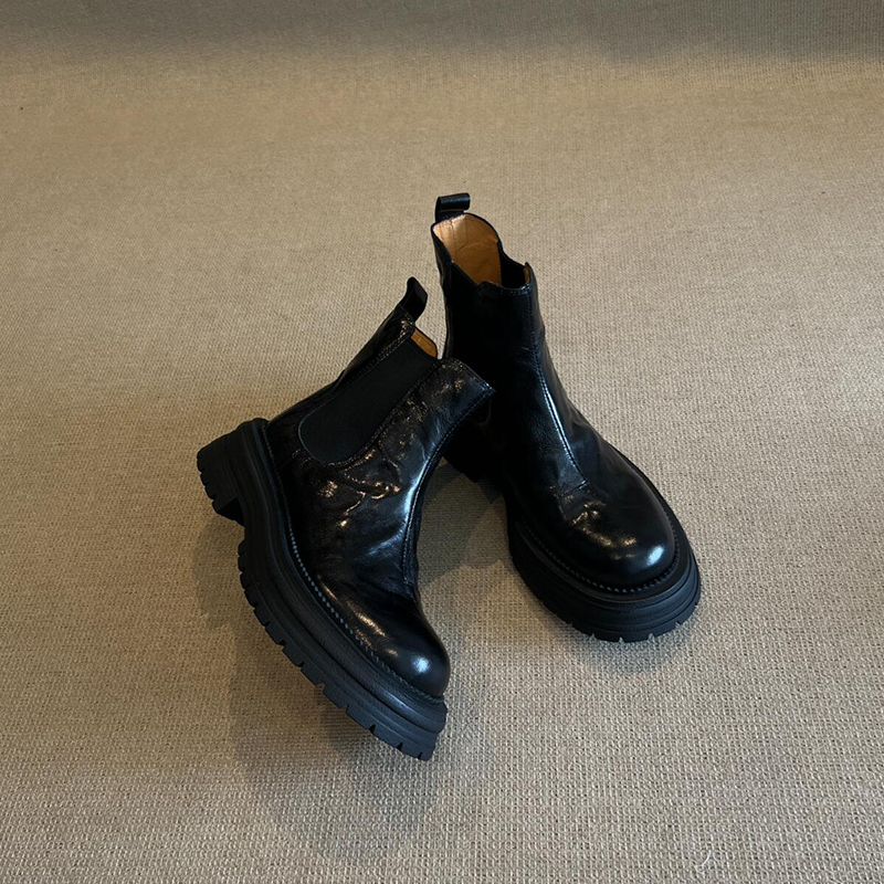 소가죽 버전! 여성용 마틴 부츠 2025 신상 영국 스타일 천연 가죽 라운드 토 숏부츠 두꺼운 밑창 슬림 첼시 부츠스토어 가기