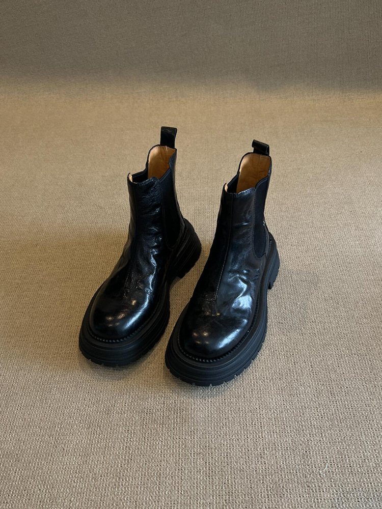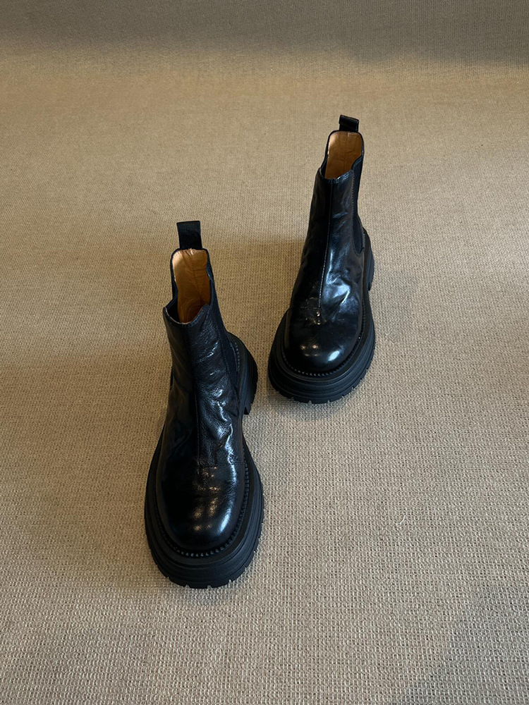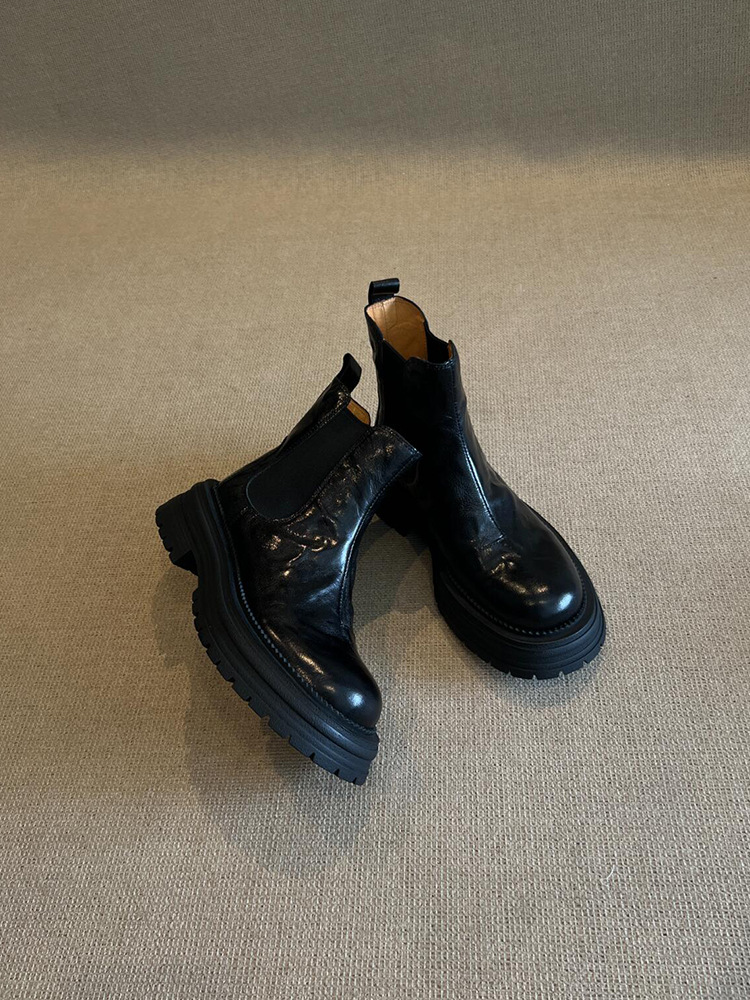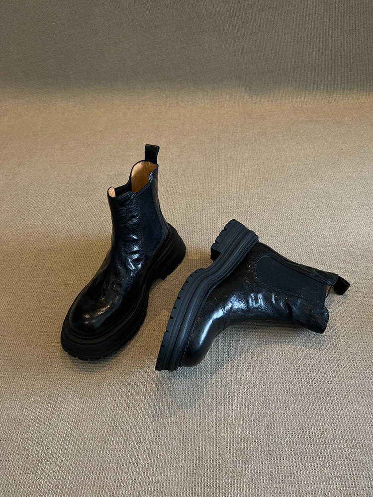 소가죽 버전! 여성용 마틴 부츠 2025 신상 영국 스타일 천연 가죽 라운드 토 숏부츠 두꺼운 밑창 슬림 첼시 부츠스토어 가기