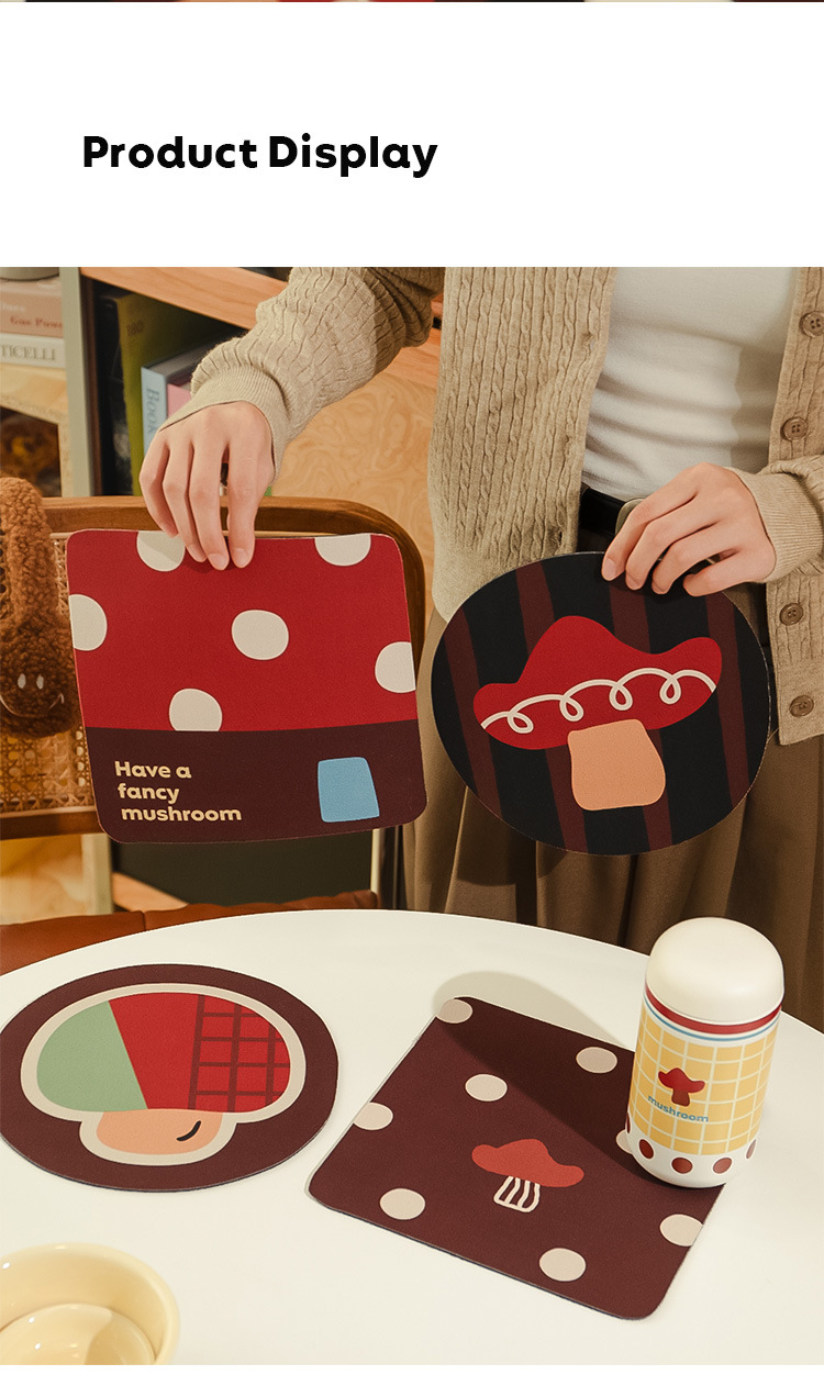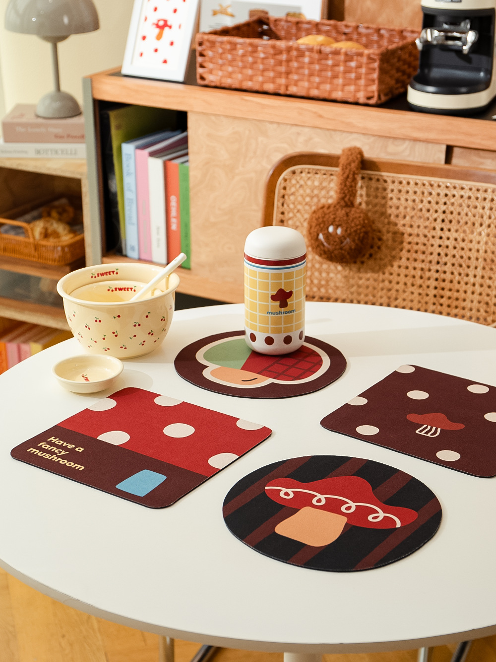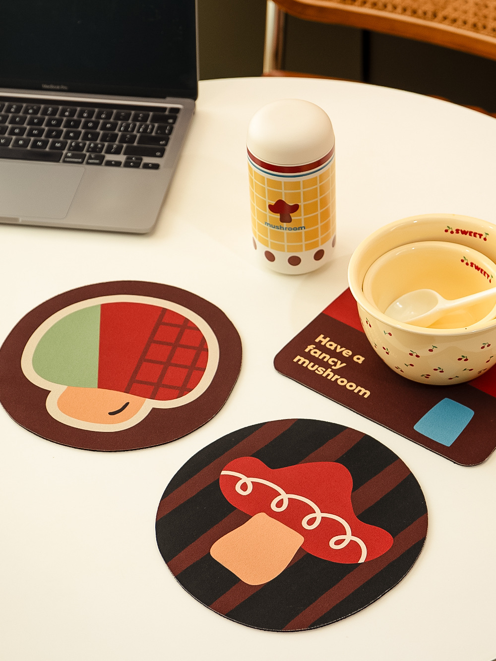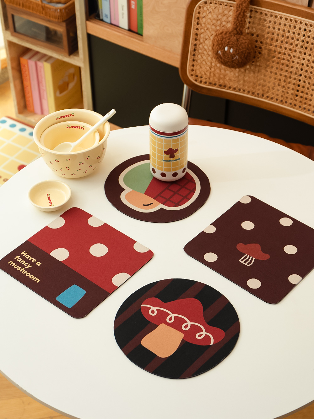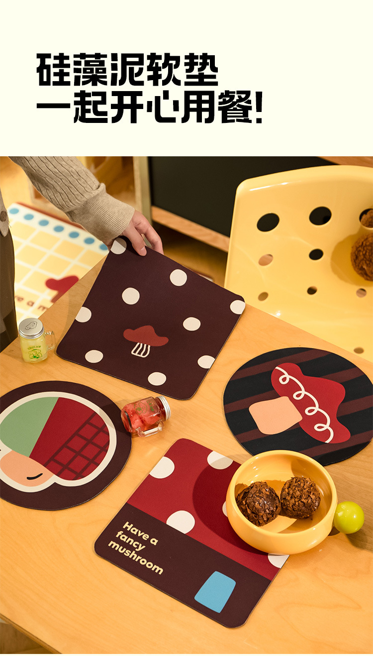 버섯 규조 진흙 단열 매트 코스터 흡수성 안티 스케일 다이닝 테이블 매트 고온 저항성 플레이트 매트 만화 귀여운 매트