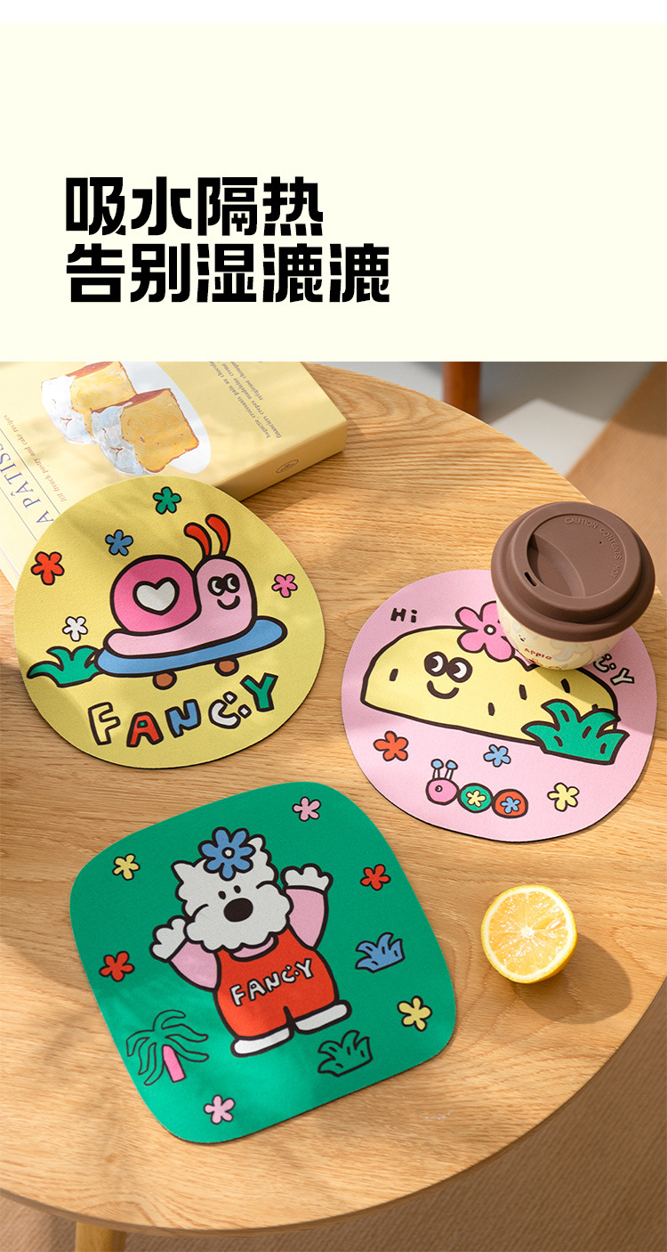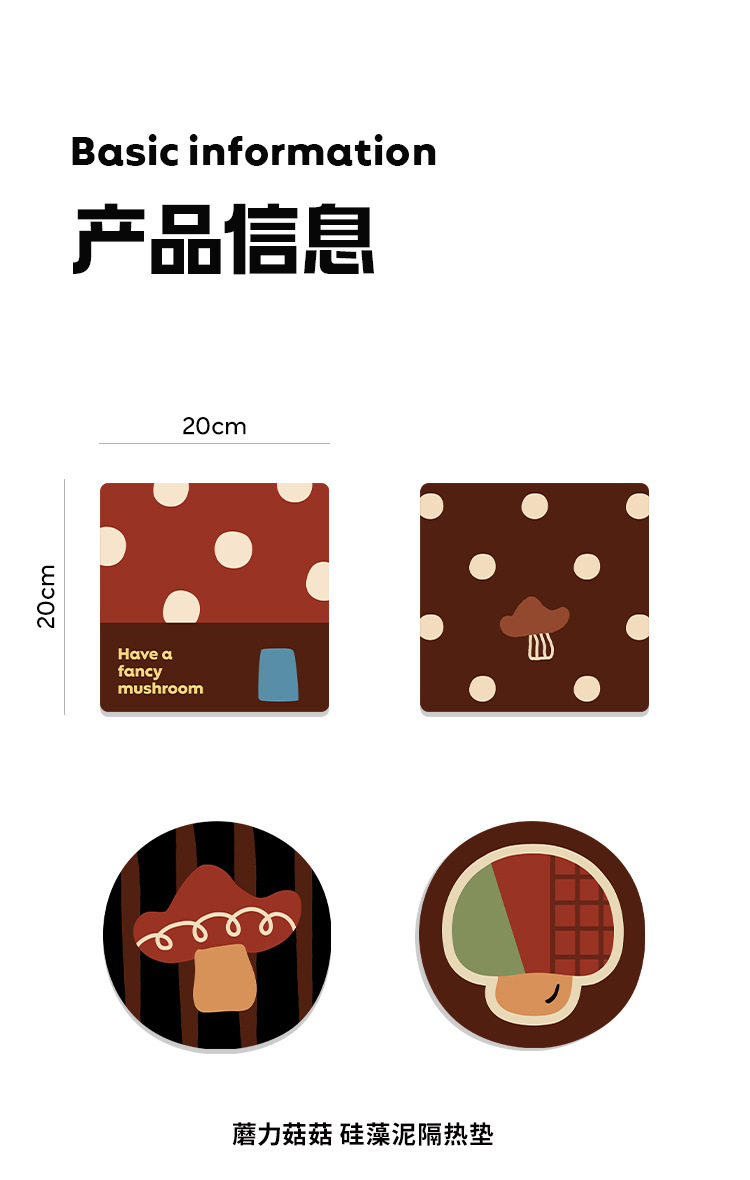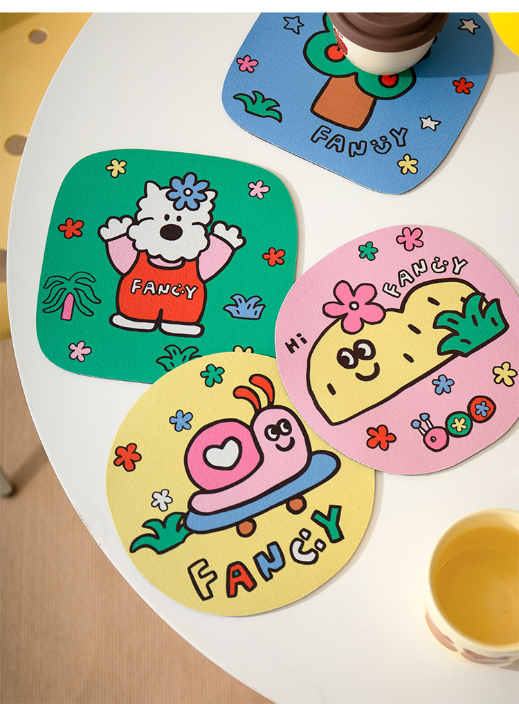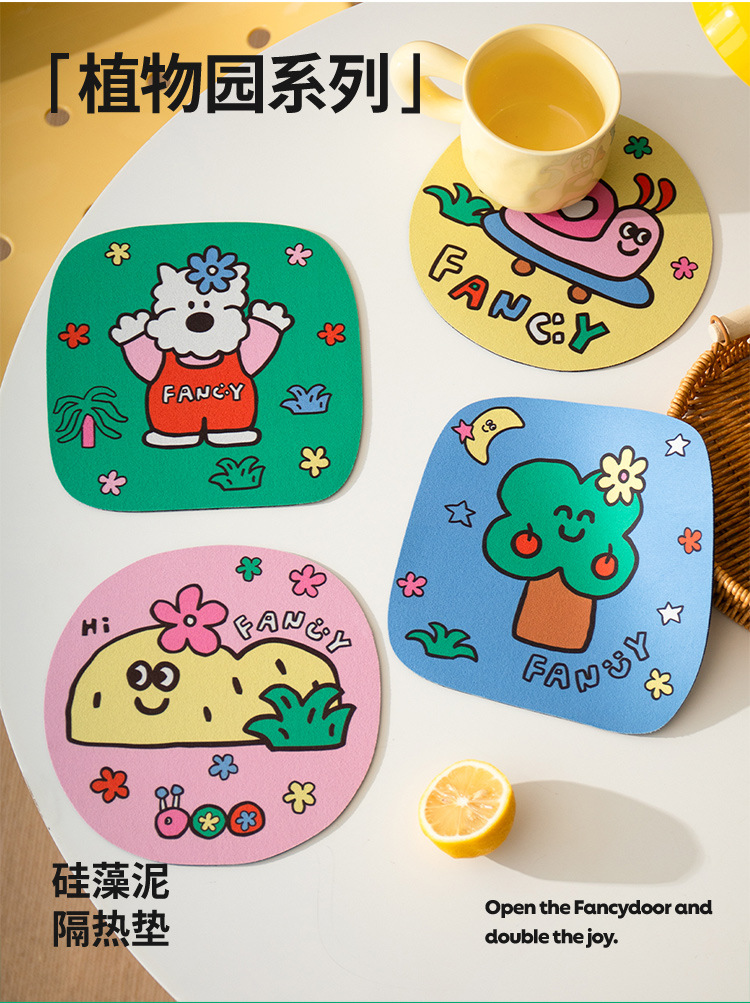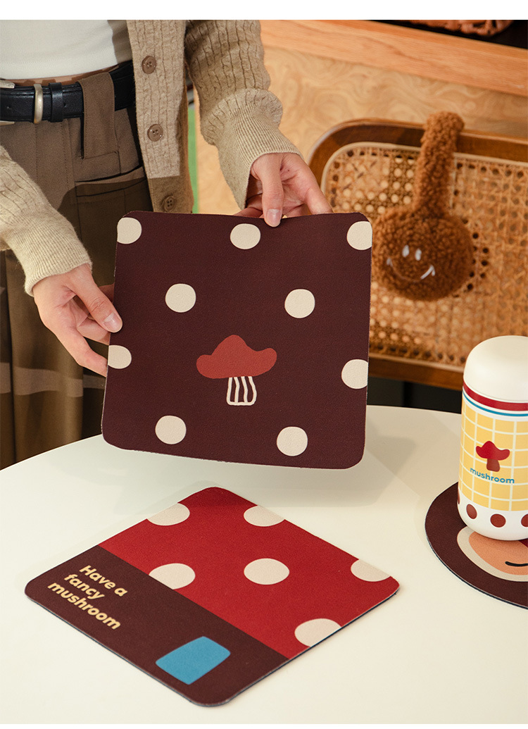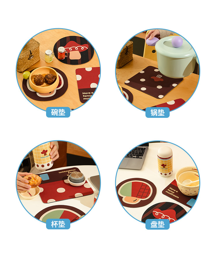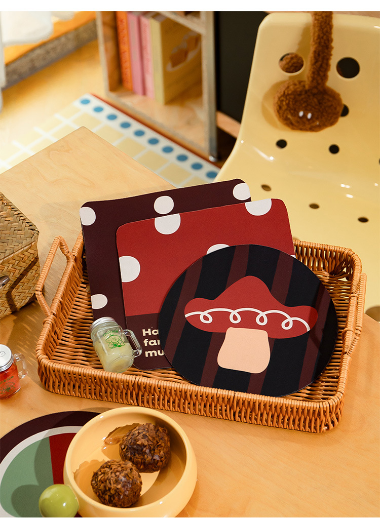 버섯 규조 진흙 단열 매트 코스터 흡수성 안티 스케일 다이닝 테이블 매트 고온 저항성 플레이트 매트 만화 귀여운 매트