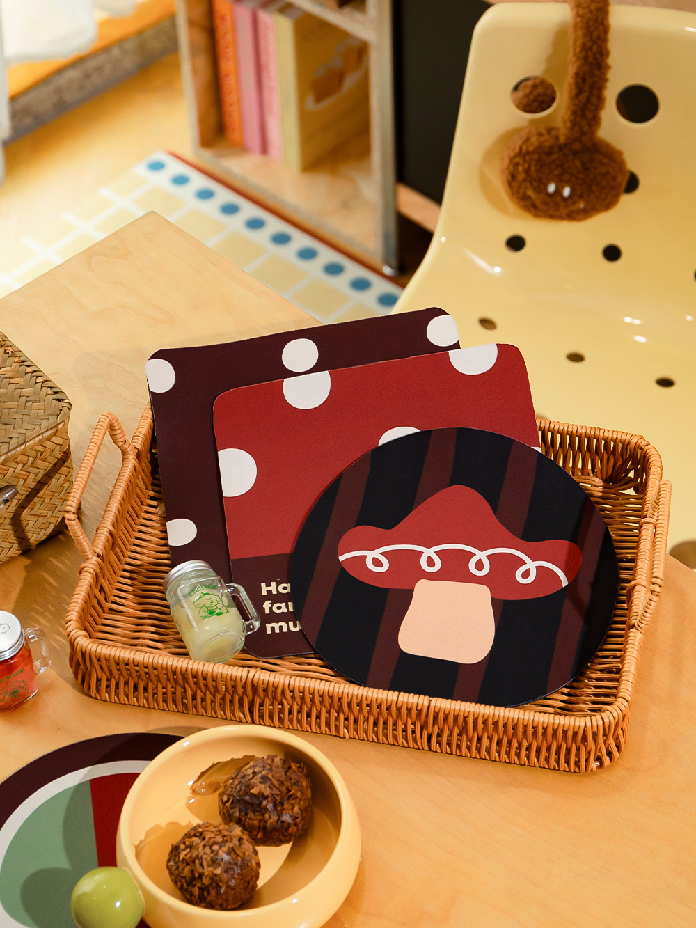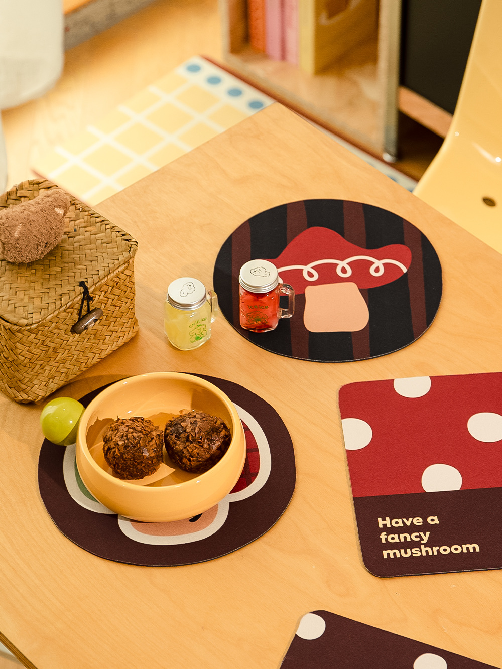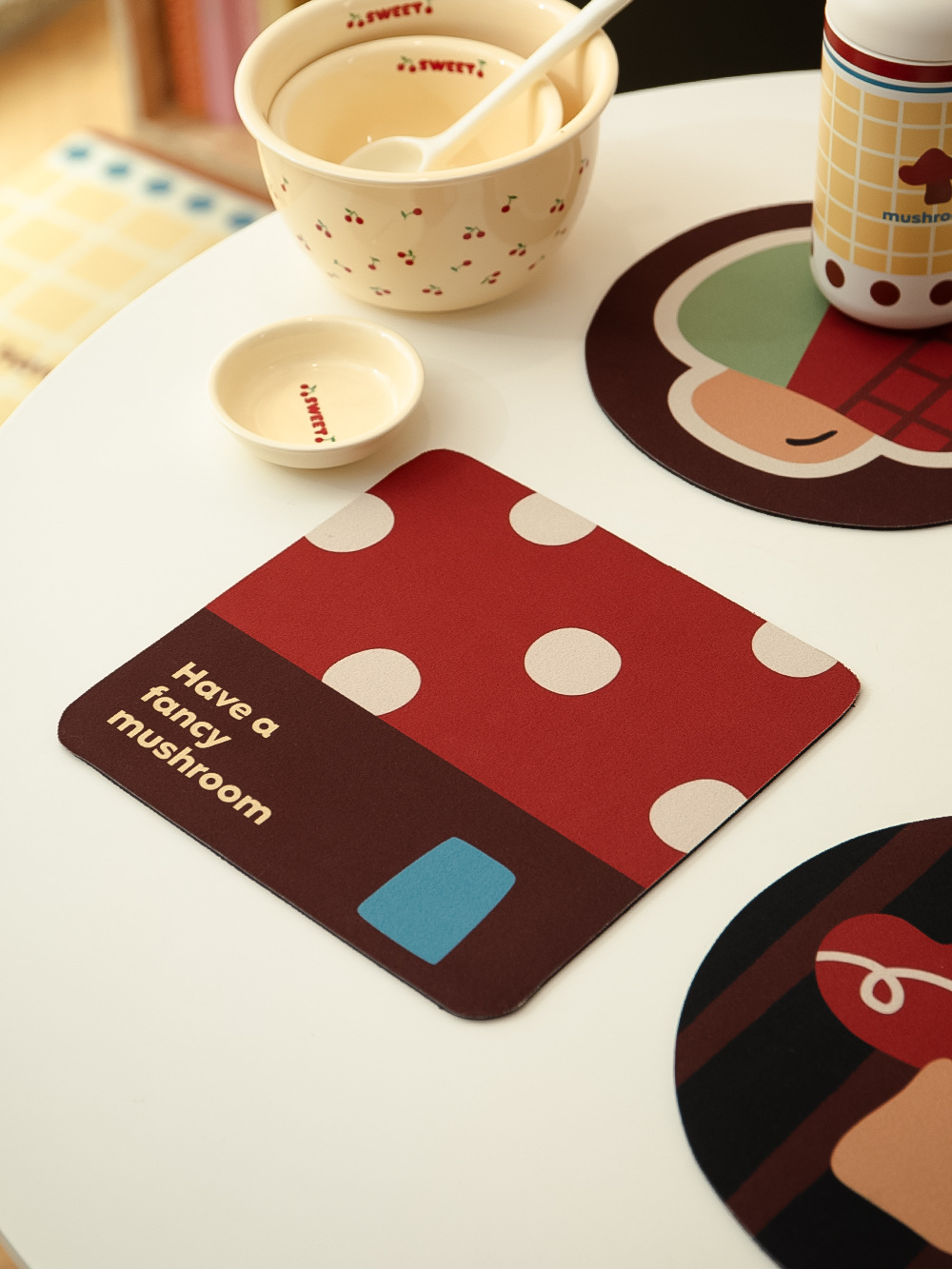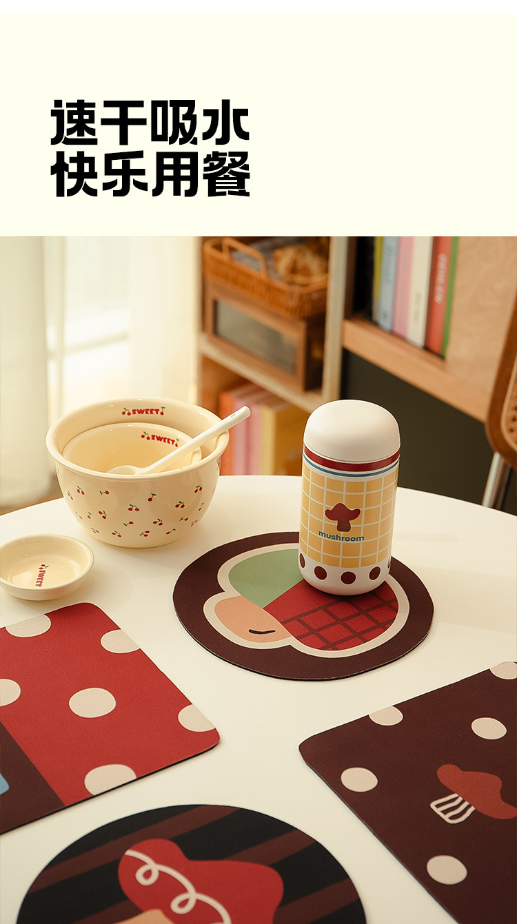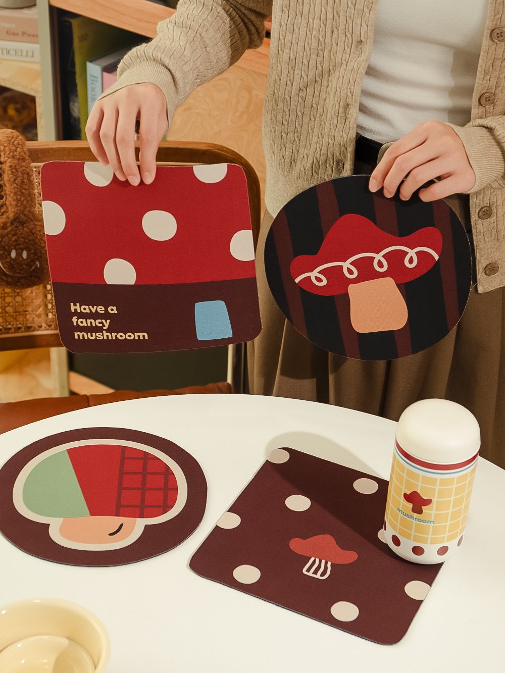 버섯 규조 진흙 단열 매트 코스터 흡수성 안티 스케일 다이닝 테이블 매트 고온 저항성 플레이트 매트 만화 귀여운 매트스토어 가기