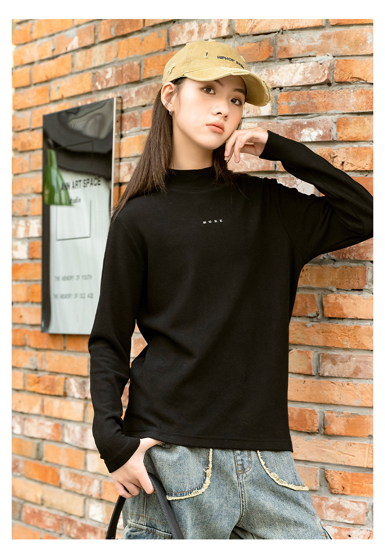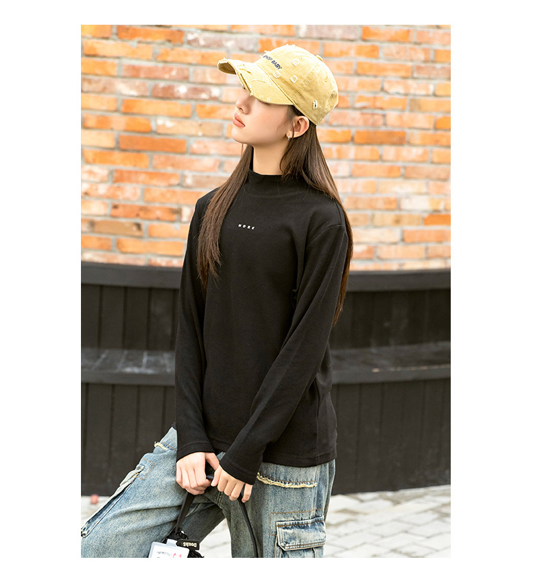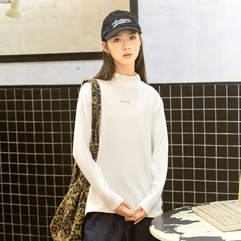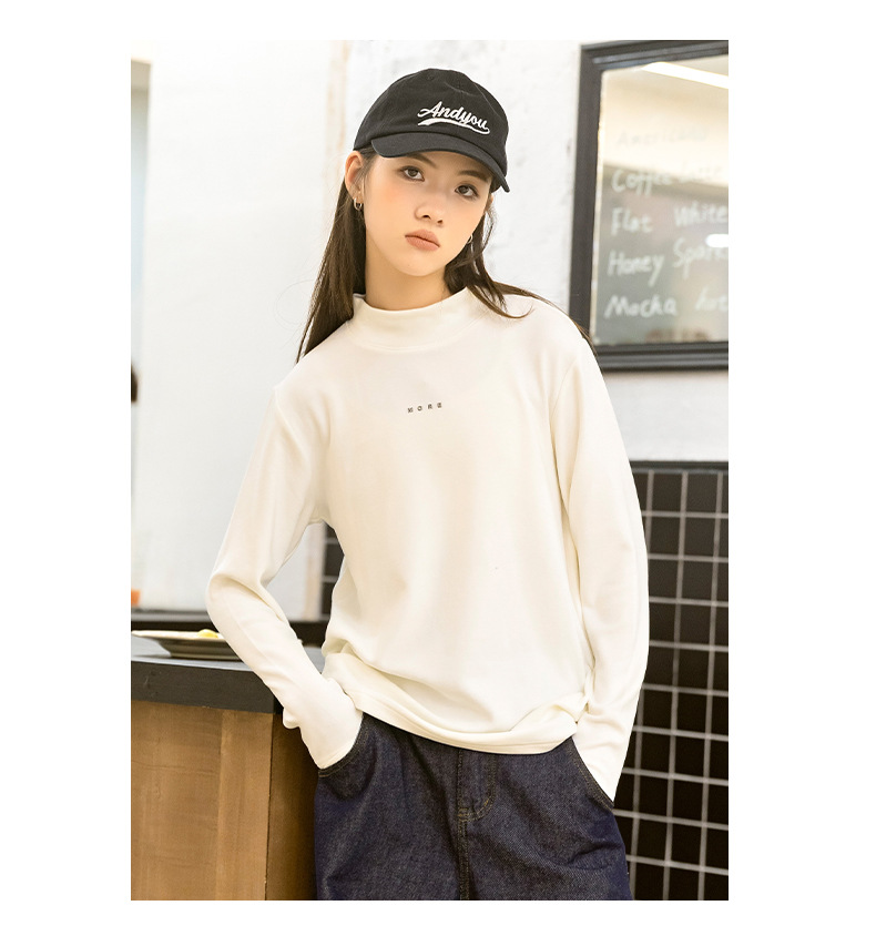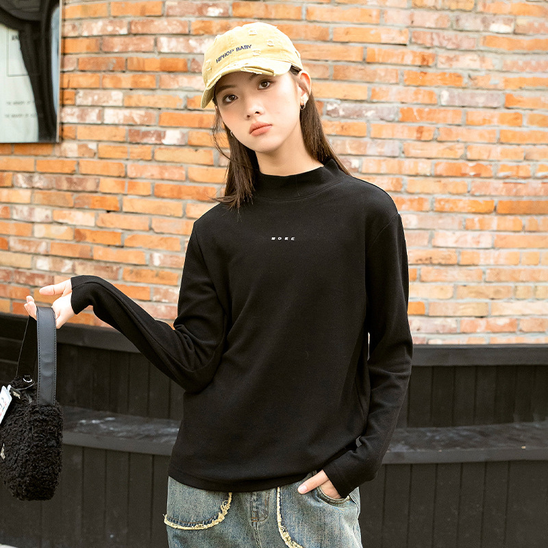 소녀베이스 셔츠 하프 하이 칼라 가을과 겨울 2024 새로운 라운드 넥 긴 소매 티셔츠 큰 어린이 내부 따뜻한 탑스토어 가기