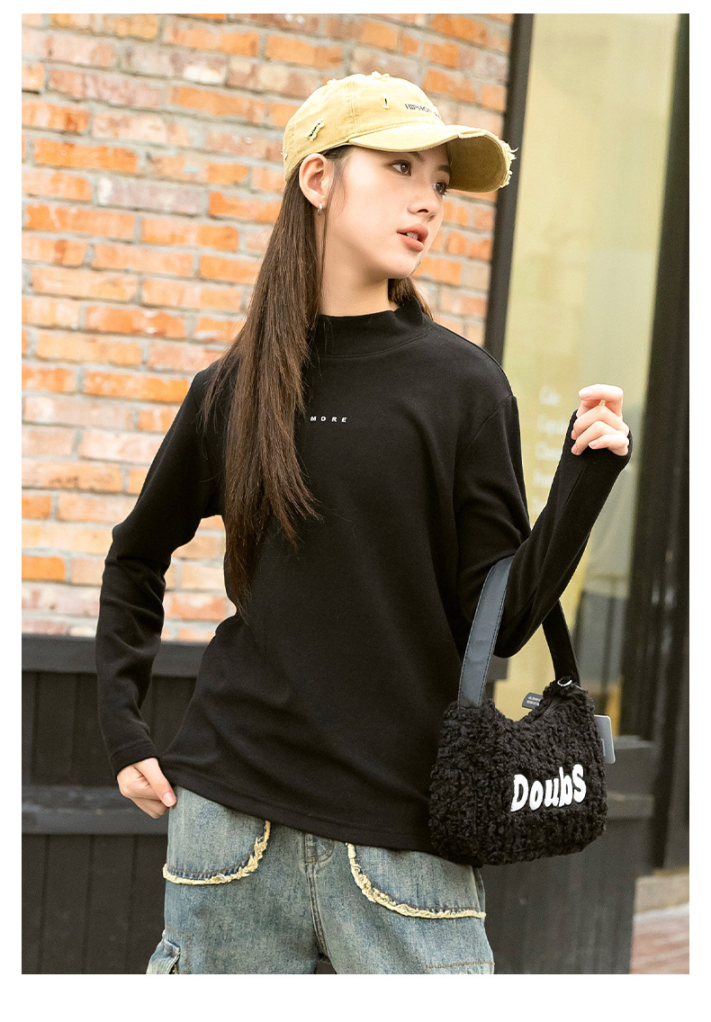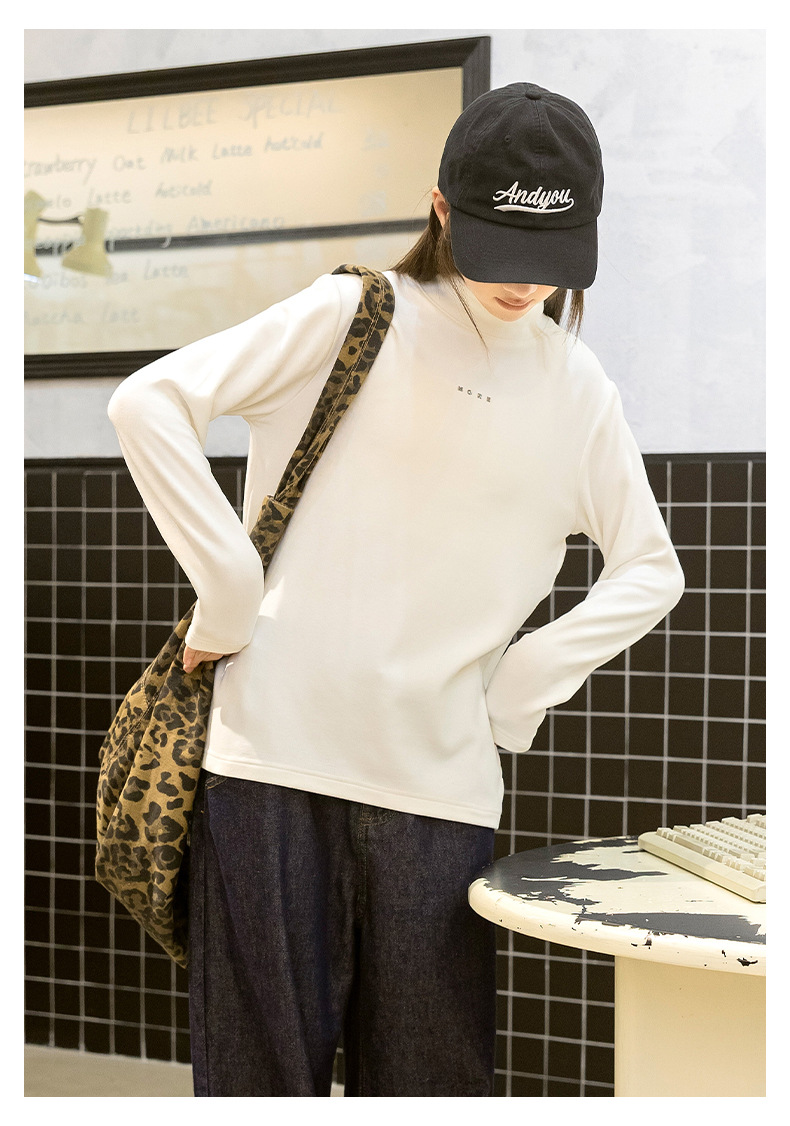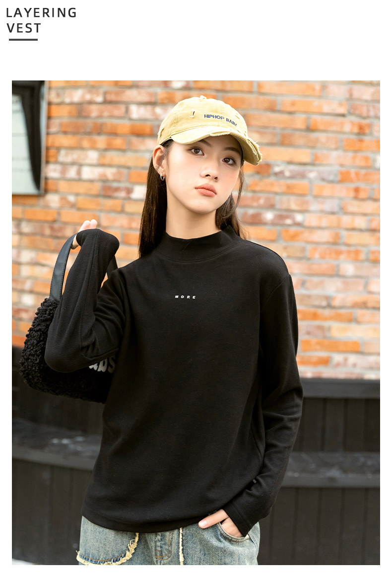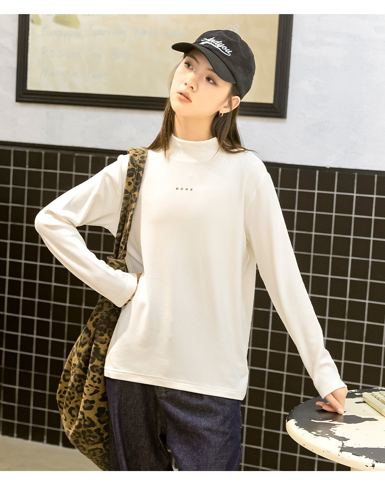 소녀베이스 셔츠 하프 하이 칼라 가을과 겨울 2024 새로운 라운드 넥 긴 소매 티셔츠 큰 어린이 내부 따뜻한 탑스토어 가기