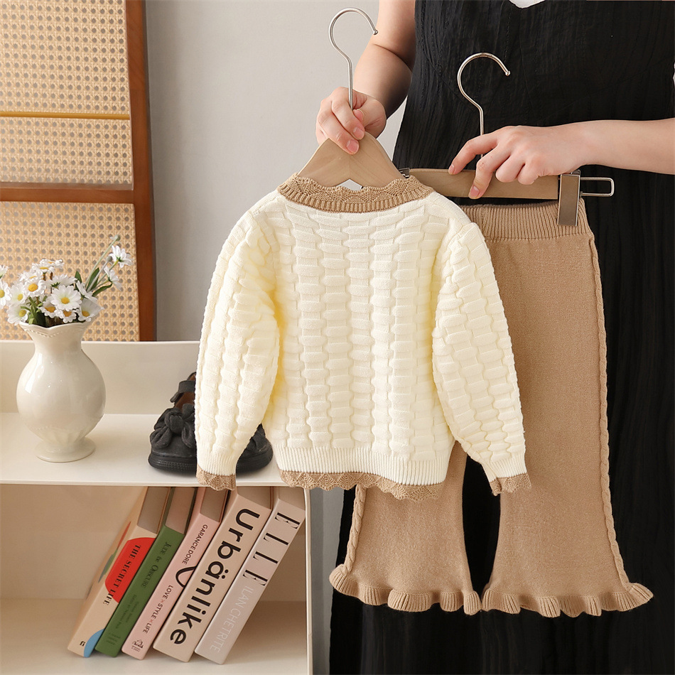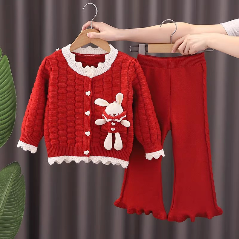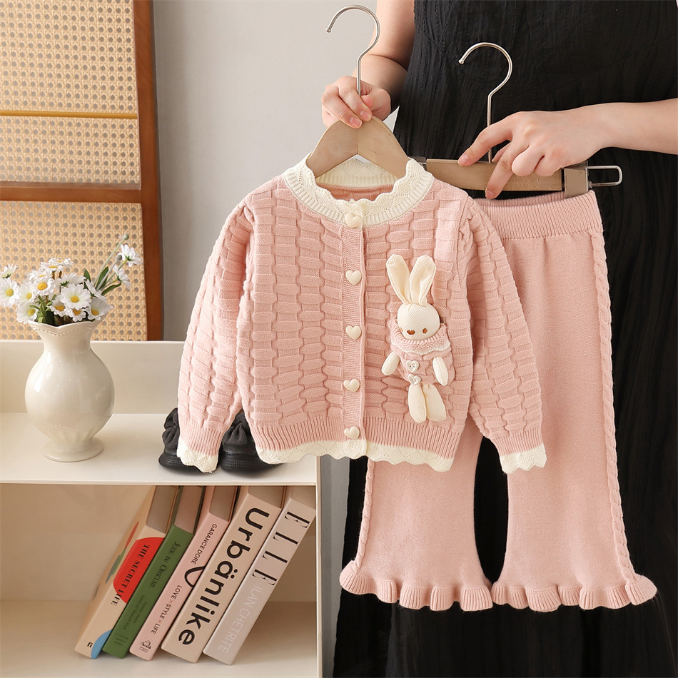 여아 스웨터 재킷 2024 신상 니트 투피스 세트 만화 토끼 소녀 바지 세트