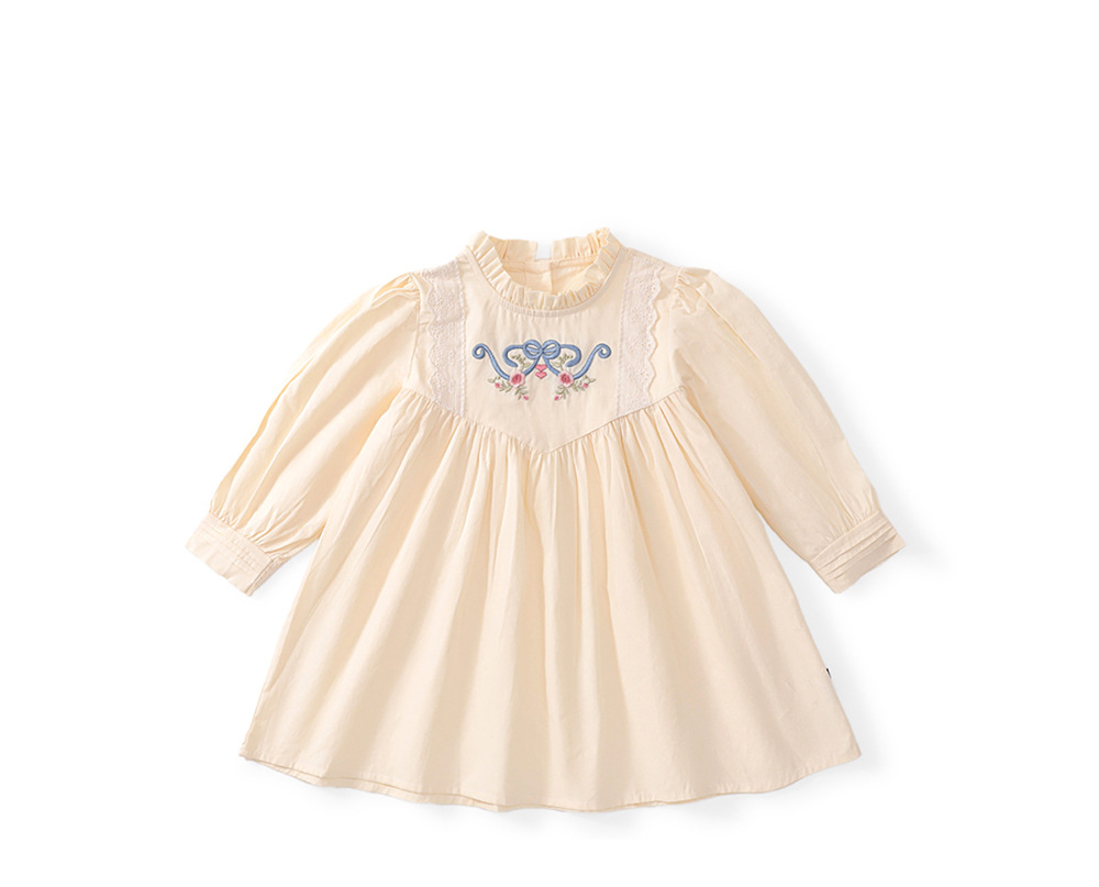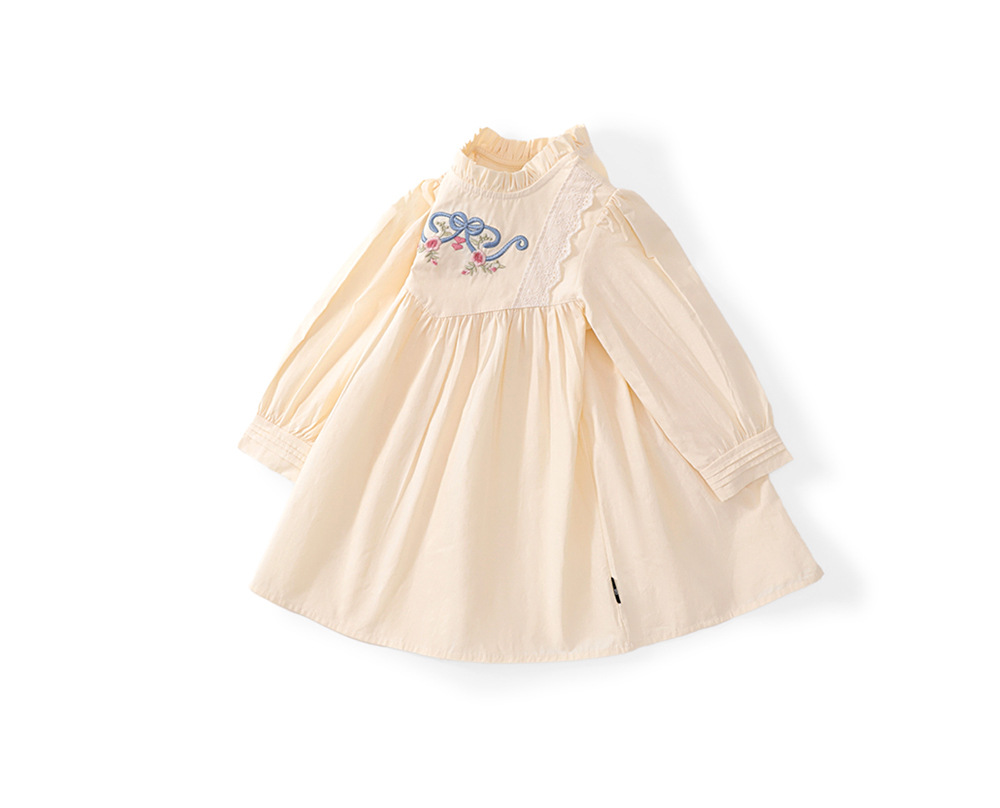 MDD 소녀 원피스 2024 가을 서양식 새로운 소녀 나무 귀 자수 긴 소매 치마 공주 치마스토어 가기