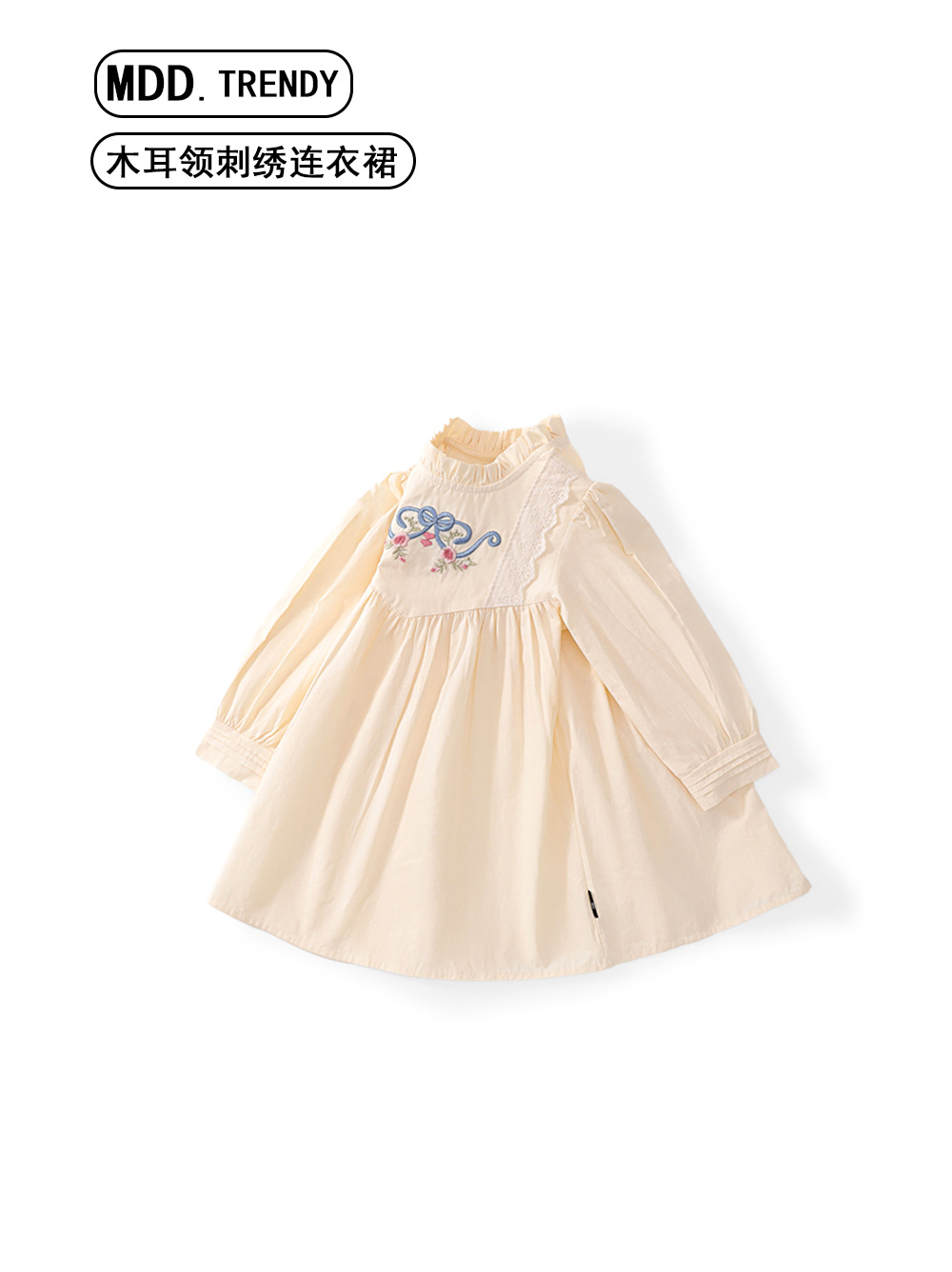MDD 소녀 원피스 2024 가을 서양식 새로운 소녀 나무 귀 자수 긴 소매 치마 공주 치마